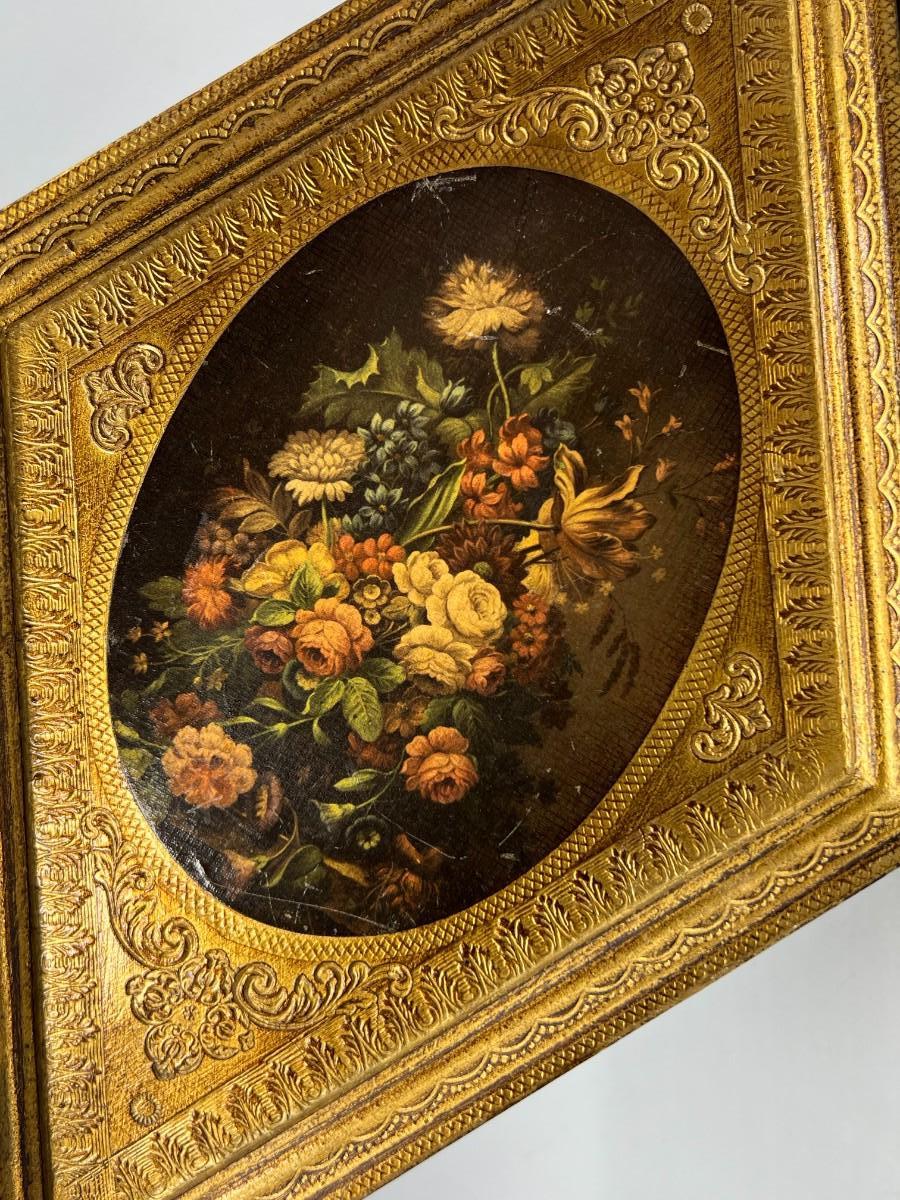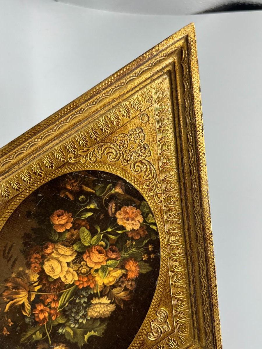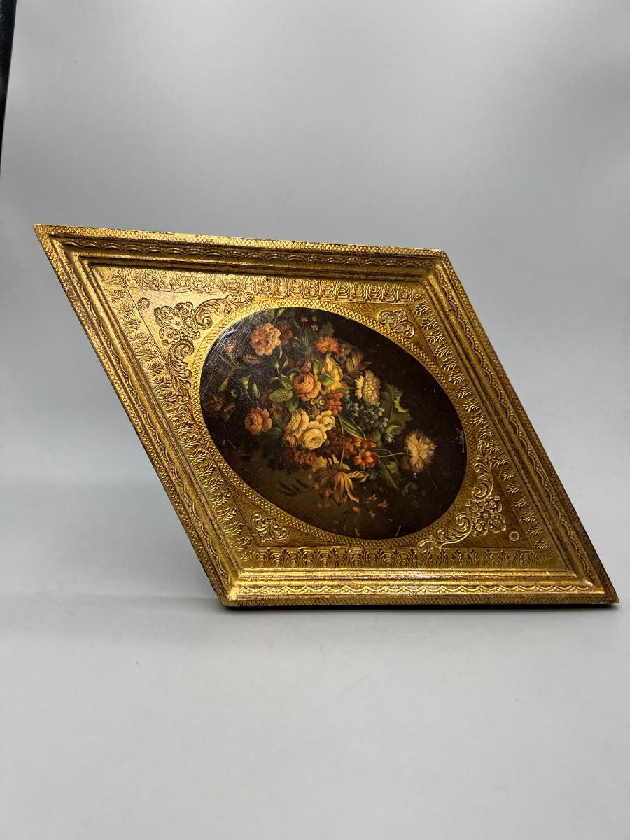 Vintage Gold Gilded Flemish School Flowers G.B. Florence Made in Italy Diamond Framed Artwork
