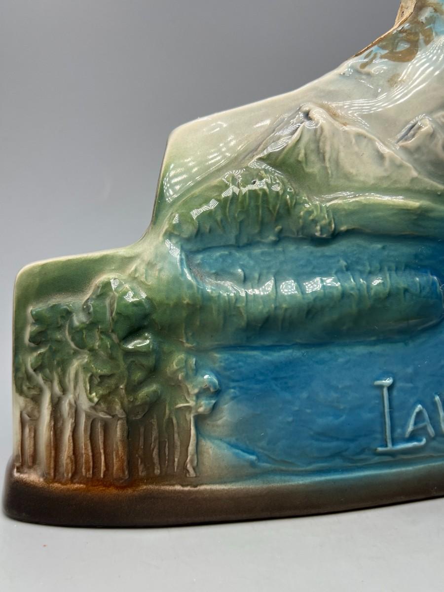 Empty liquor bottle, there is no damage to the glass and is in good collectible condition. Mountain decor style bottle will display nicely.