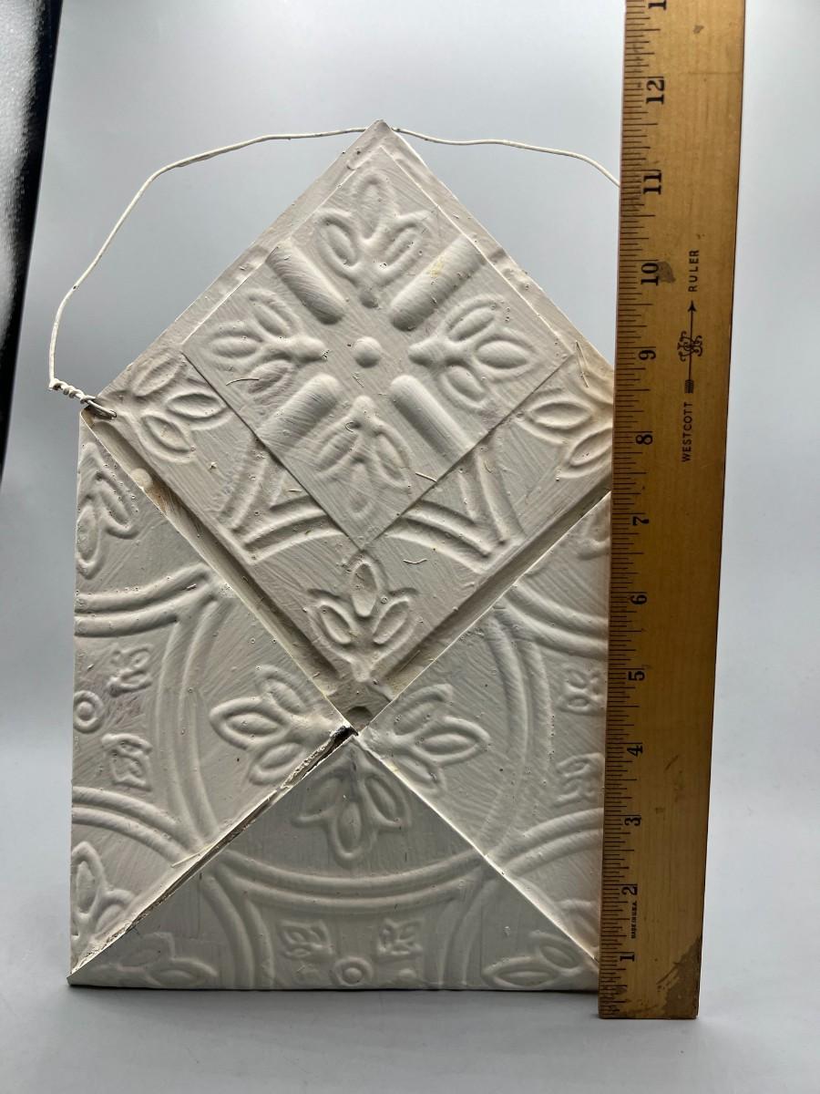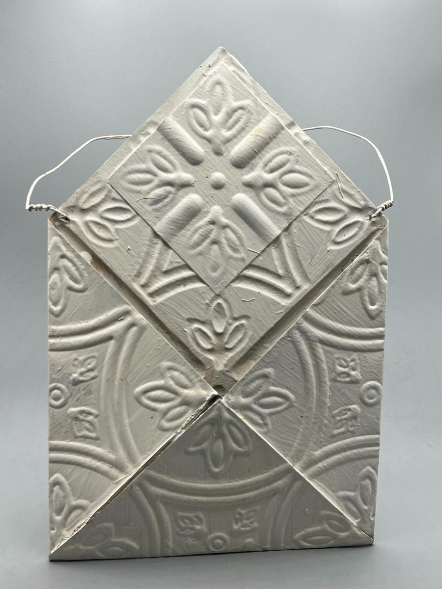 Rustic White Metal Wall Hanging Envelope Shaped Mail Paperwork Holder Organizer