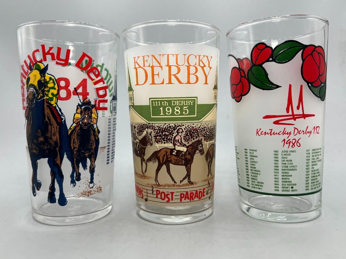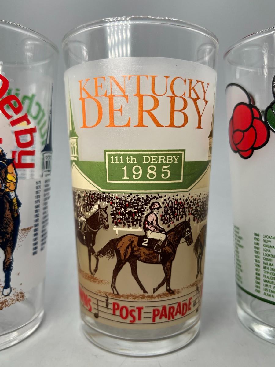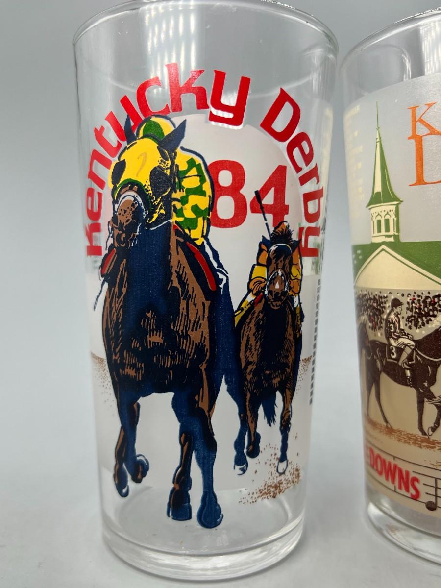 Vintage Lot of 1980's Kentucky Derby Commemorative Graphic Glass Cups
