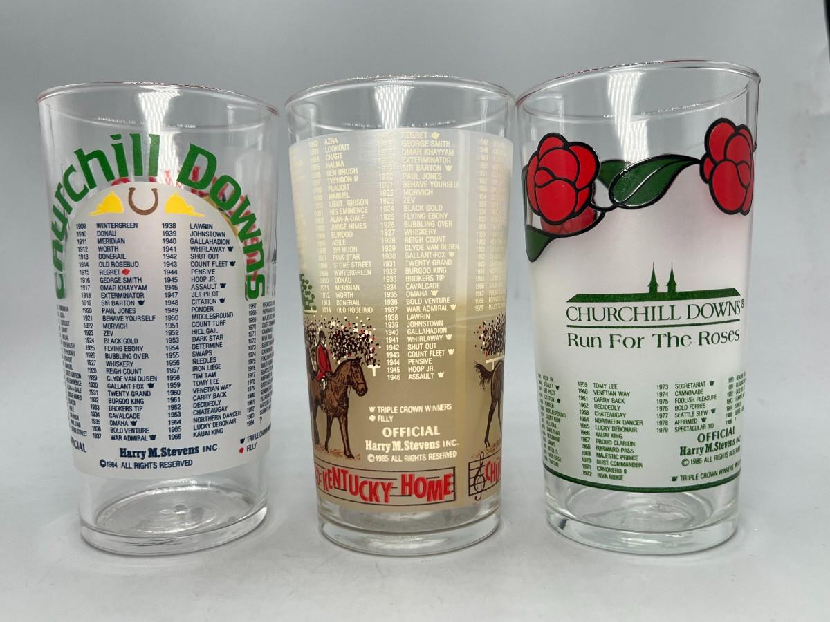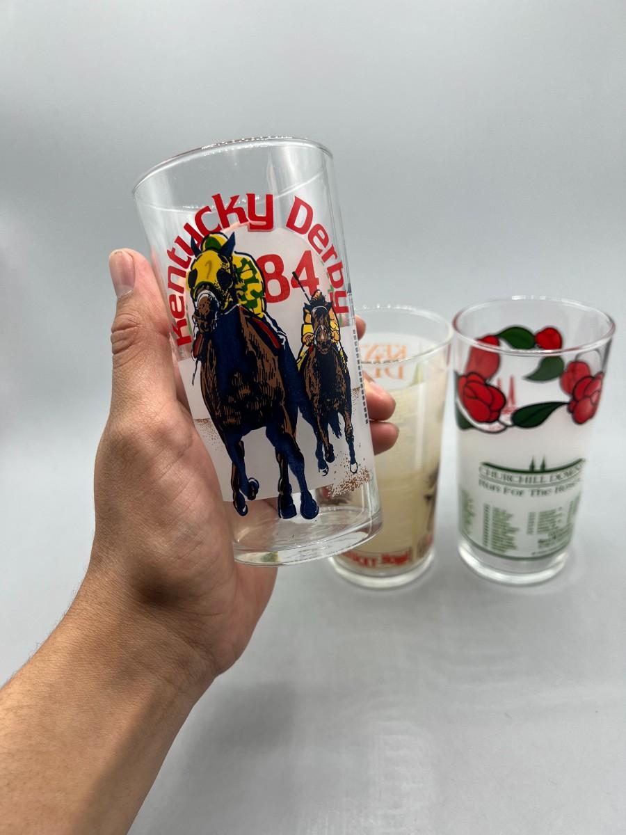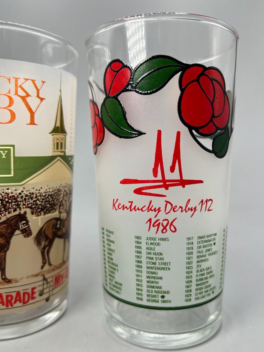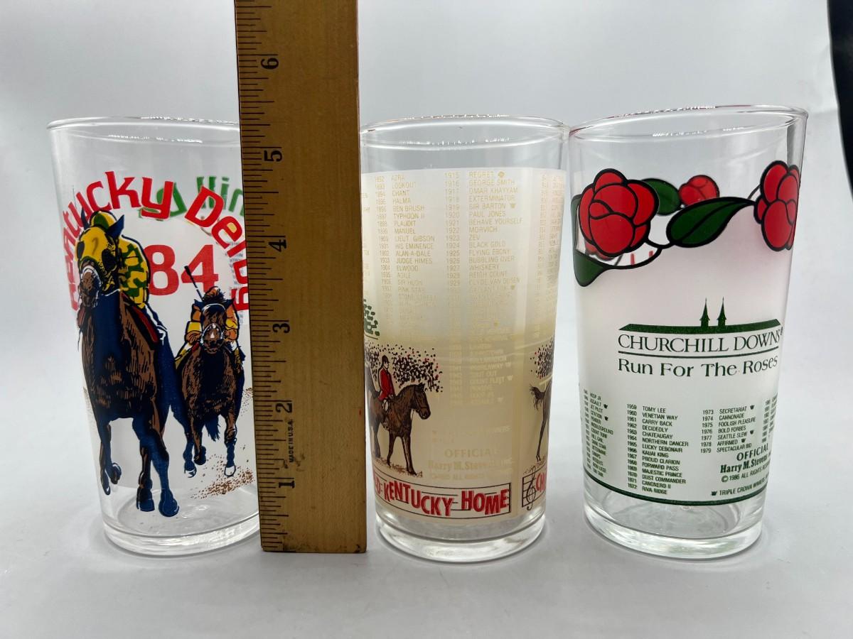 Vintage Lot of 1980's Kentucky Derby Commemorative Graphic Glass Cups