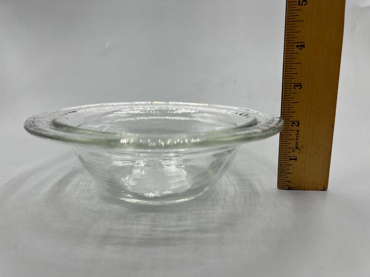 Small Textured Clear Glass Bowl Dish. Good condition. Glass has a rippled like texture to it.