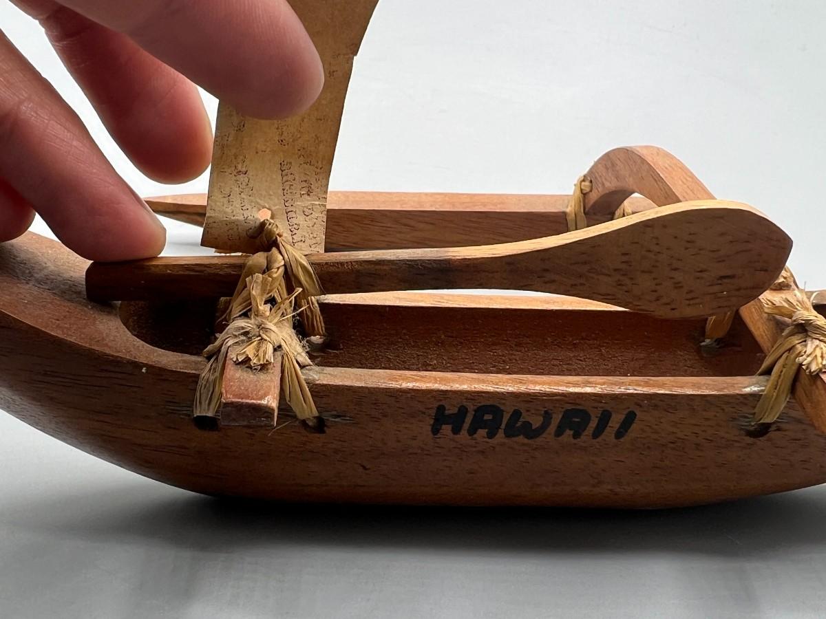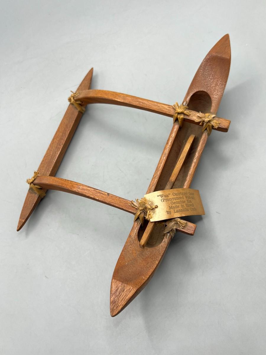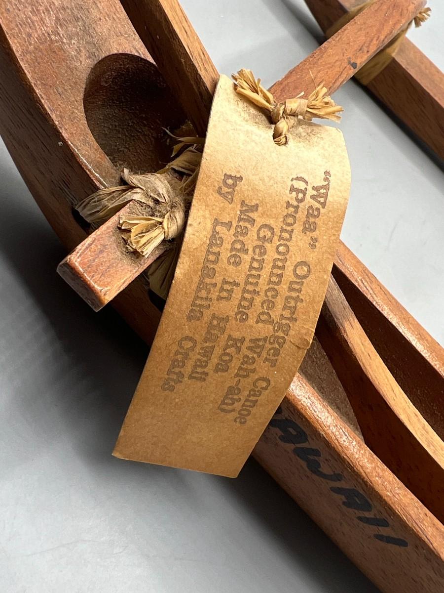 Vintage Waa Outrigger Canoe Hawaii Vacation Travel Souvenir. Has original identification tag attached. In good, displayed condition.