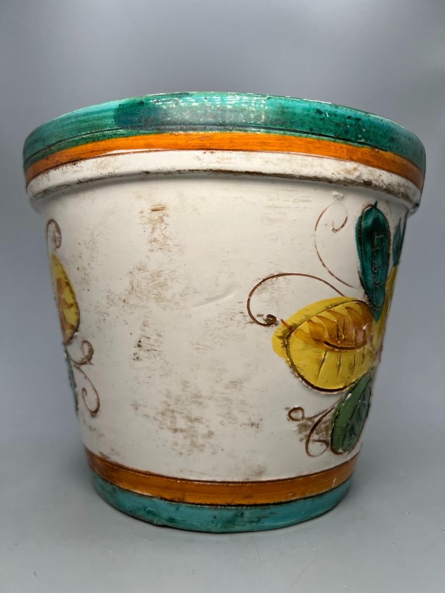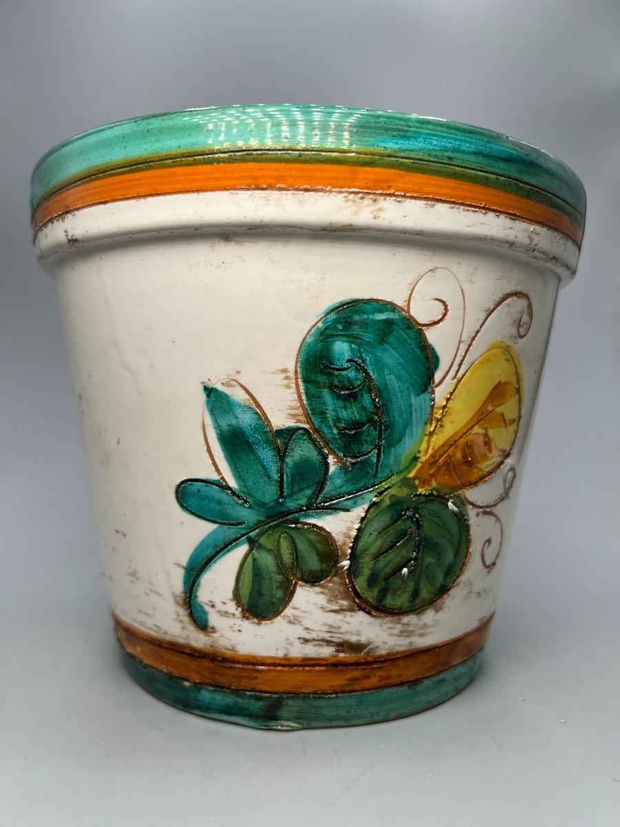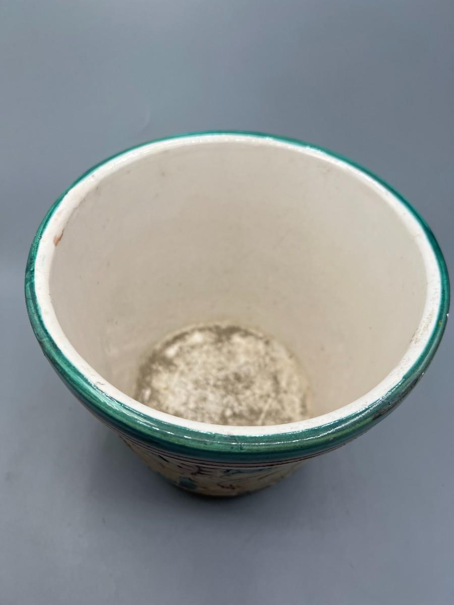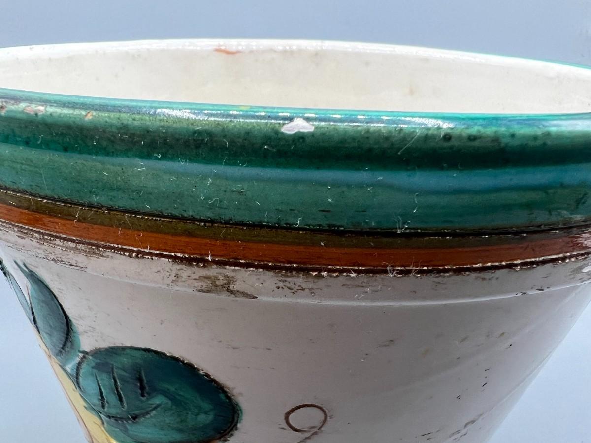 Colorful Yellow Floral Ceramic Planter Pot Italy. In used condition. About 6" size. Marked Italy on the bottom.
