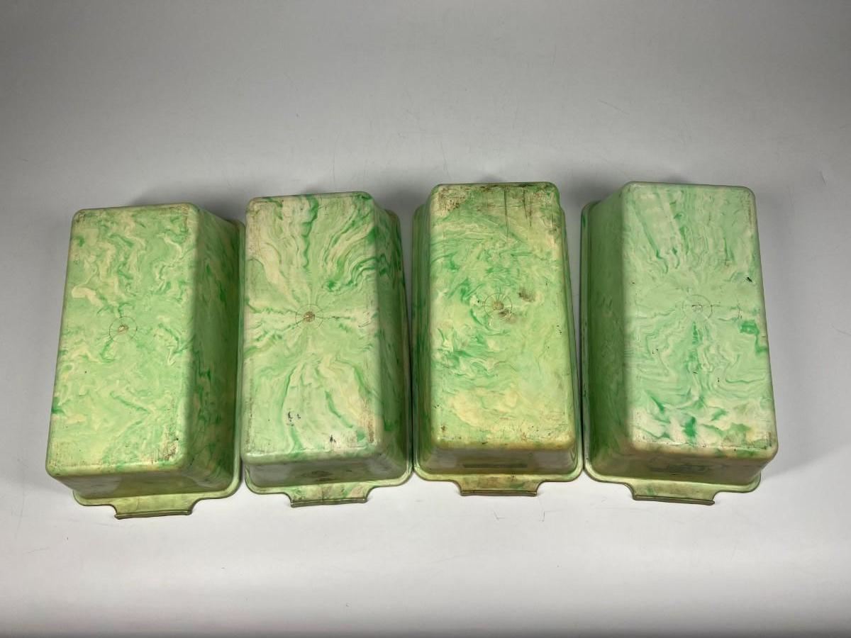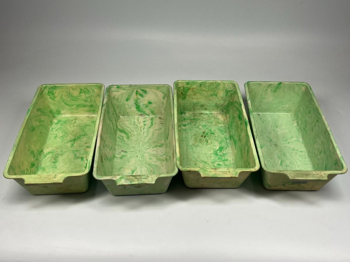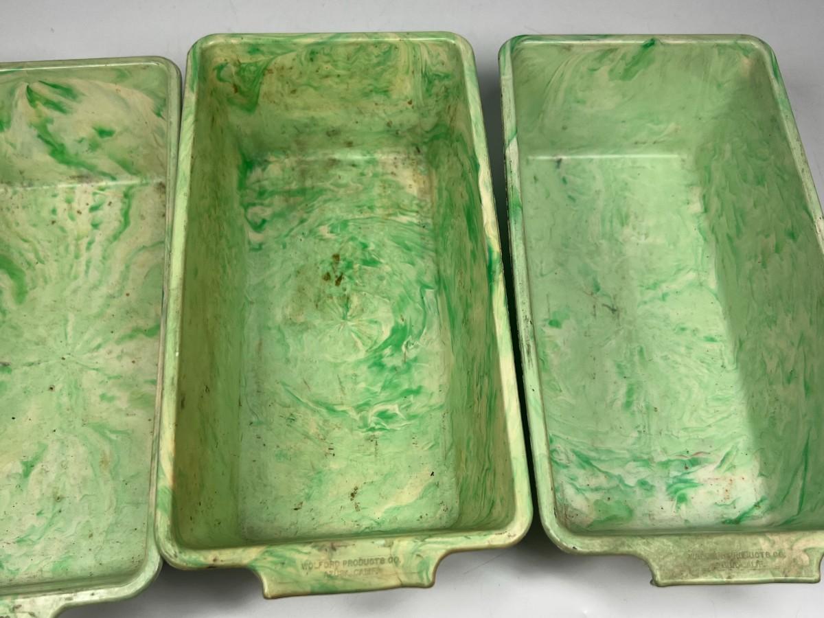 Vintage Green Swirl Wolford Product Co. Small Plastic Bins. Look like bread pans but I wouldn't use with heat. Great for organizing drawers and things.