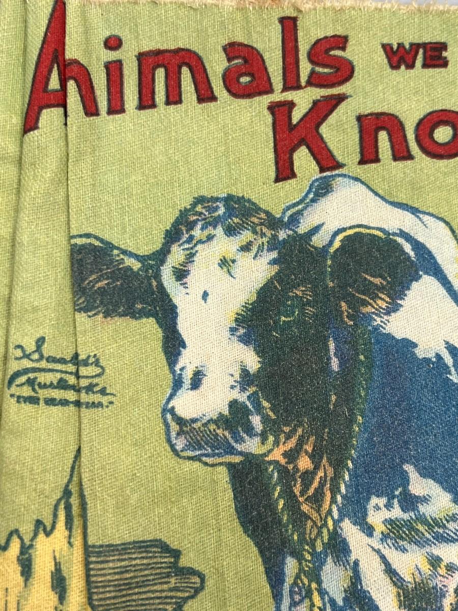 Pair of Vintage Children's Toddler Preschooler Animal Picture Books Linen Cloth Pages