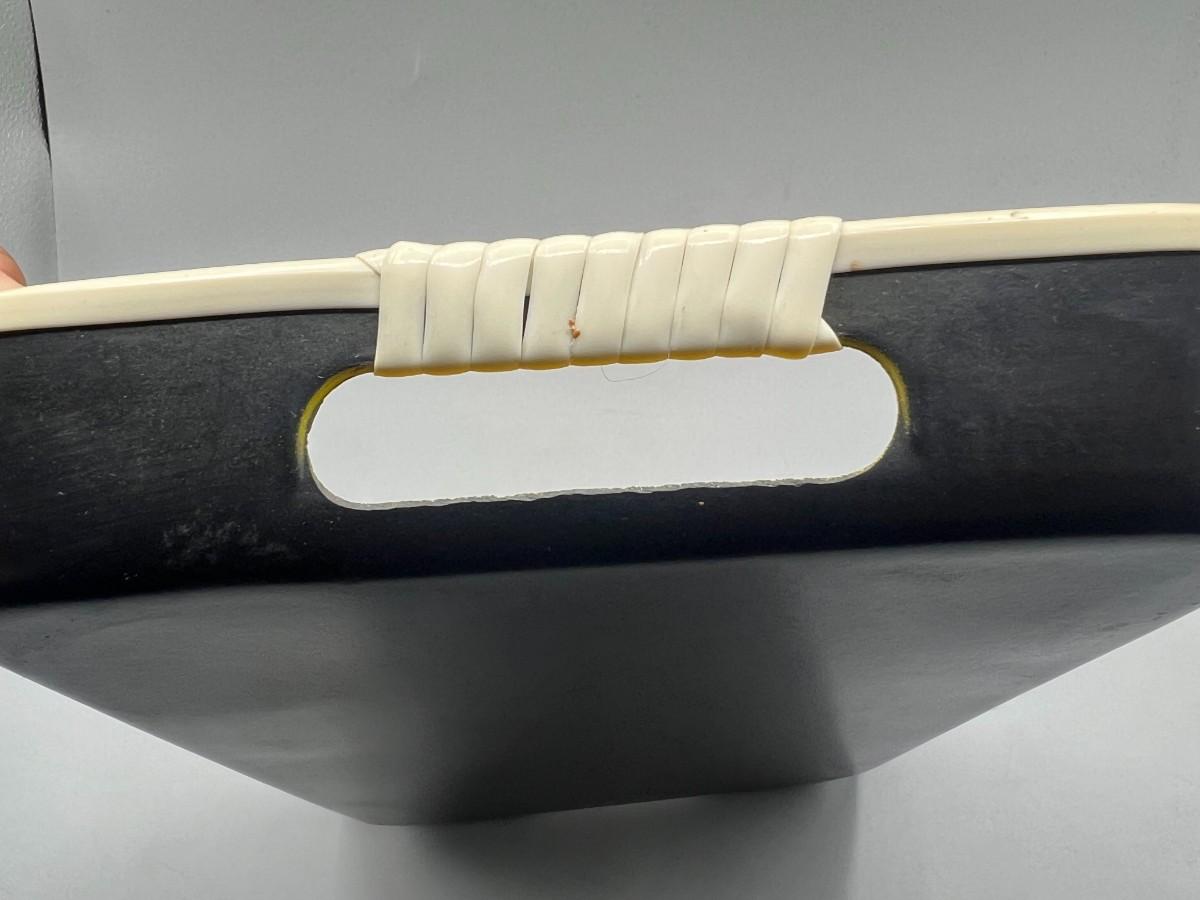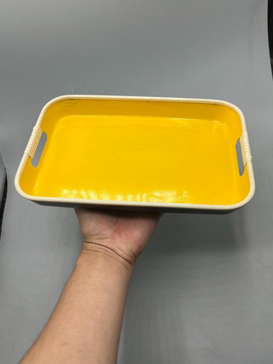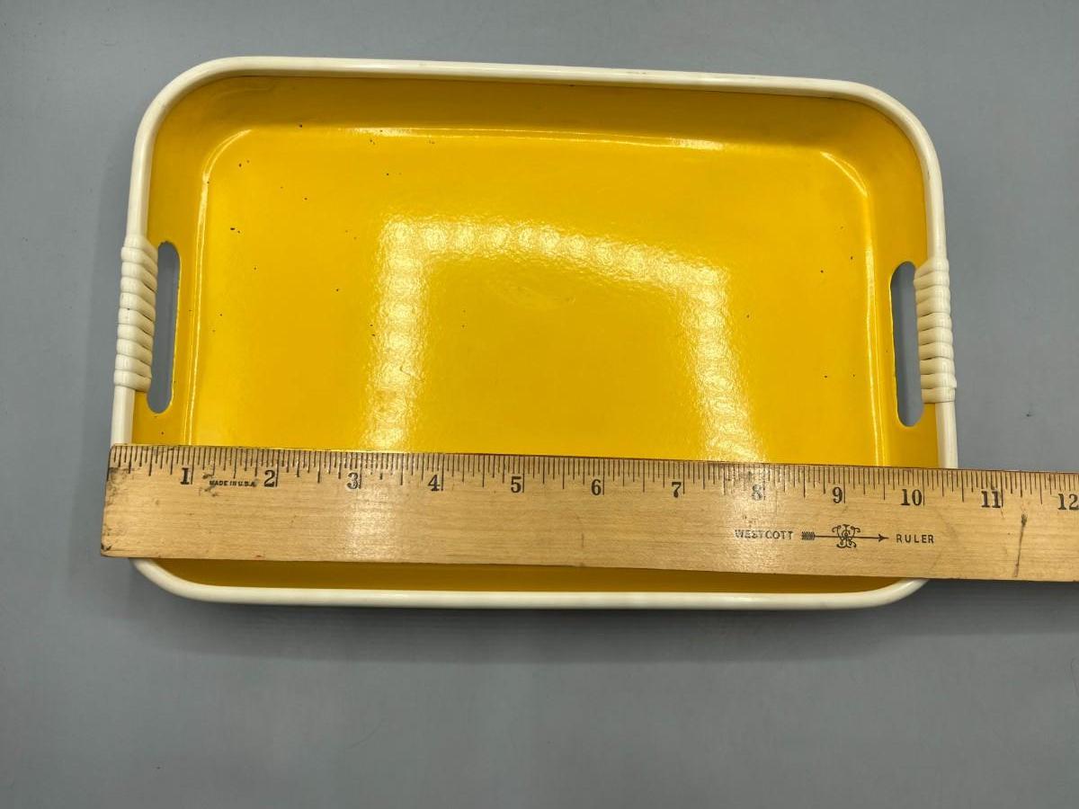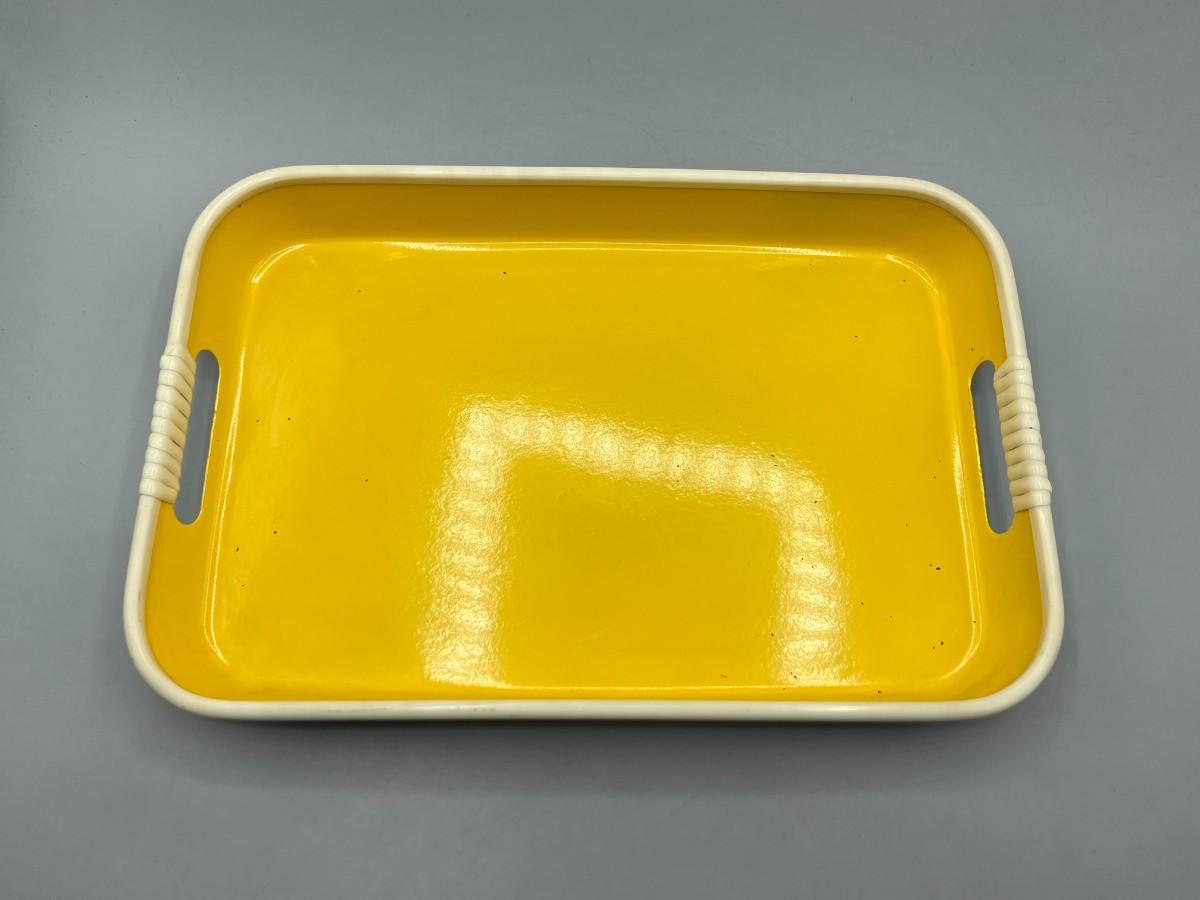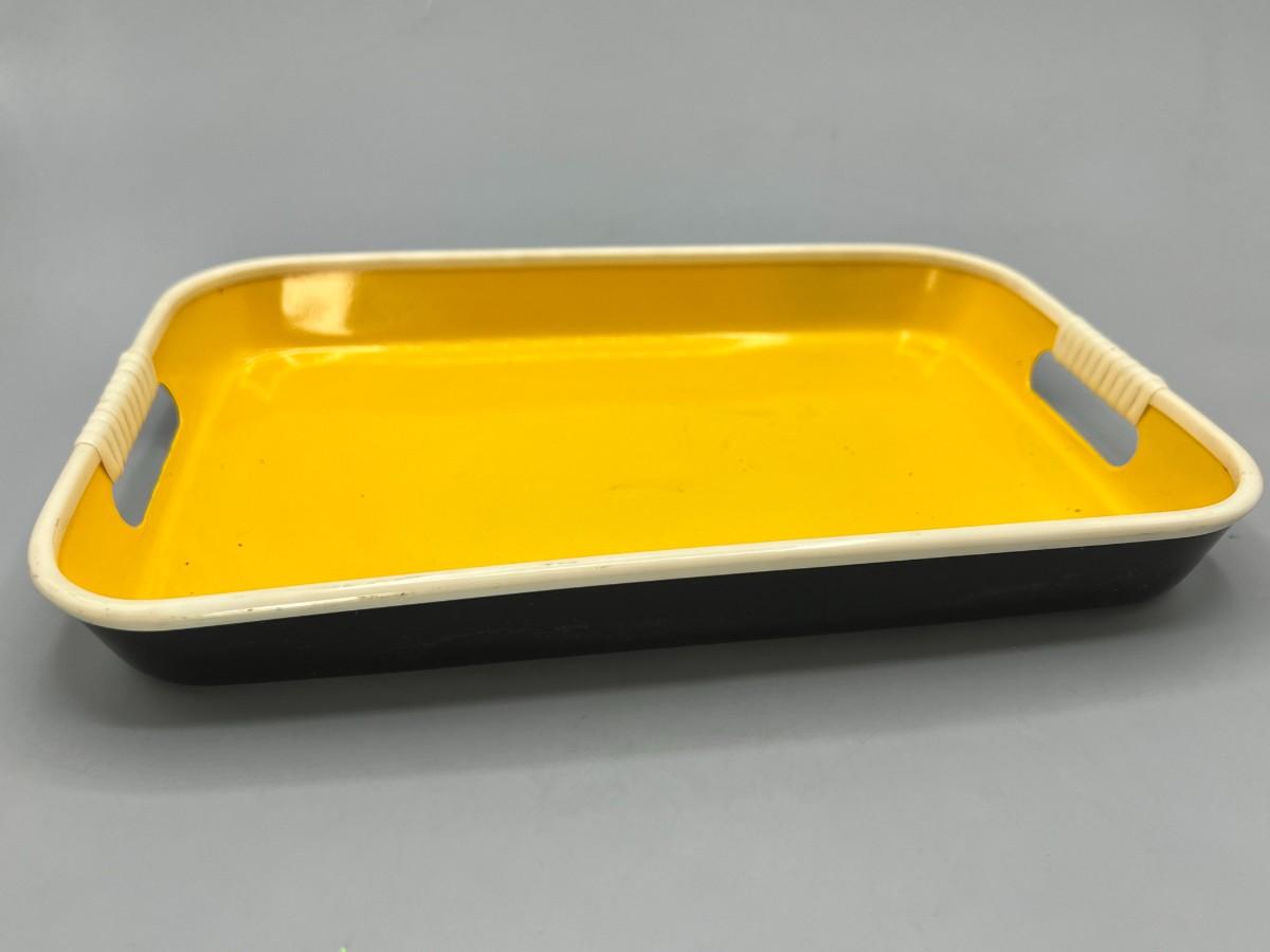 Retro Yellow and Black Small Serving Tray Console Trinket Dish. Bright yellow inside with black bottom. Under 11" size. Plastic/melamine like material.