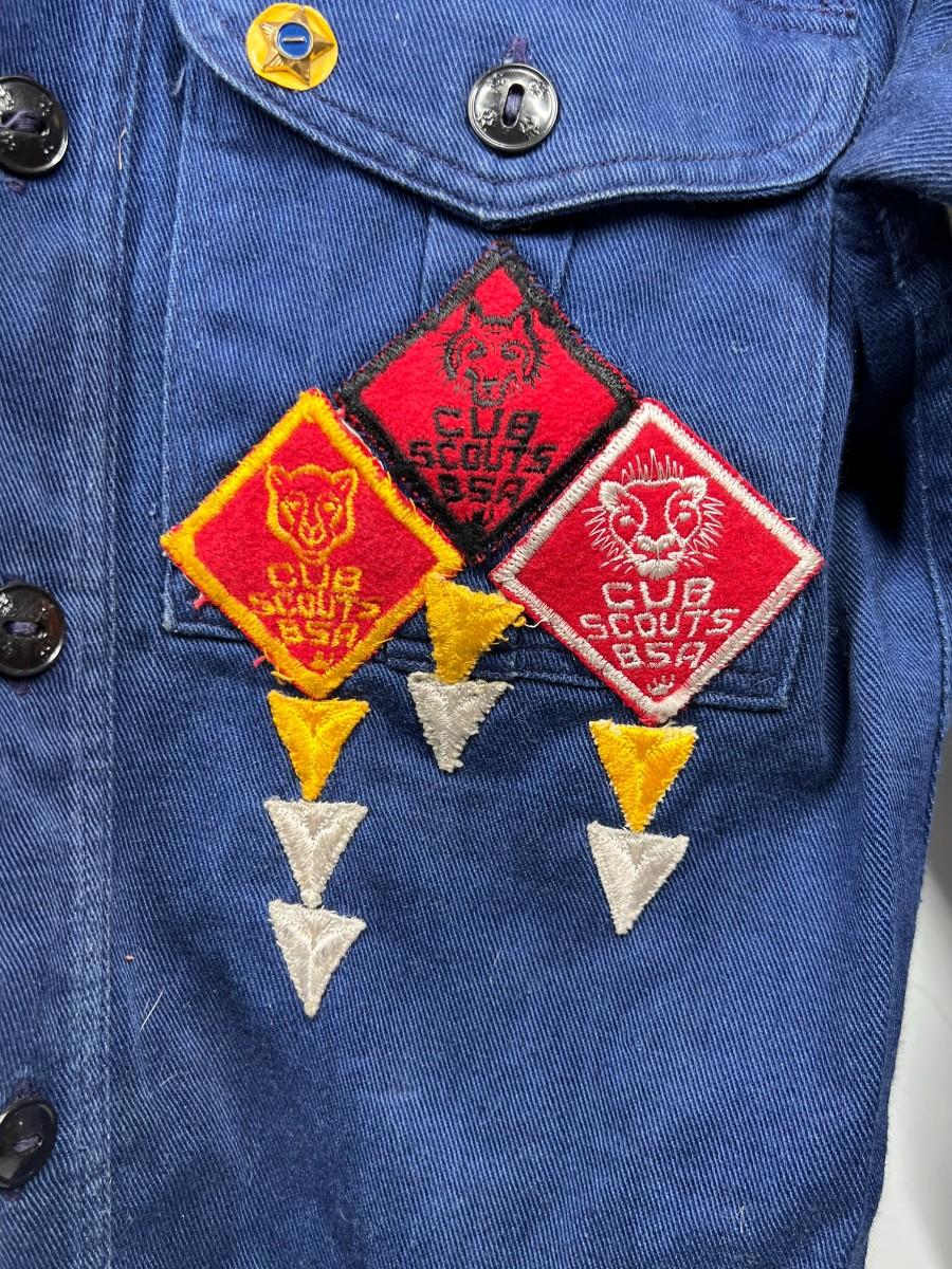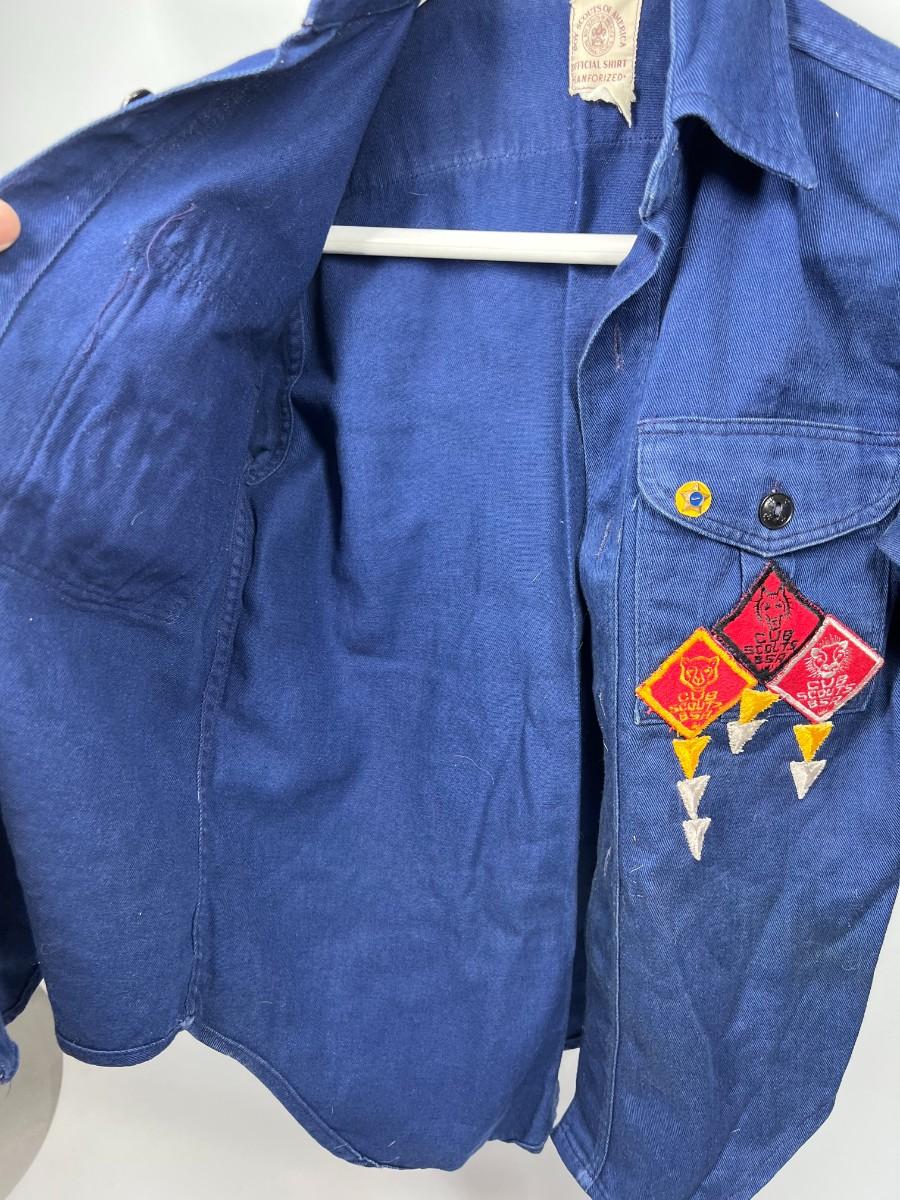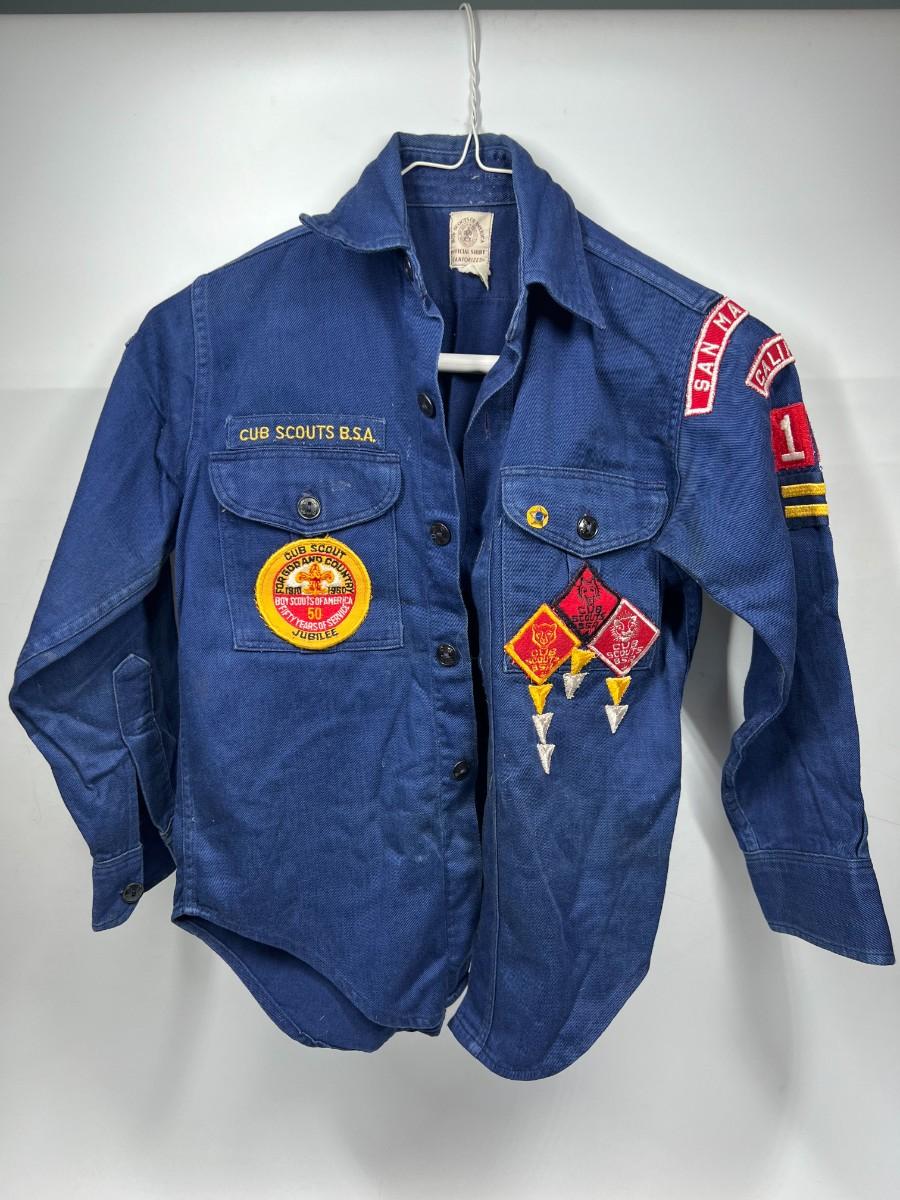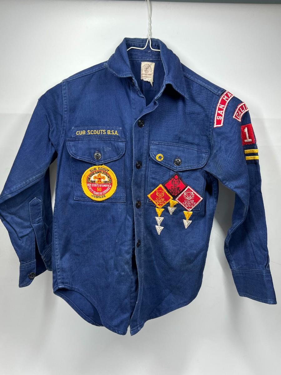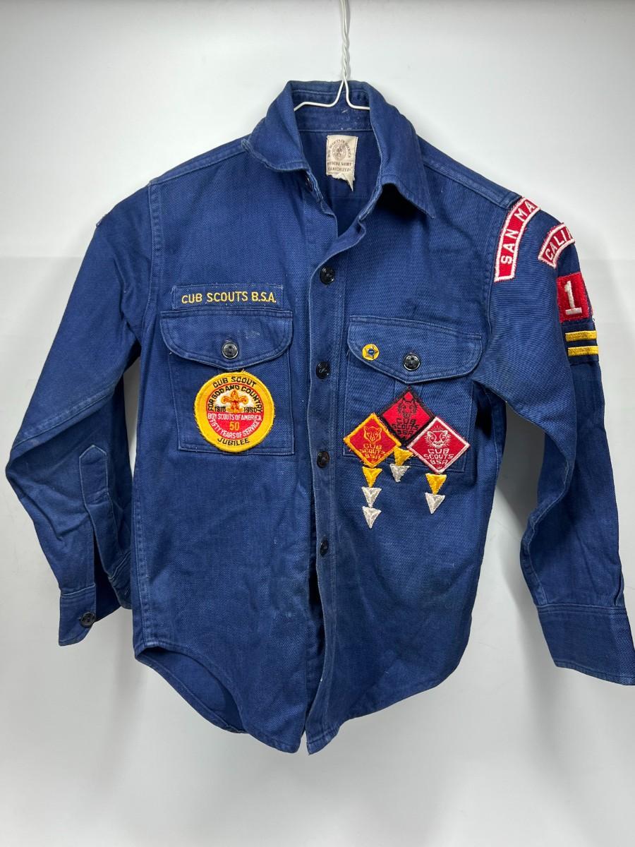 Vintage Long Sleeve Cub Scout Shirt with Patches Boy Scouts of America BSA Pack 112 San Mateo