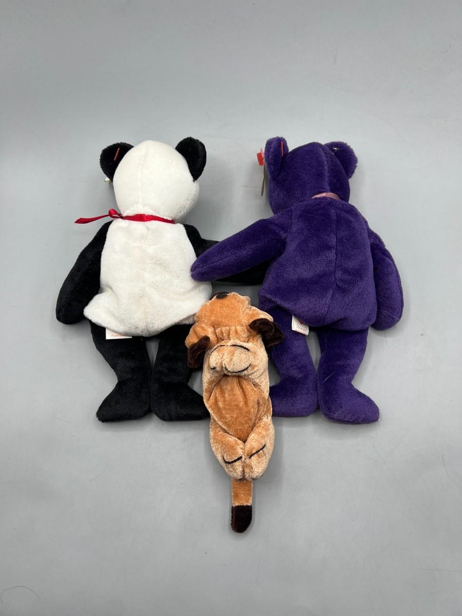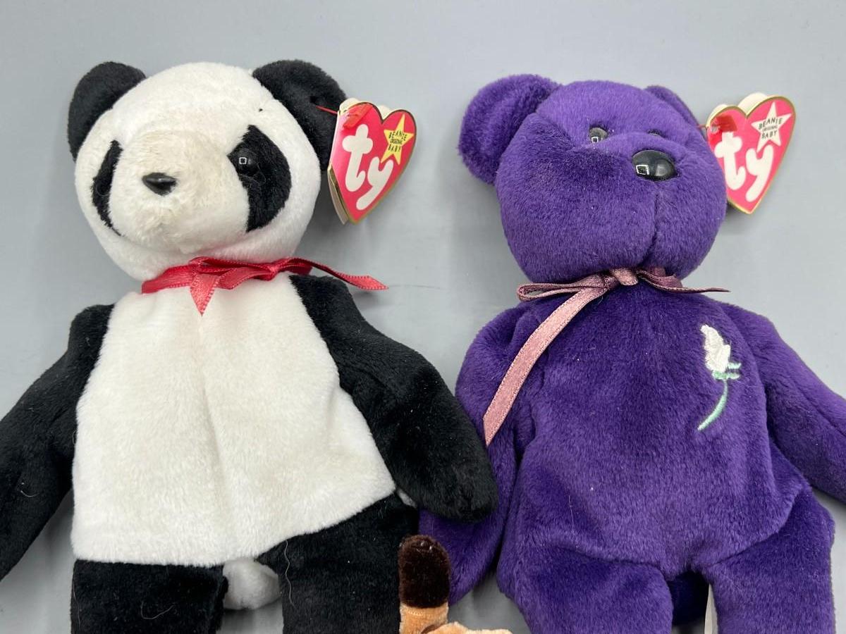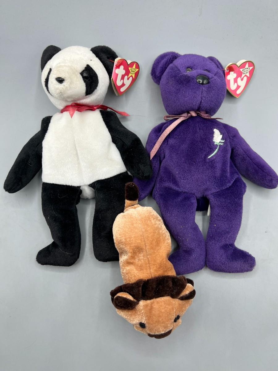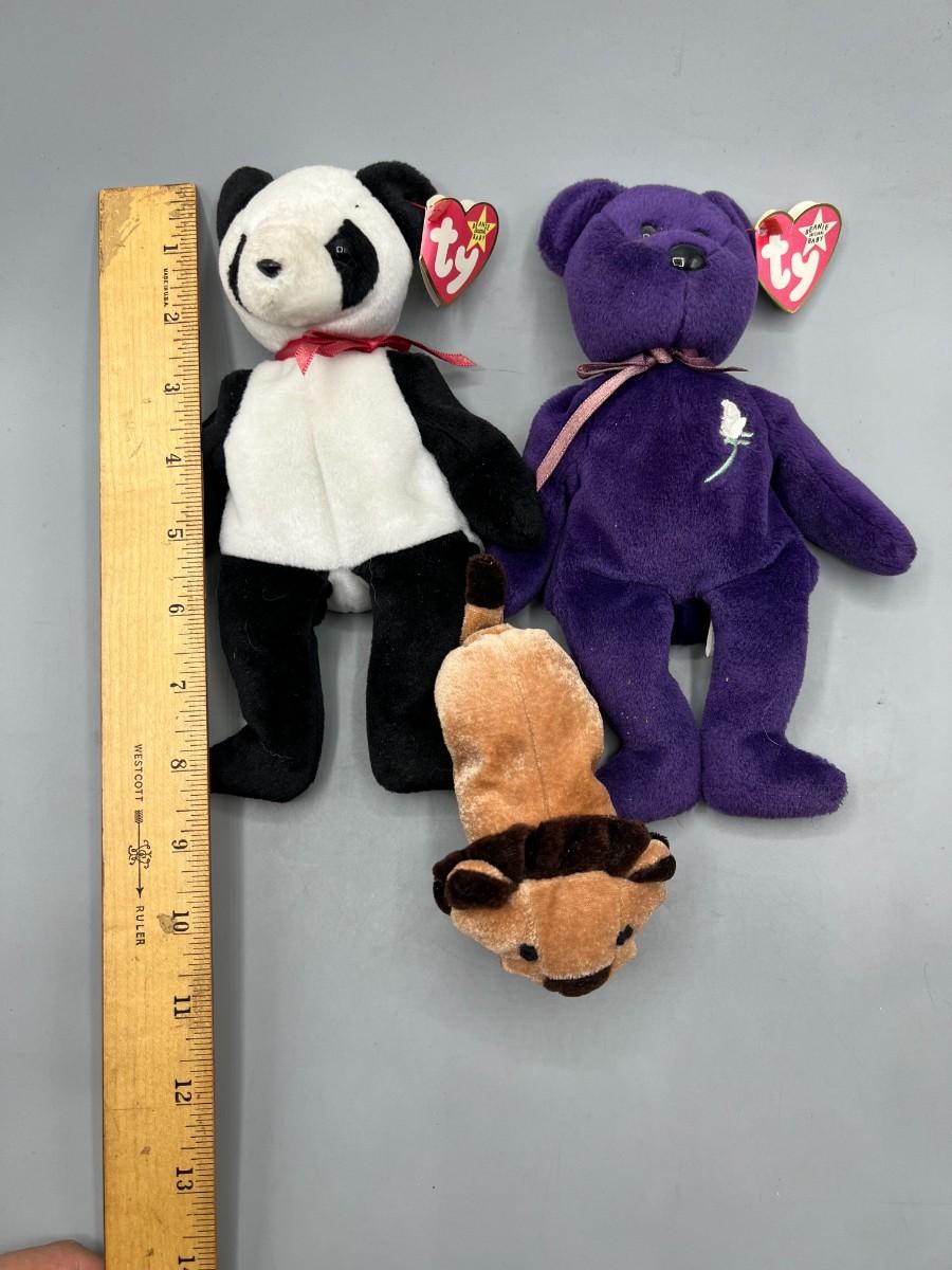 Vintage TY Beanie Baby Teddy Bear Fortune & Princess Plush and Small Lion Stuffed Animal