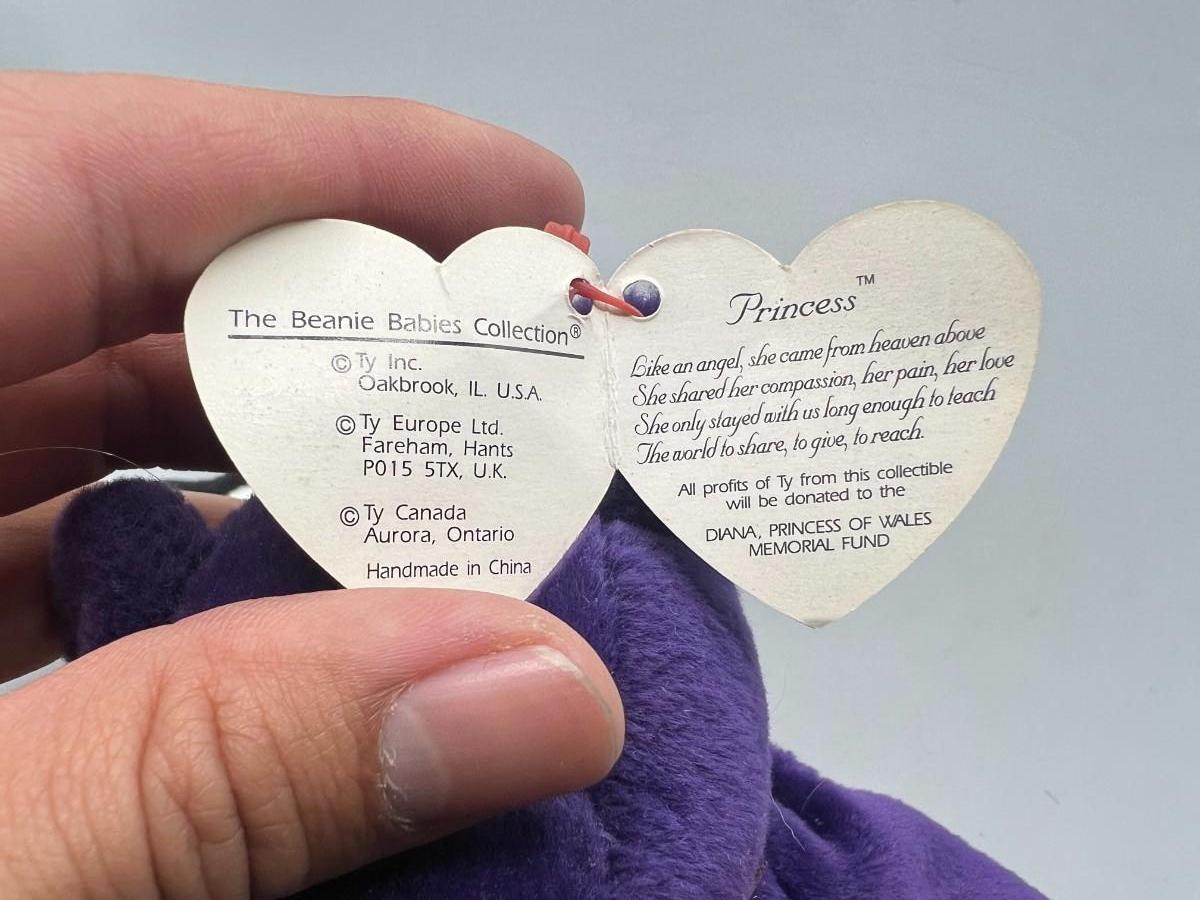 Vintage TY Beanie Baby Teddy Bear Fortune & Princess Plush and Small Lion Stuffed Animal. In gently loved condition. Beanie Babies have hang tags still attached.