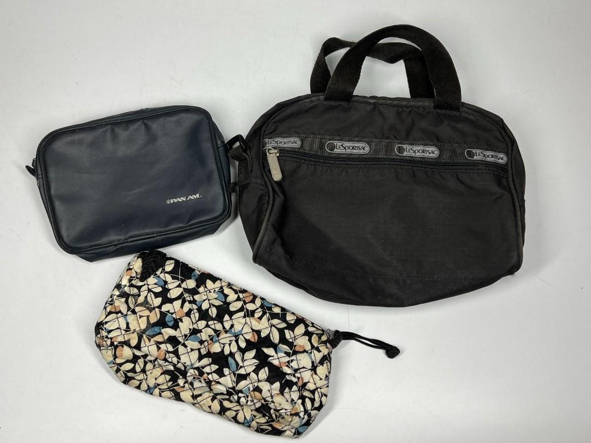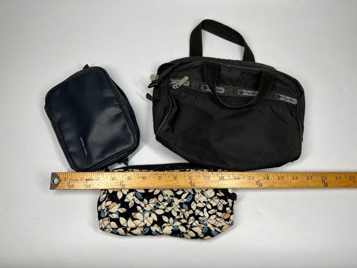 Three Cosmetic Toiletry Zipper Travel Organizer Bags. In previously used condition.