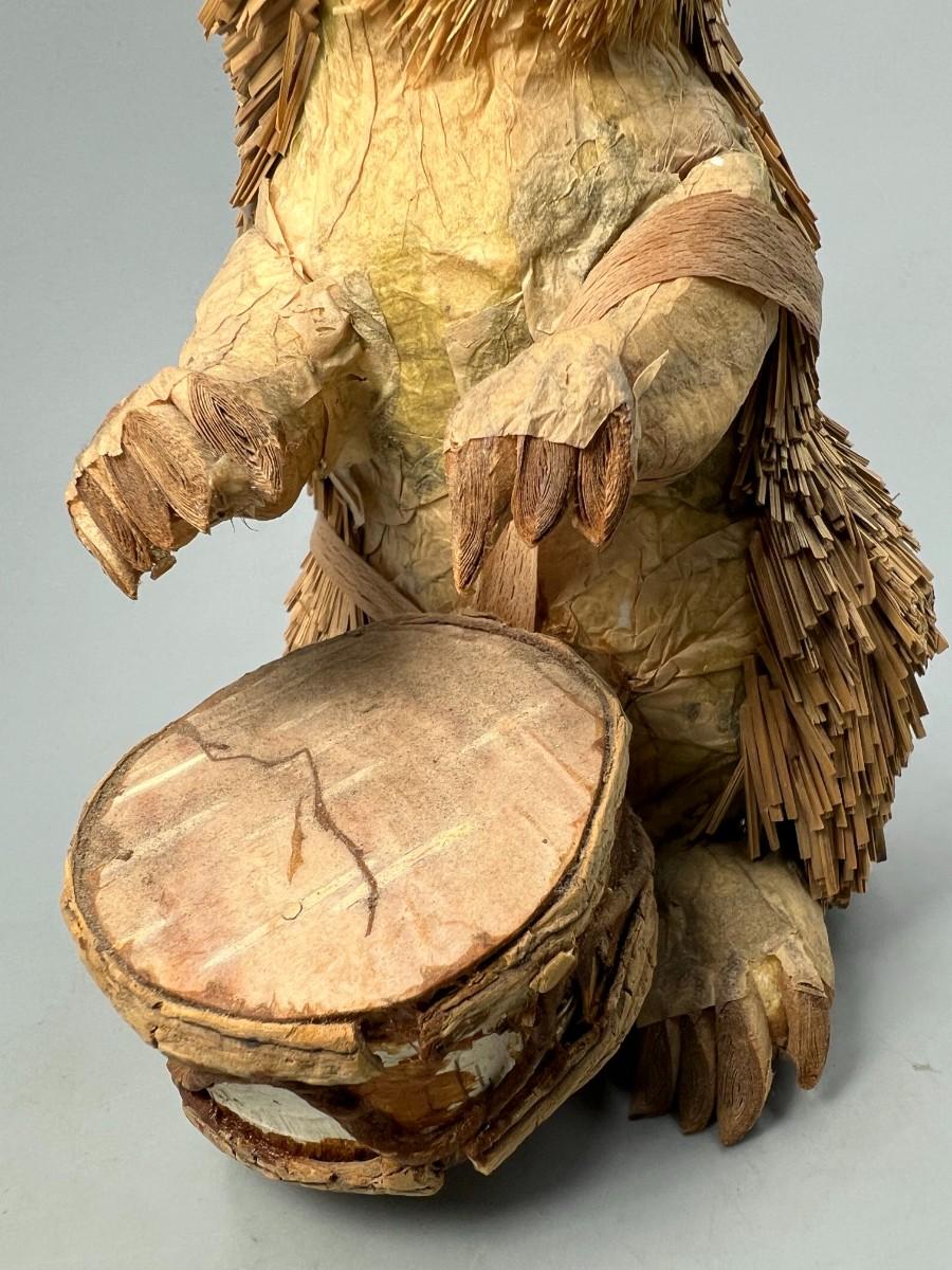 Cute Natural Fiber Hedgehog Playing Drum Figurine. In good condition. Small under 6" size.