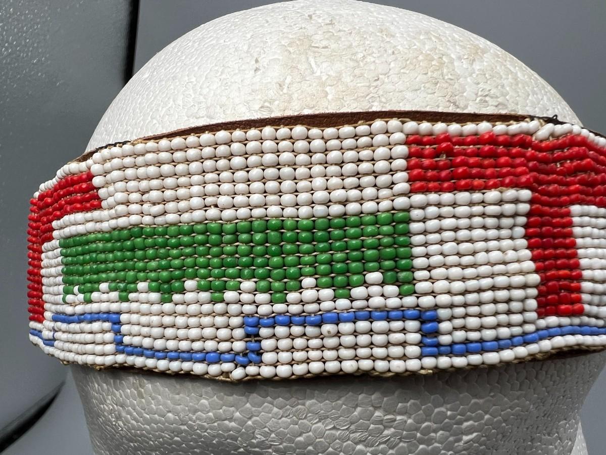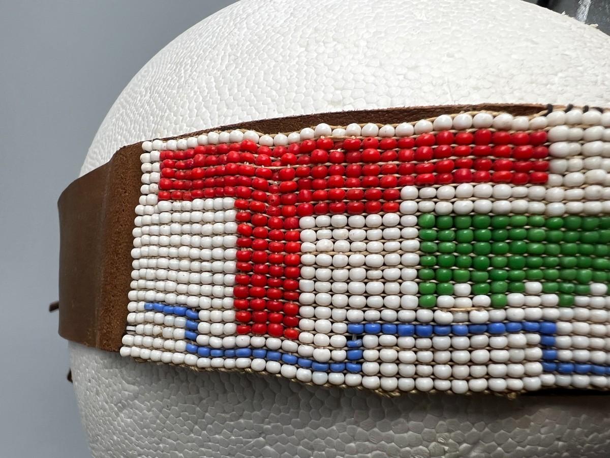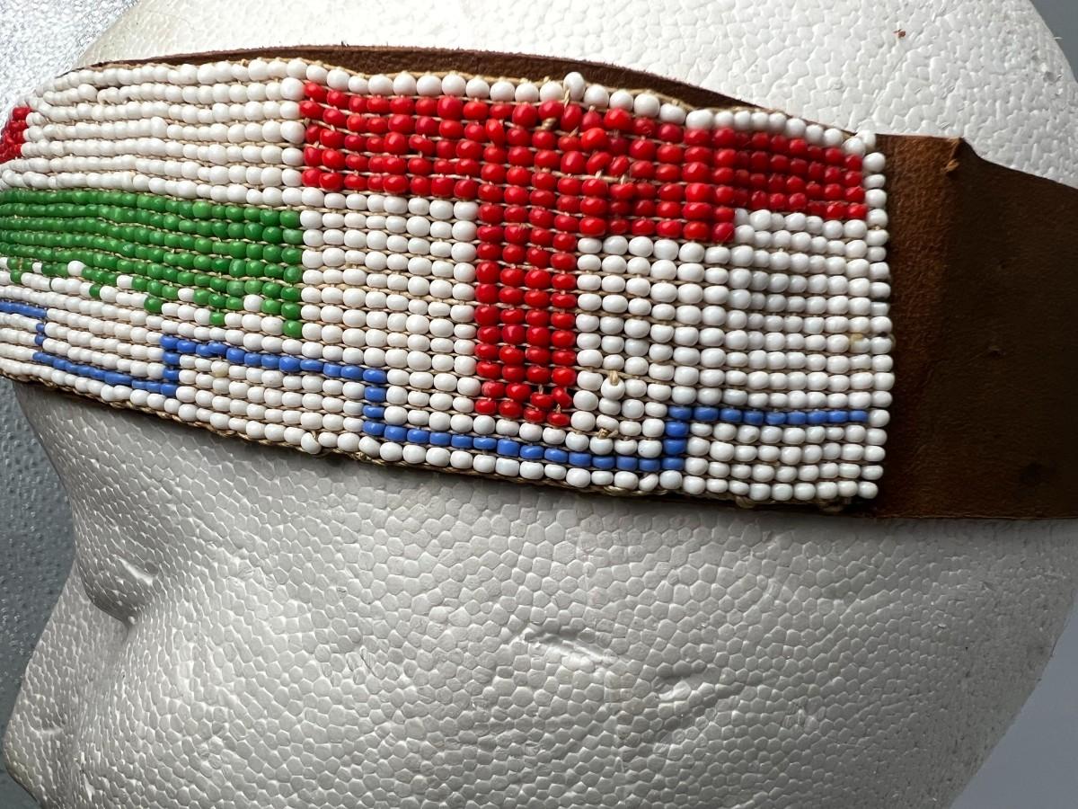 Vintage Southwestern Style Micro Seed Bead & Leather Headband