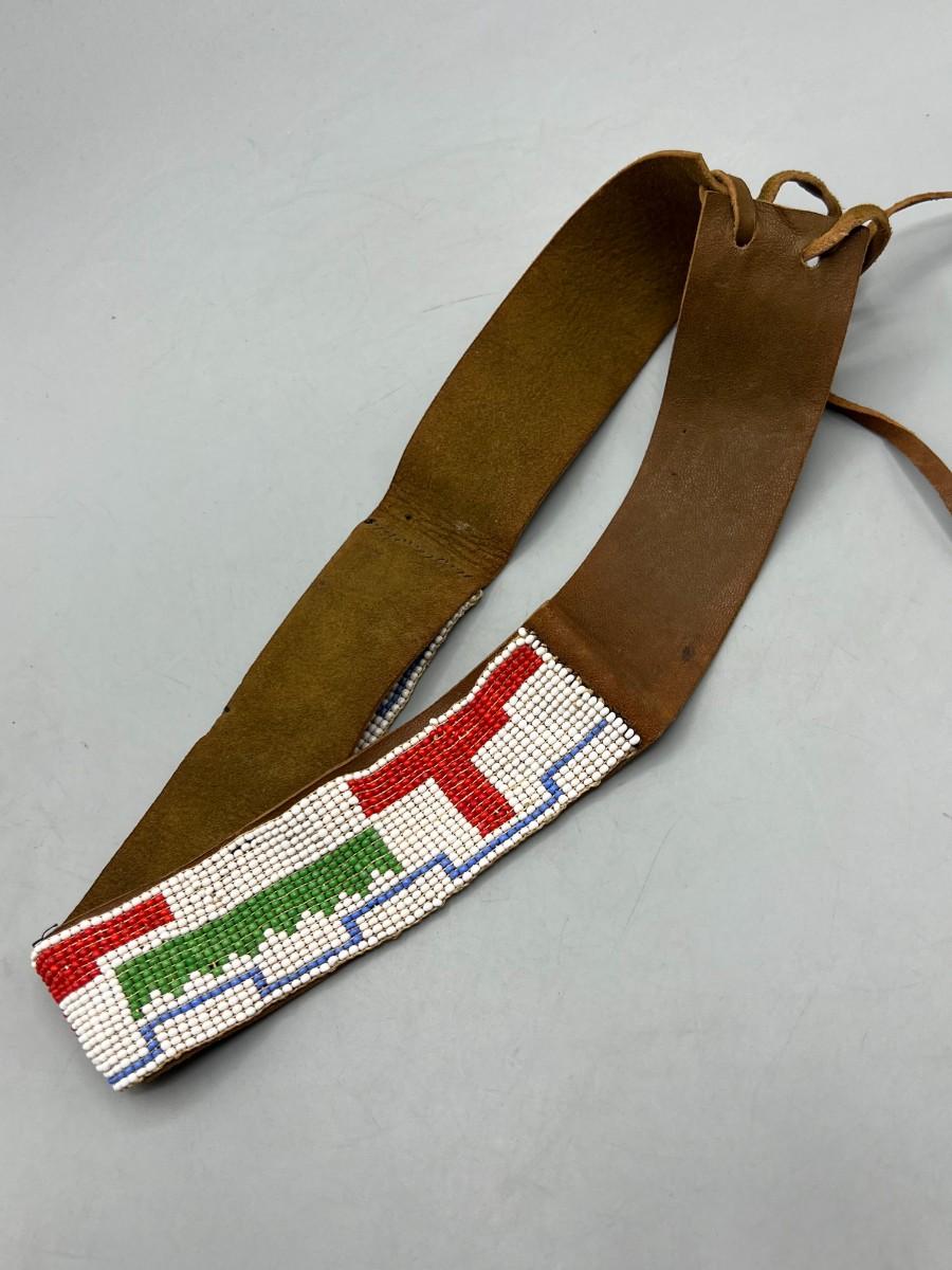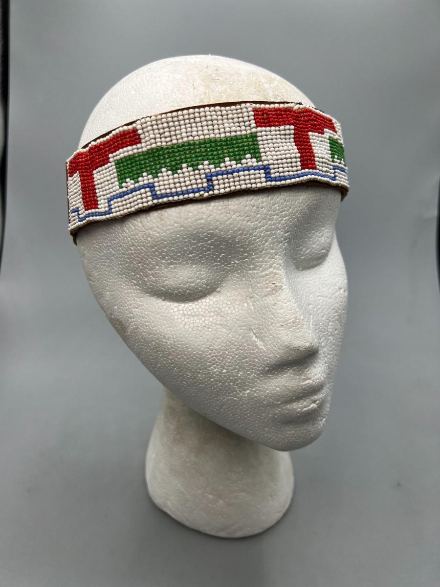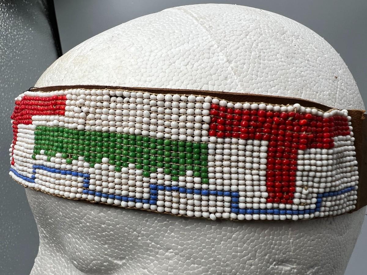 Vintage Southwestern Style Micro Seed Bead & Leather Headband