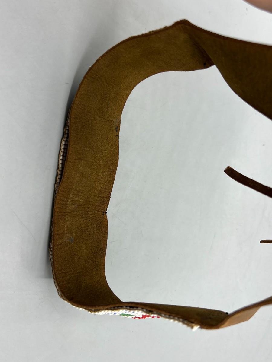 Vintage Southwestern Style Micro Seed Bead & Leather Headband. In good vintage condition. Ties together at the ends for perfect fit.