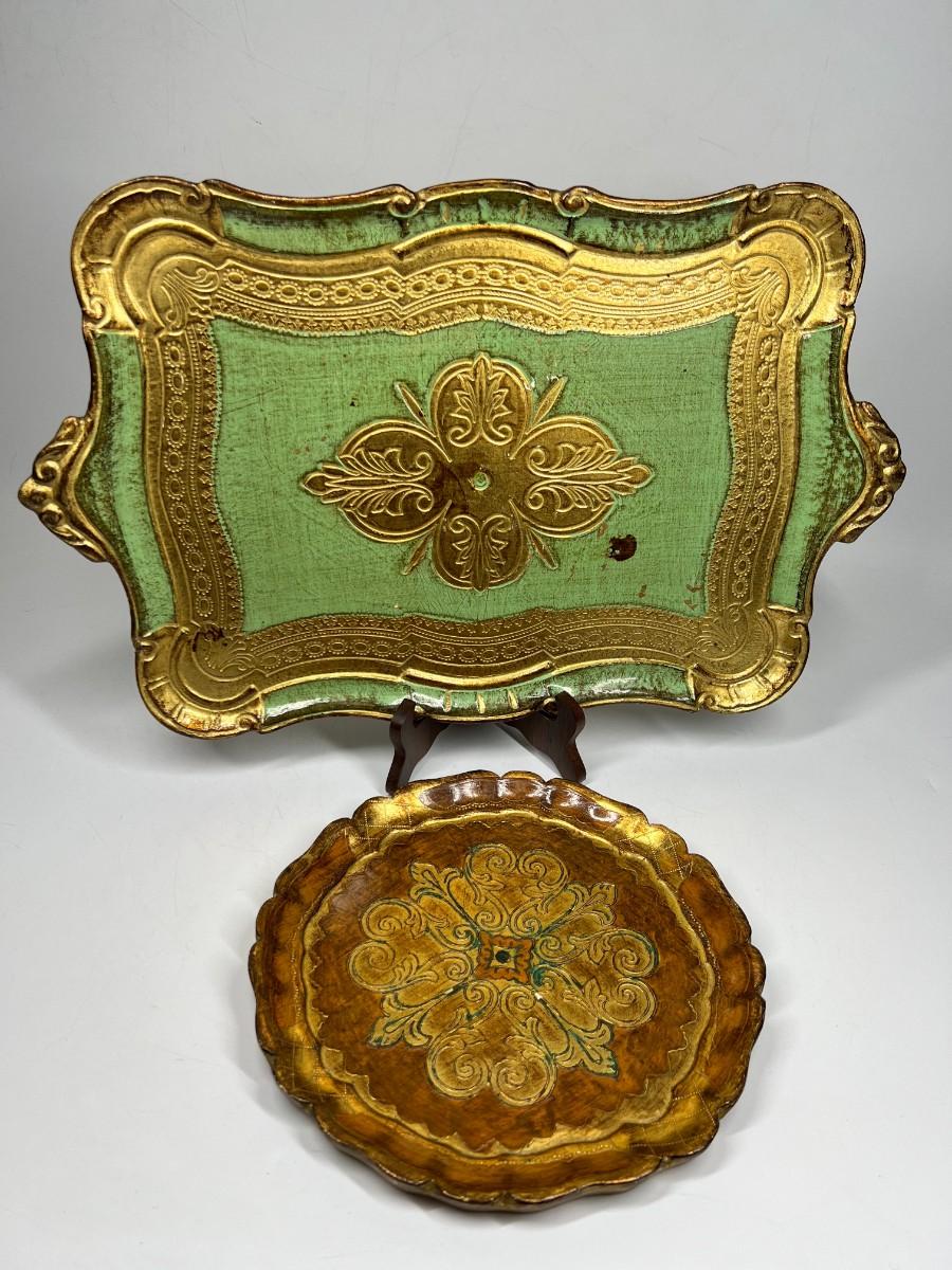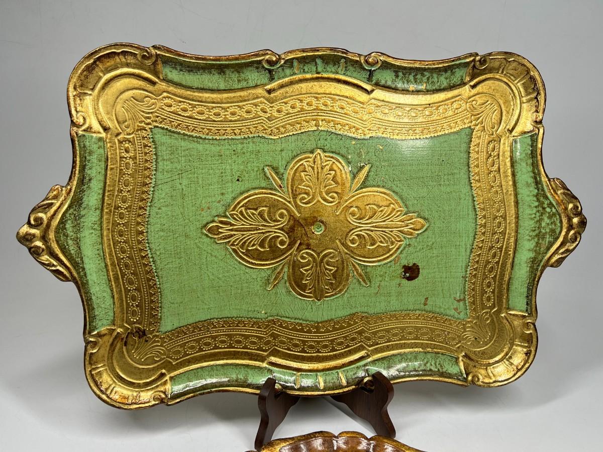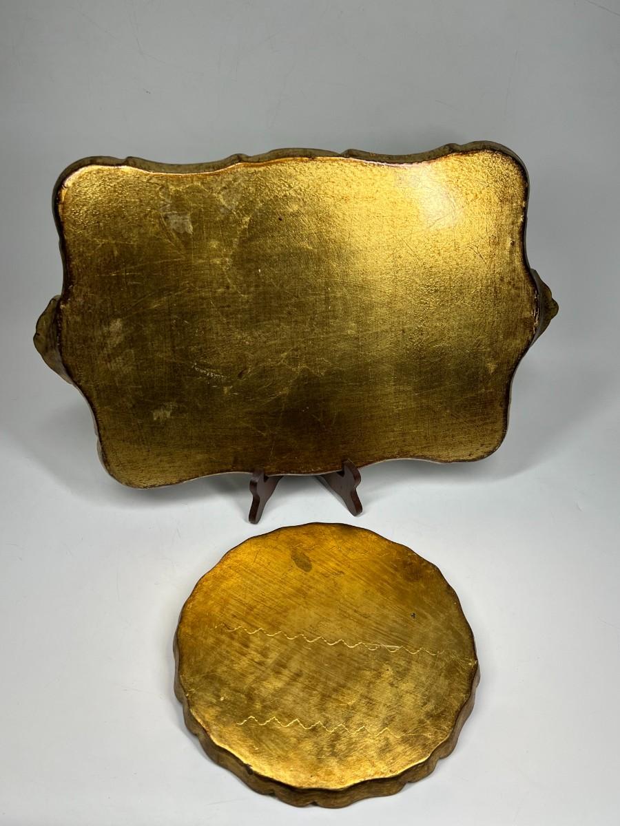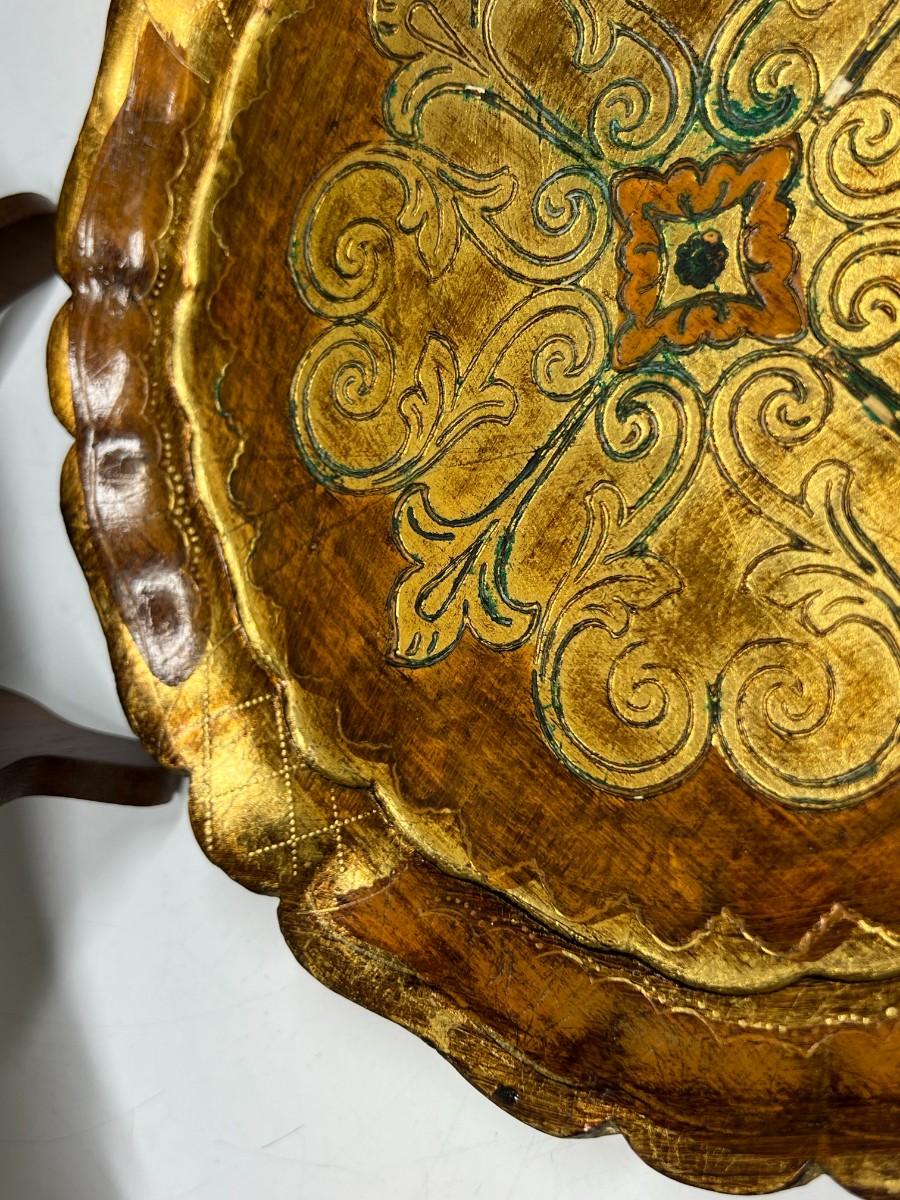 Vintage Italian Wooden Gold Gilded Regal Serving Display Platter