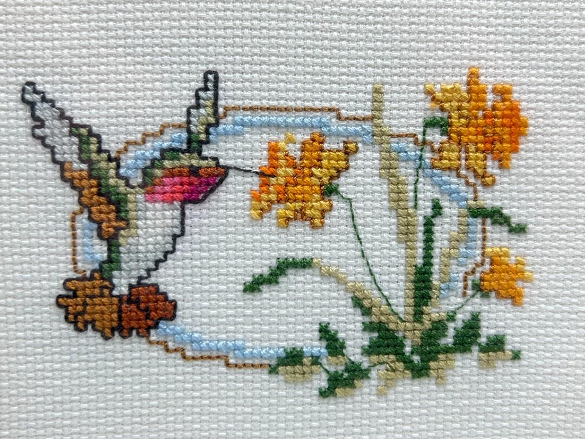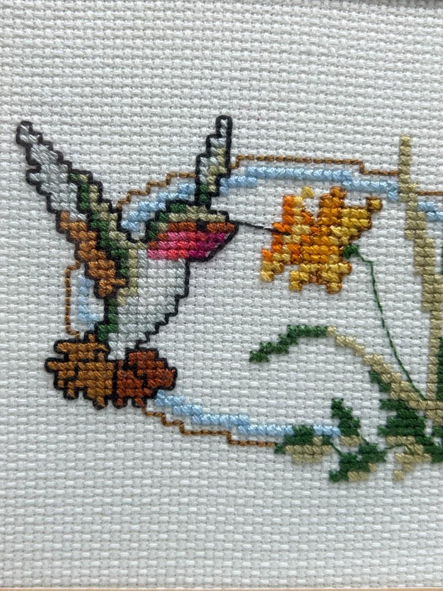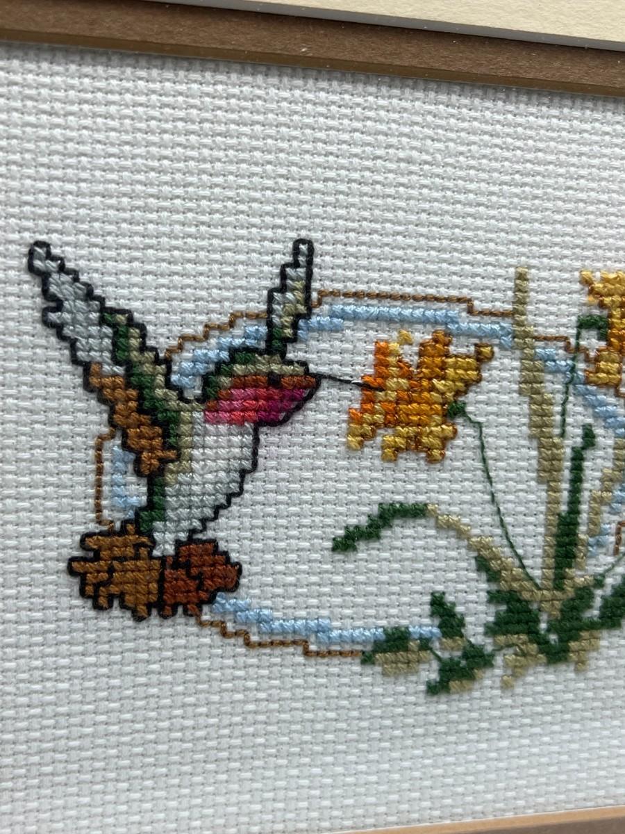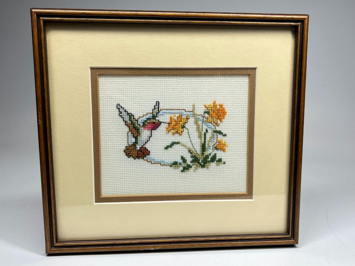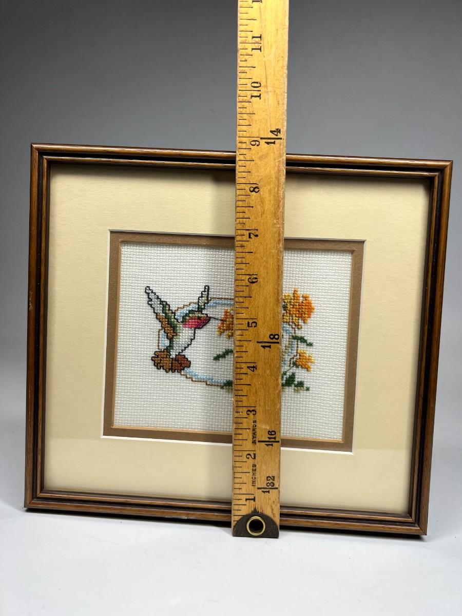 Vintage Crochet Needlepoint Crafting Art Hummingbird Framed Piece