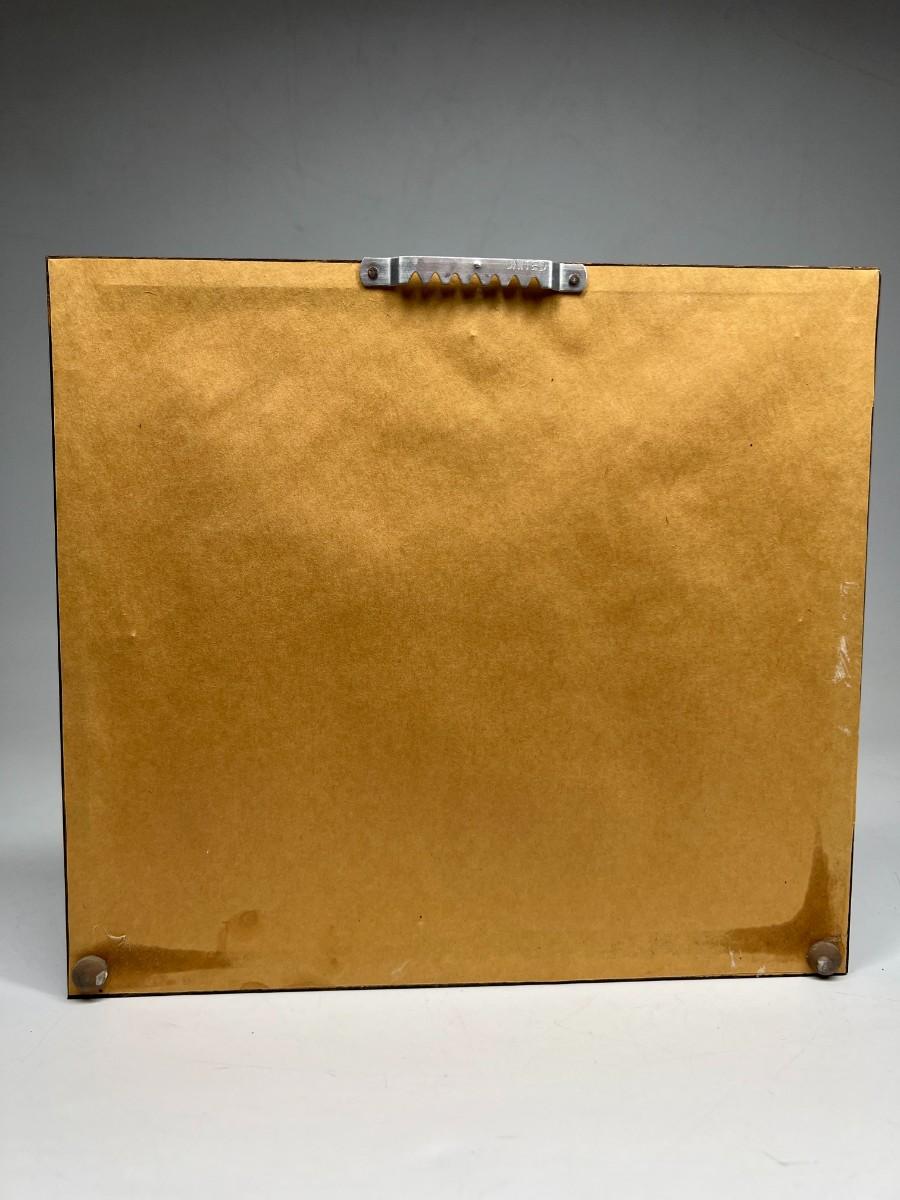 There is no damage to the framed piece and is in overall good displayable condition. Check pictures for more details and for sizing.