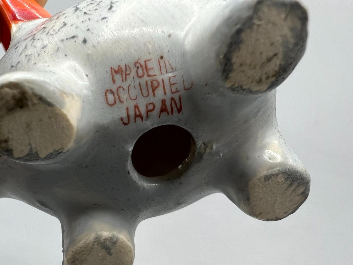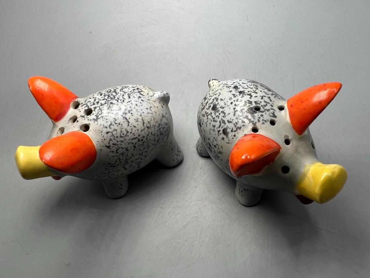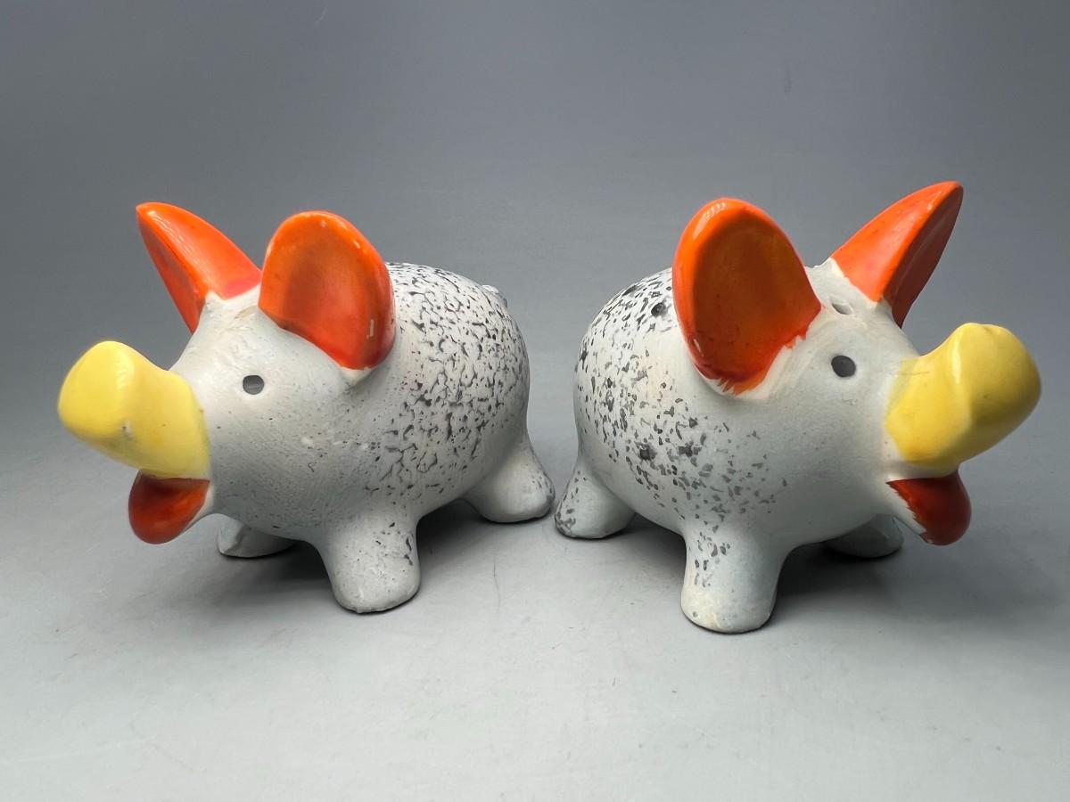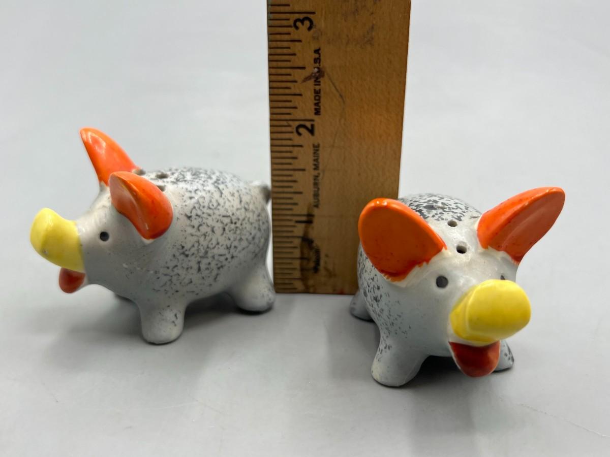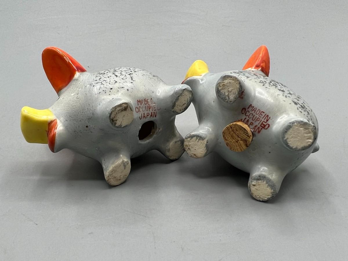 Pair of Midcentury Occupied Japan Ceramic Pig Salt and Pepper Shakers. in good vintage condition. Display good. One is missing stopper in the bottom.