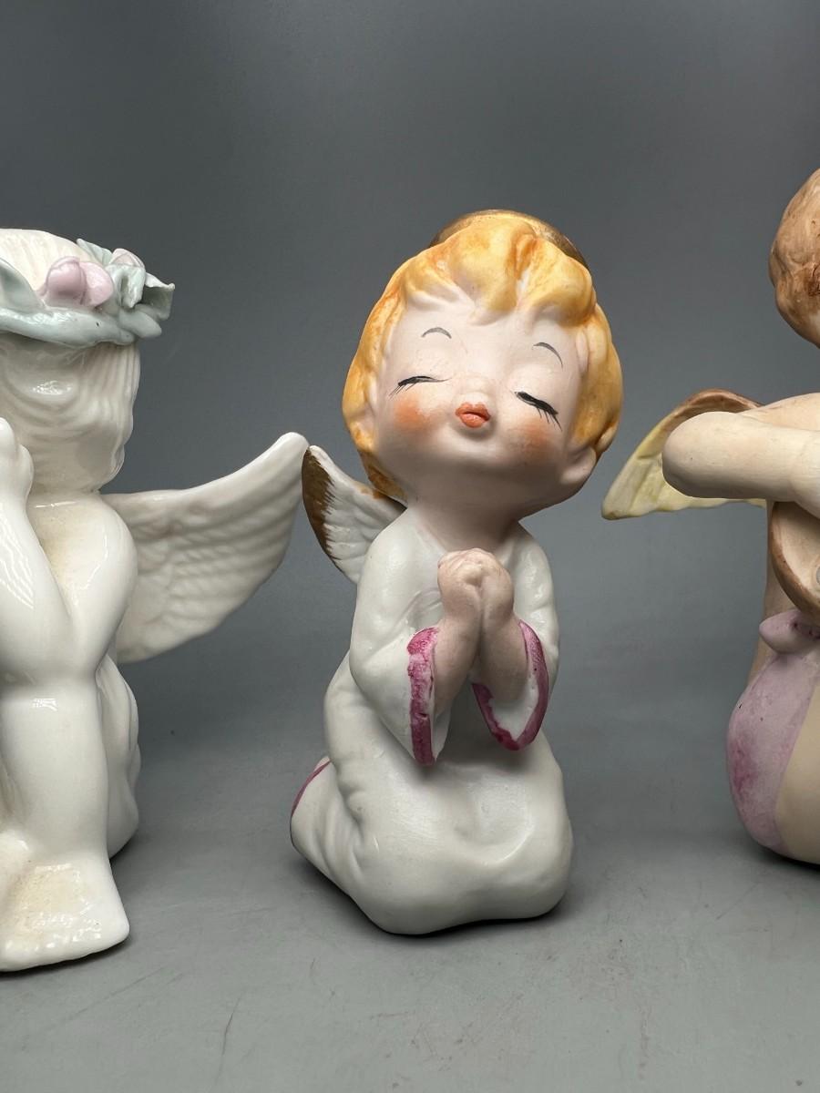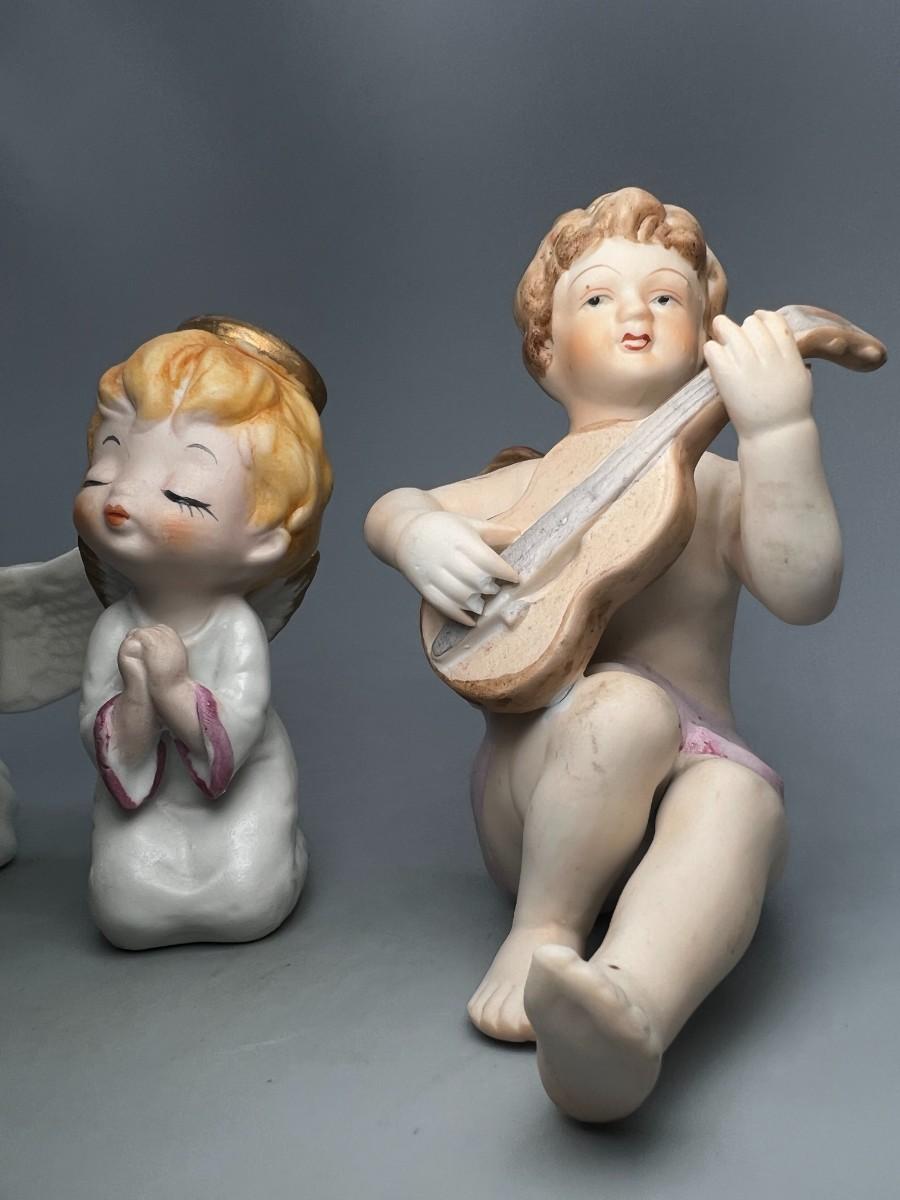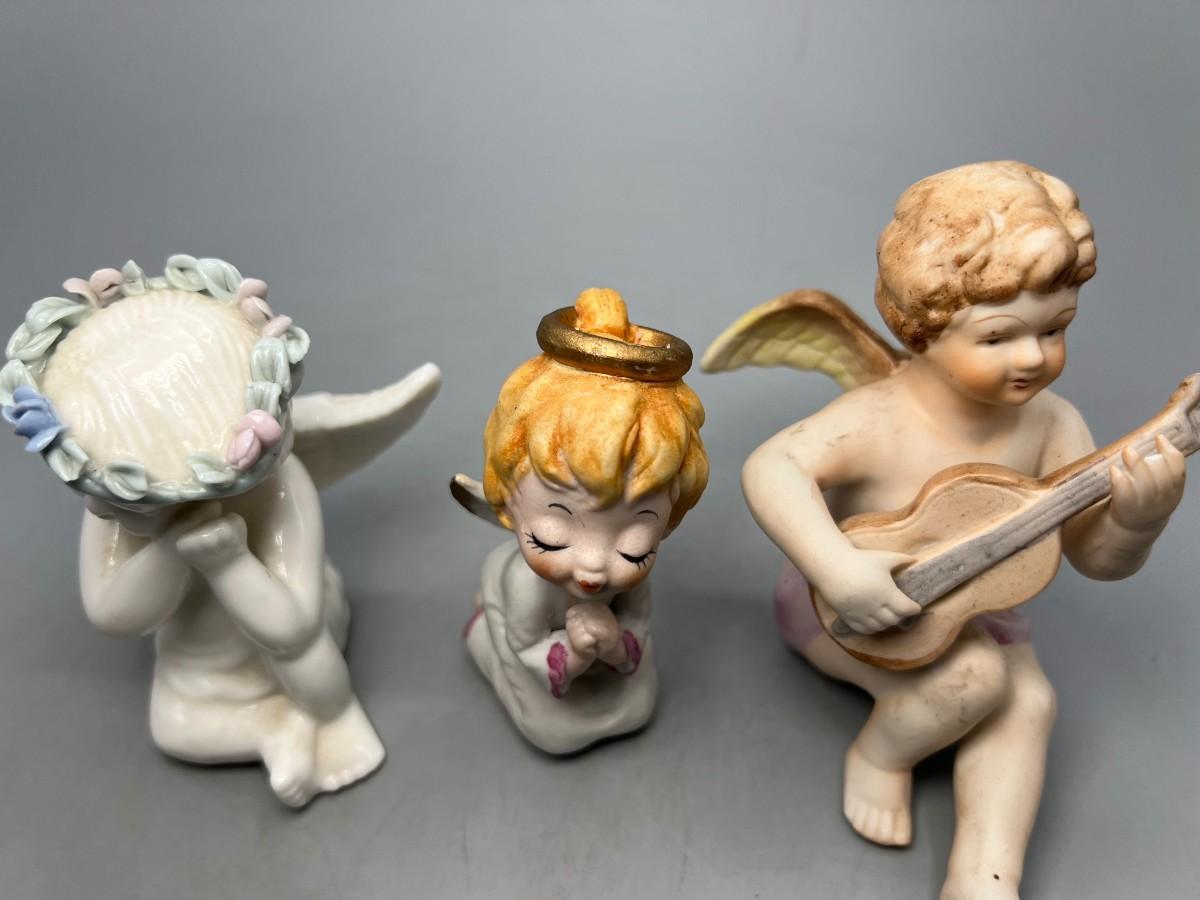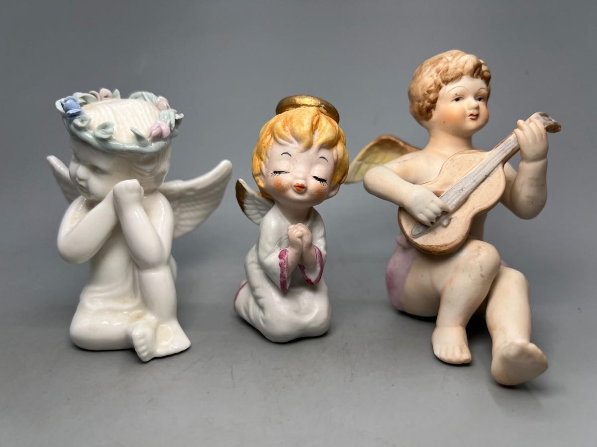 Lot of Three Angel Cherub Porcelain Bisque Figurines. In good condition.