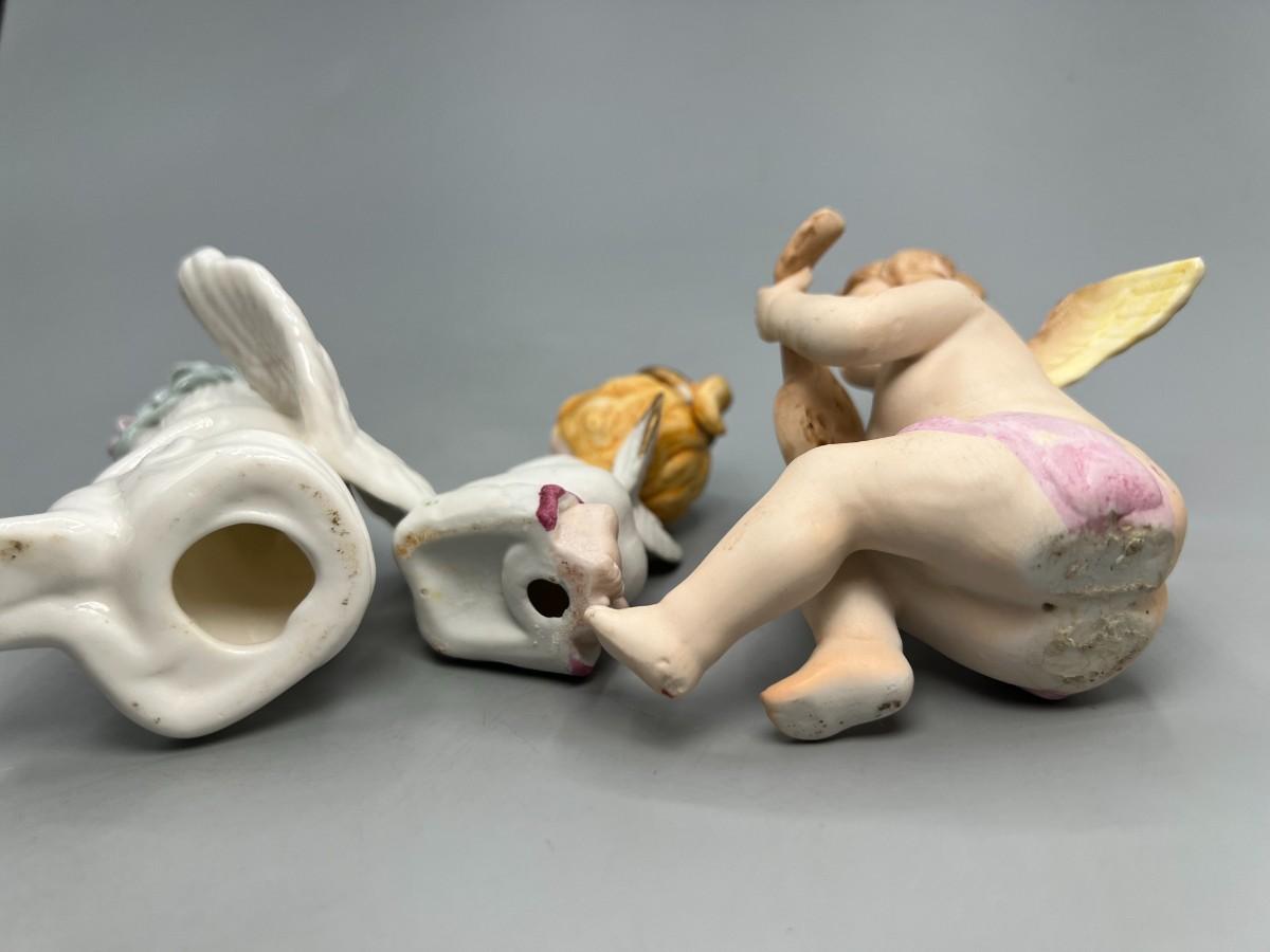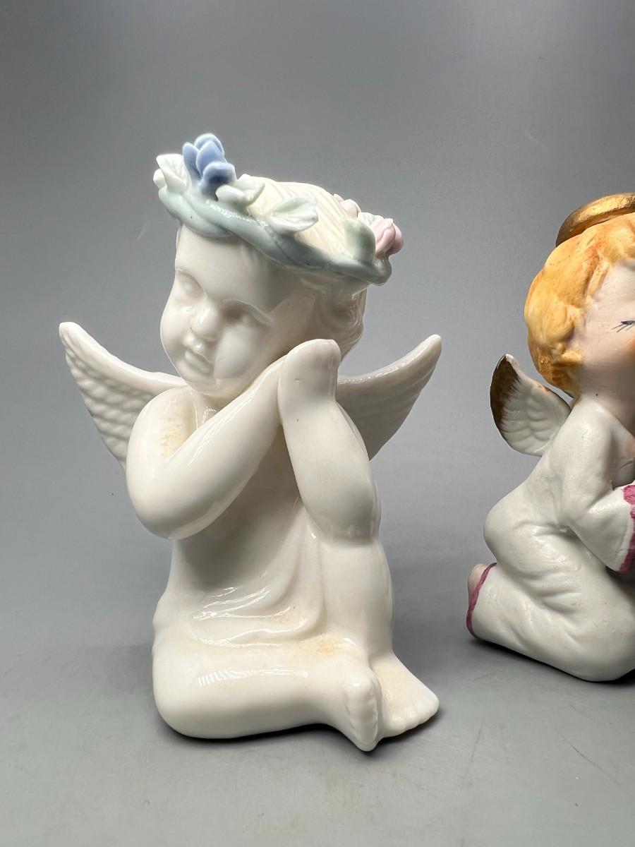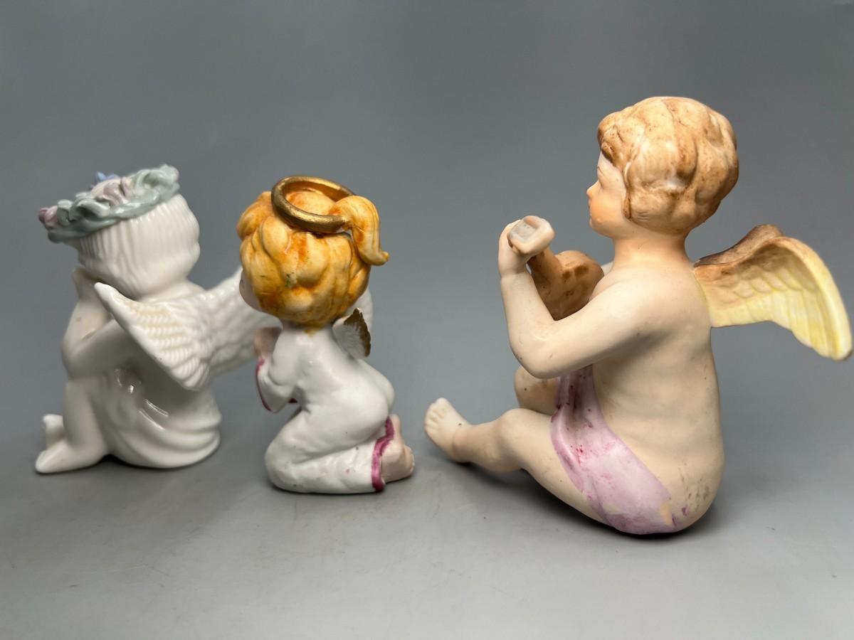 Lot of Three Angel Cherub Porcelain Bisque Figurines