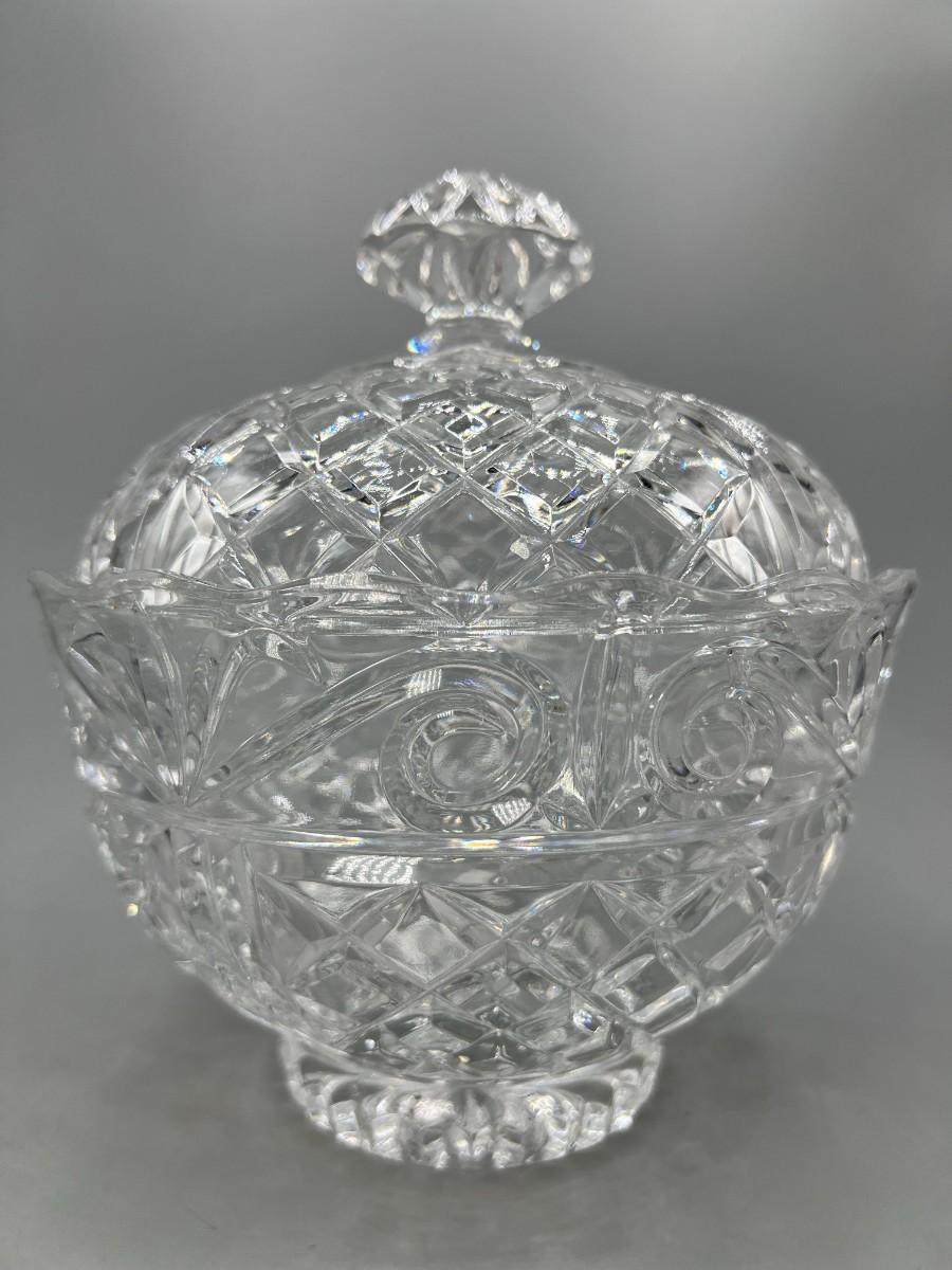 Vintage Cut Crystal Glass Lidded Candy Dish Compote. In good condition, nice size.