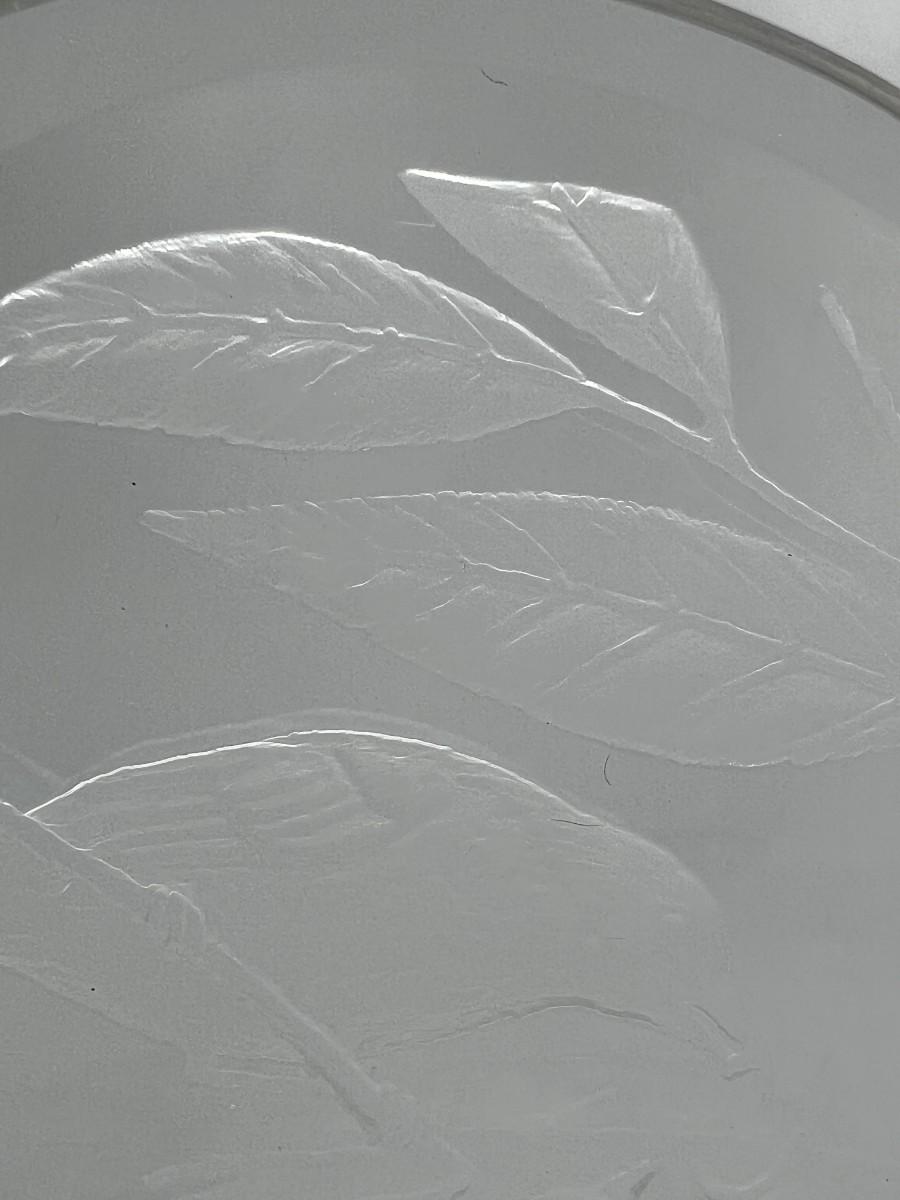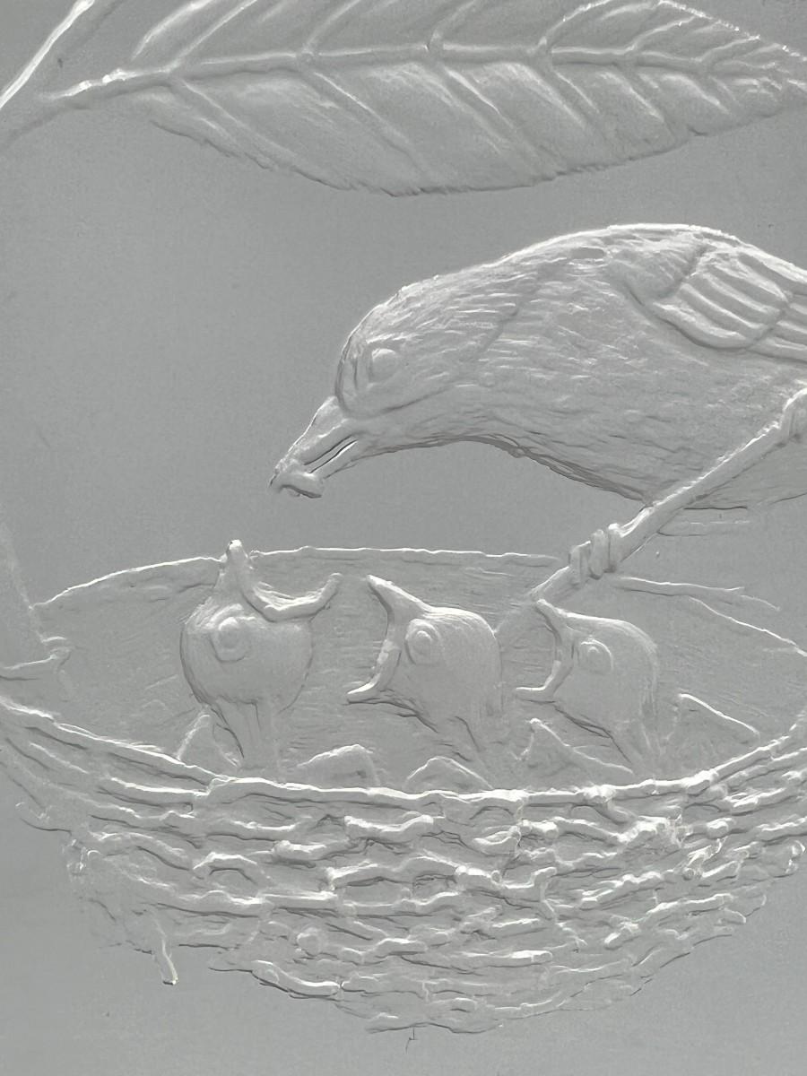 Vintage Etched Glass Medallion Art Mother Bird Feeding Babies in Nest