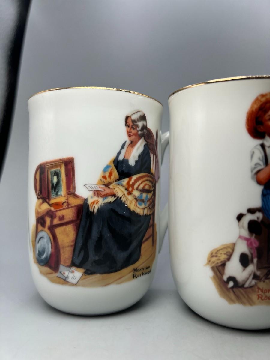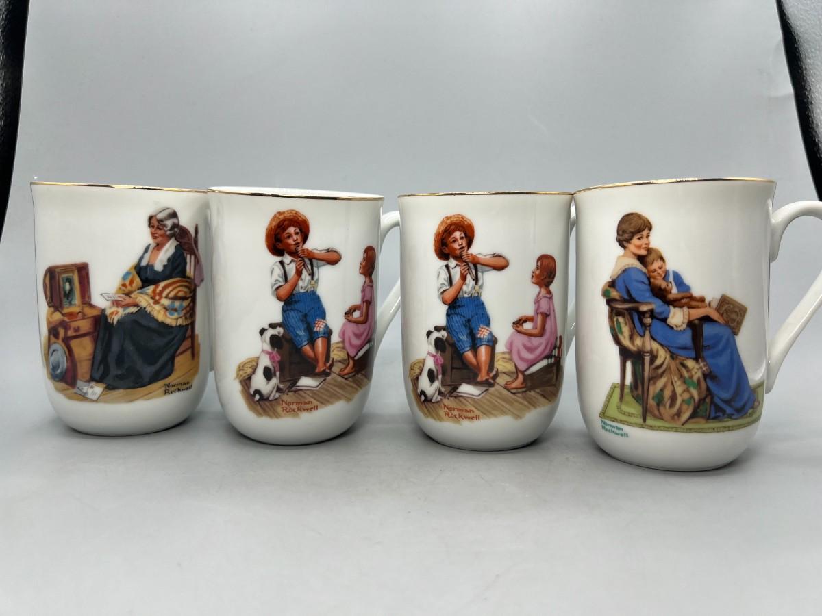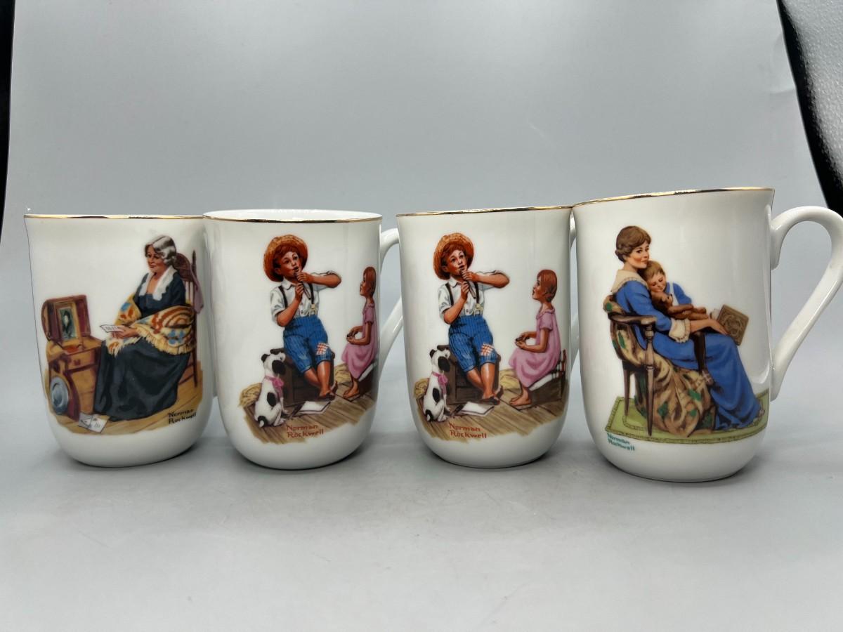 Set of 4 Norman Rockwell Coffee Cup Mugs. Two are identical. In good condition.