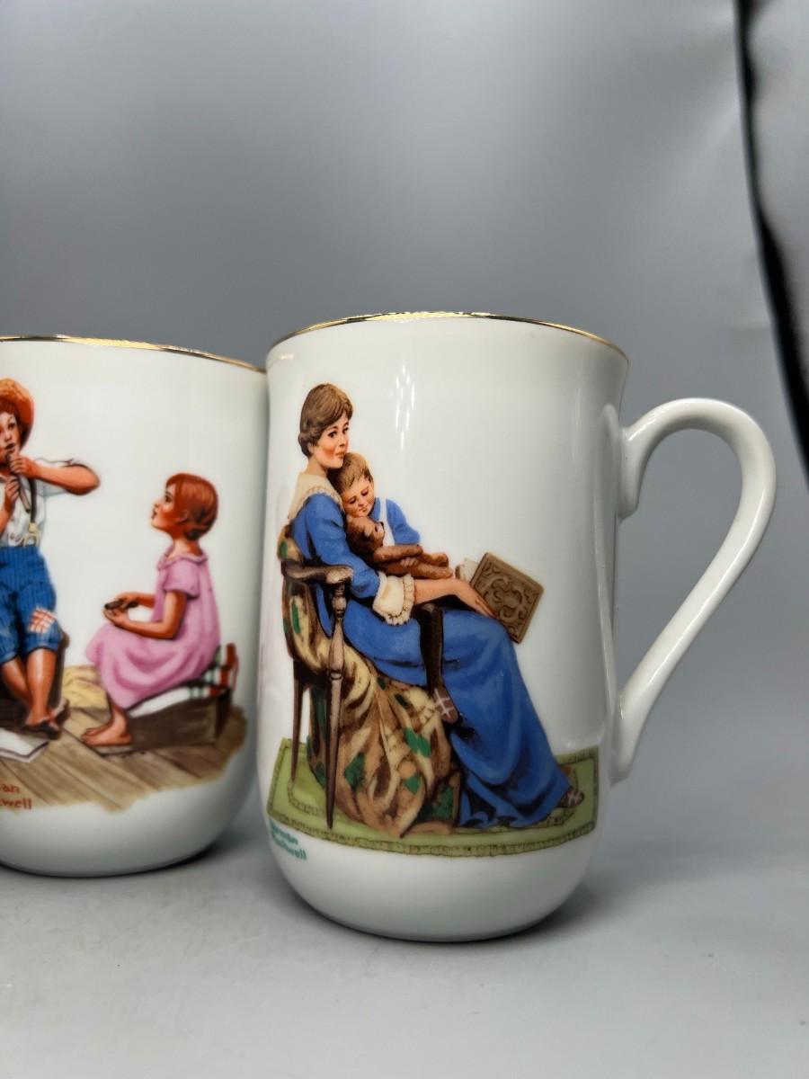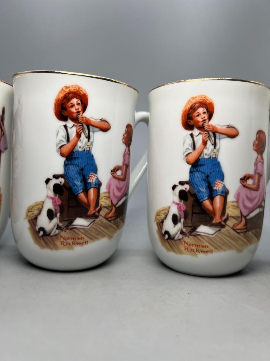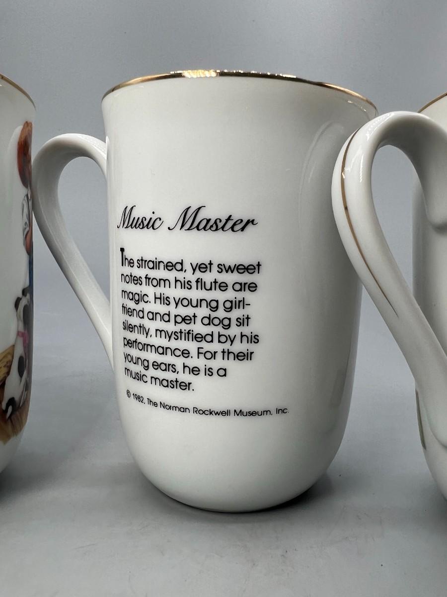 Set of 4 Norman Rockwell Coffee Cup Mugs. Two are identical. In good condition.
