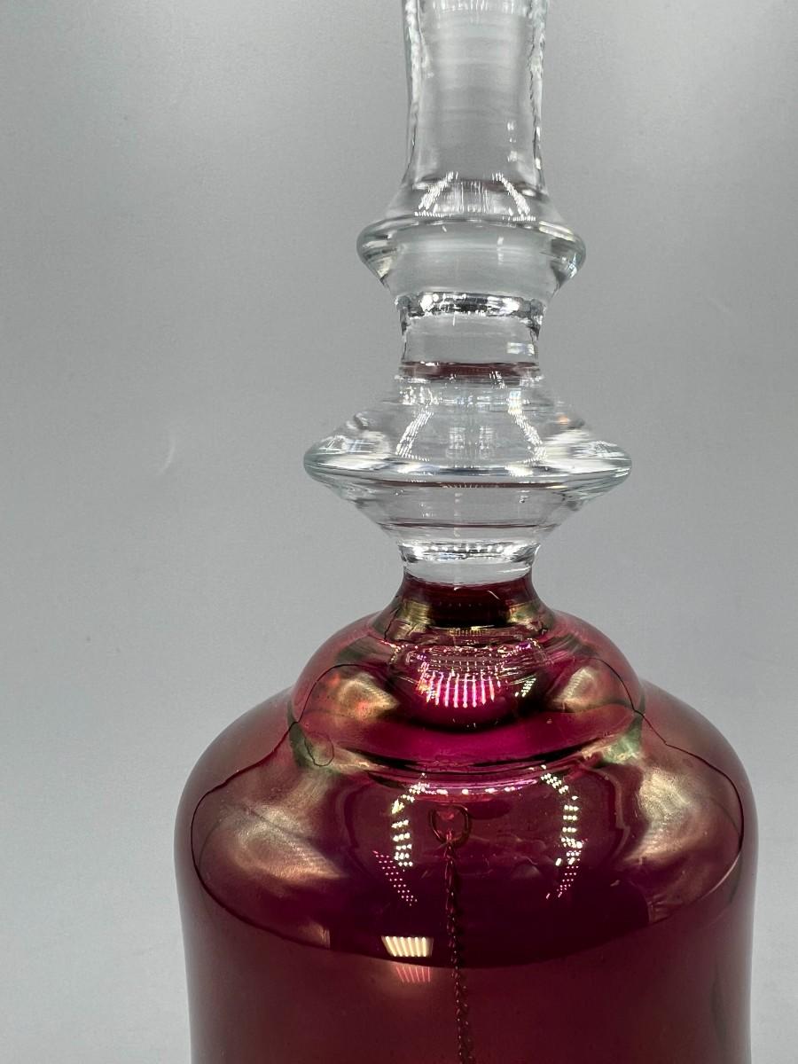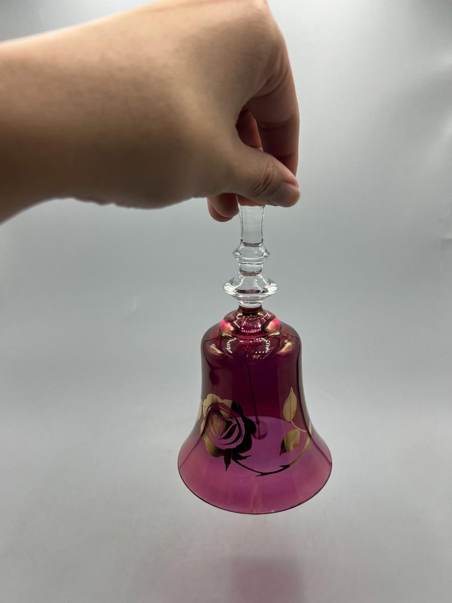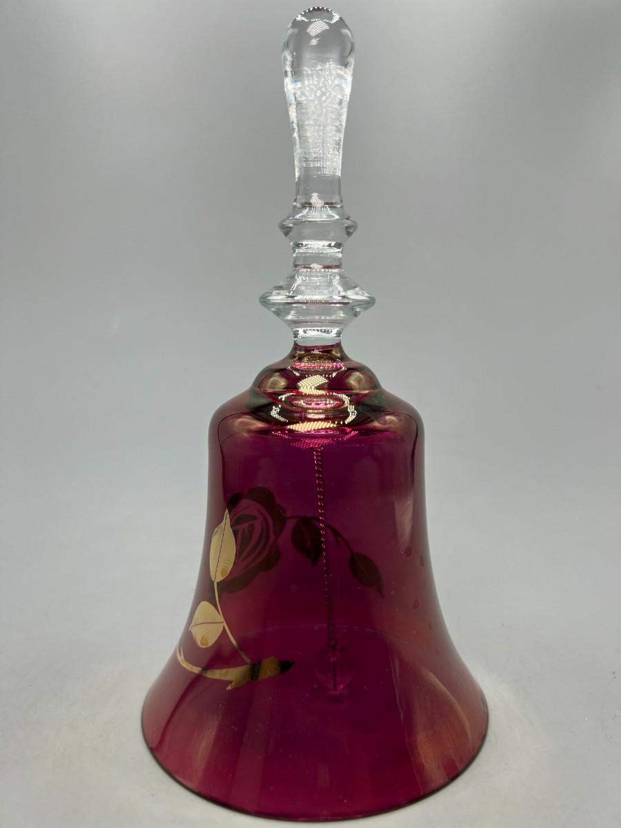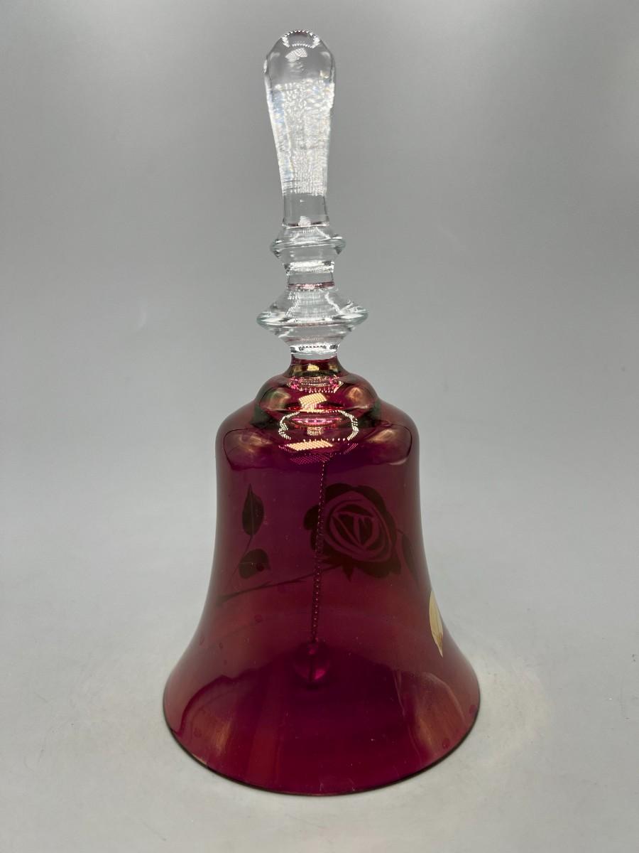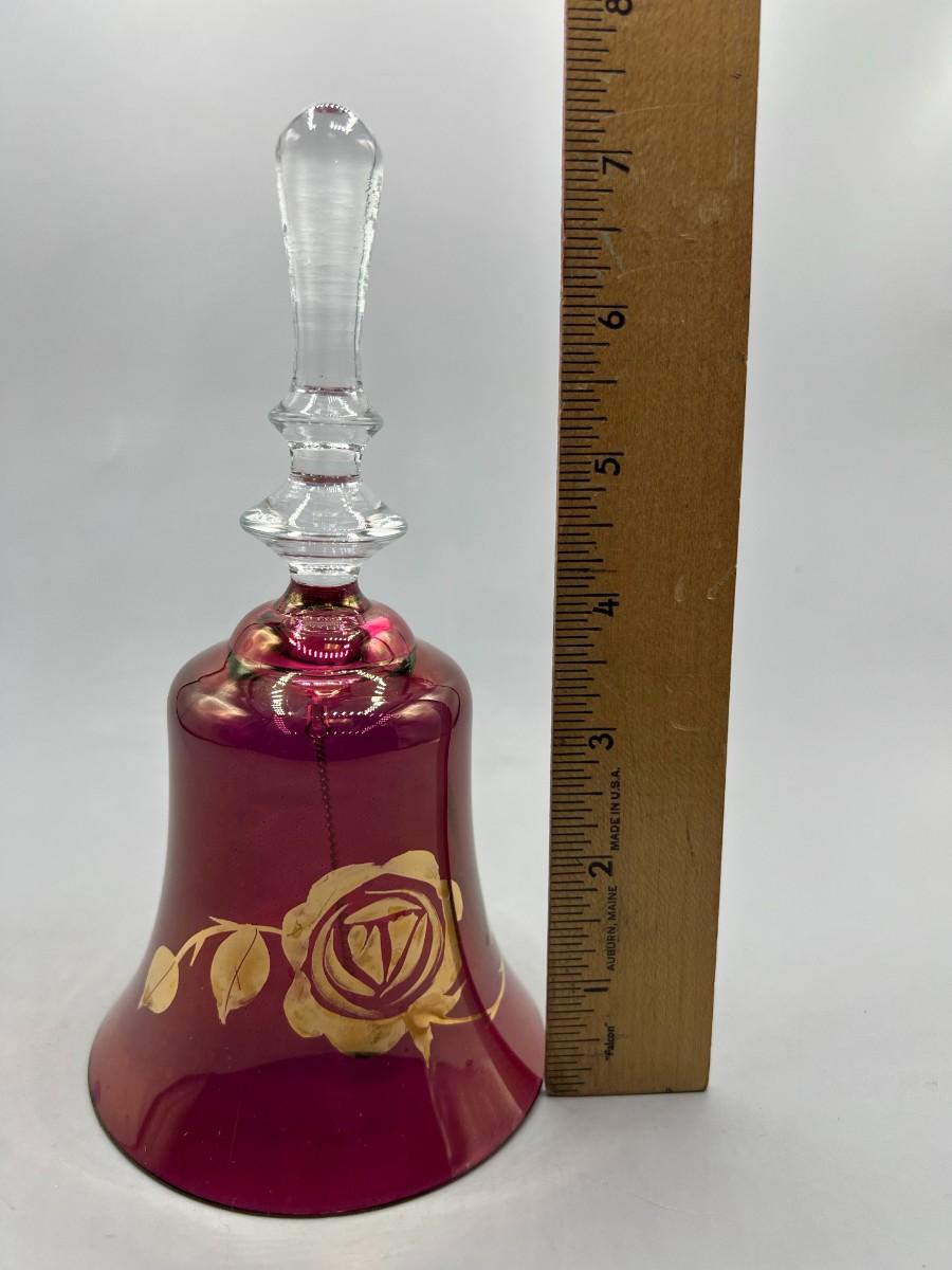 Vintage Cranberry and Clear Glass Bell with Gold Gilt Flower Rose Pattern