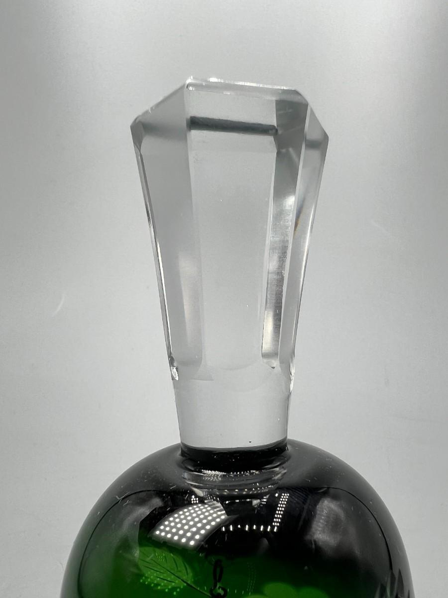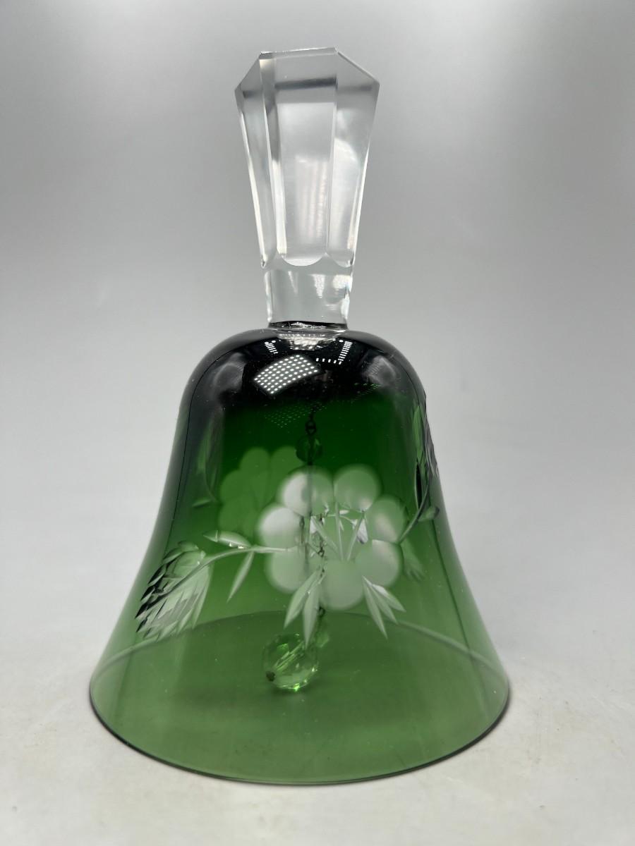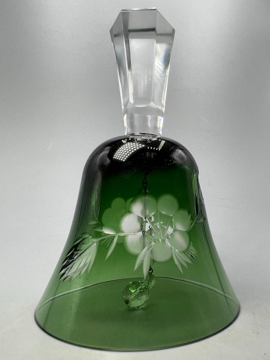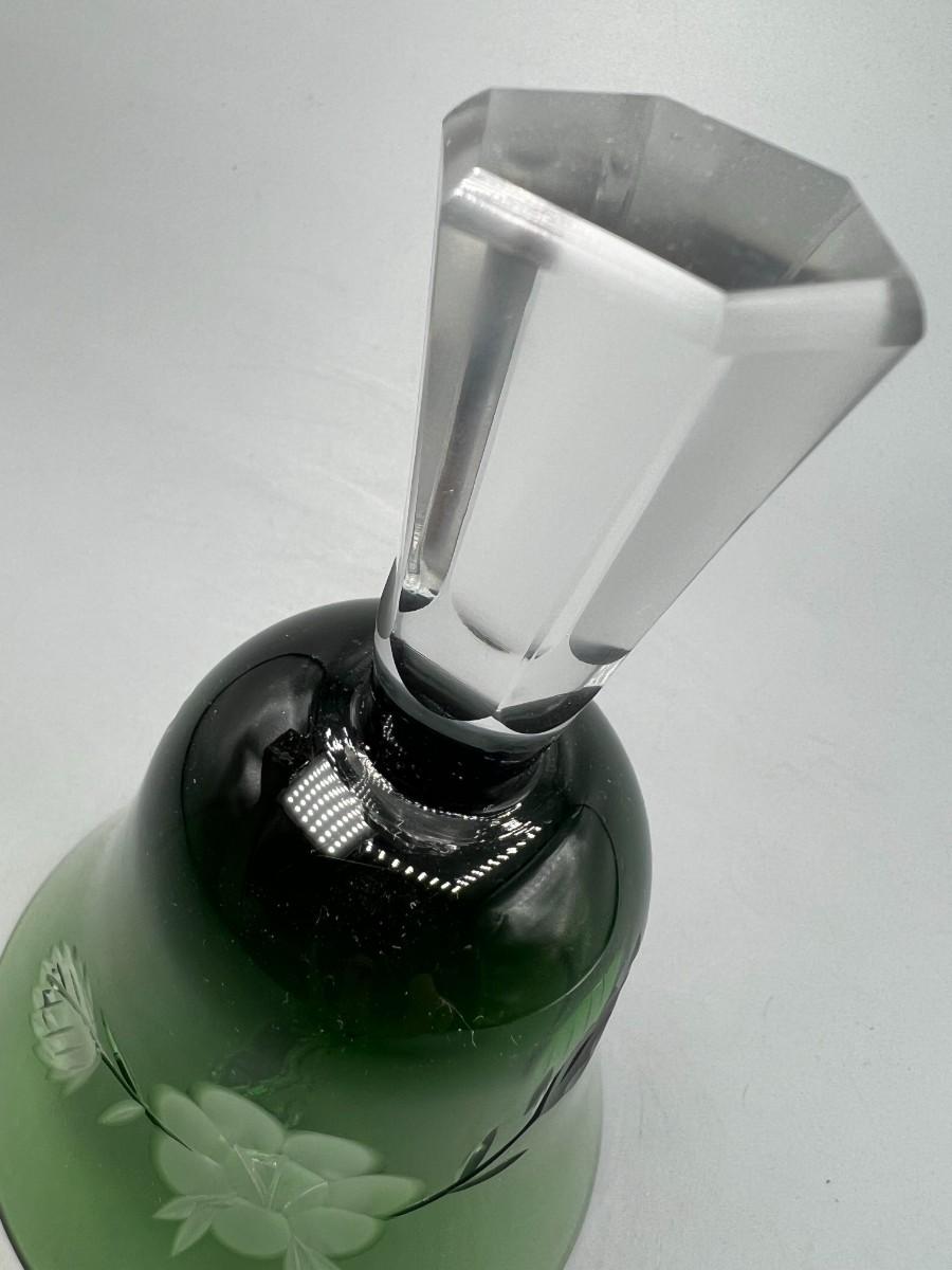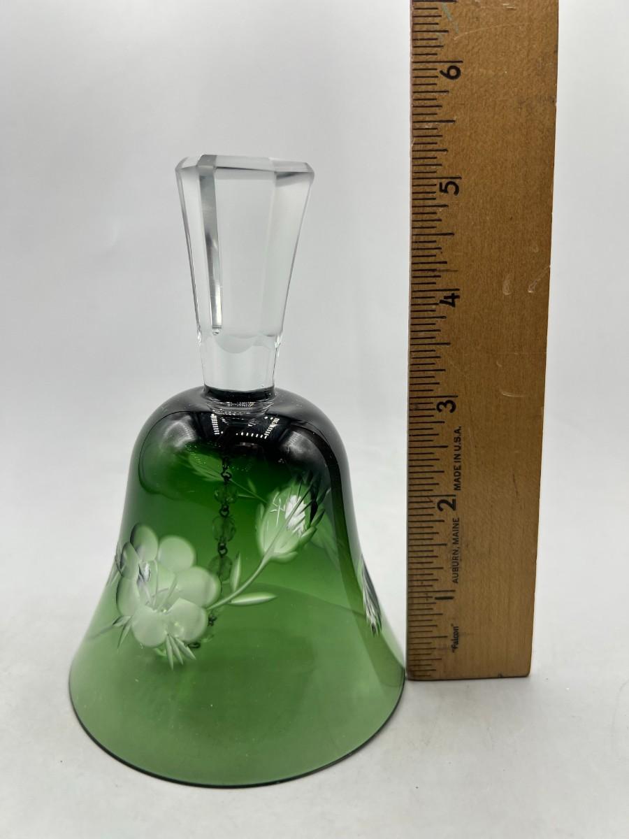 Vintage Emerald Green Cut to Clear Glass Crystal Bell Flower Pattern Etched. In good vintage condition.