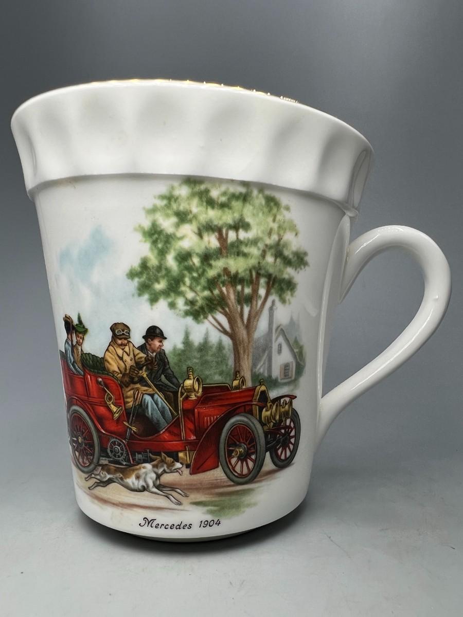 Vintage Crown Staffordshire Bone China Coffee Tea Cup Mug Mercedes 1904 Olde Time Car with Passengers. Good condition.