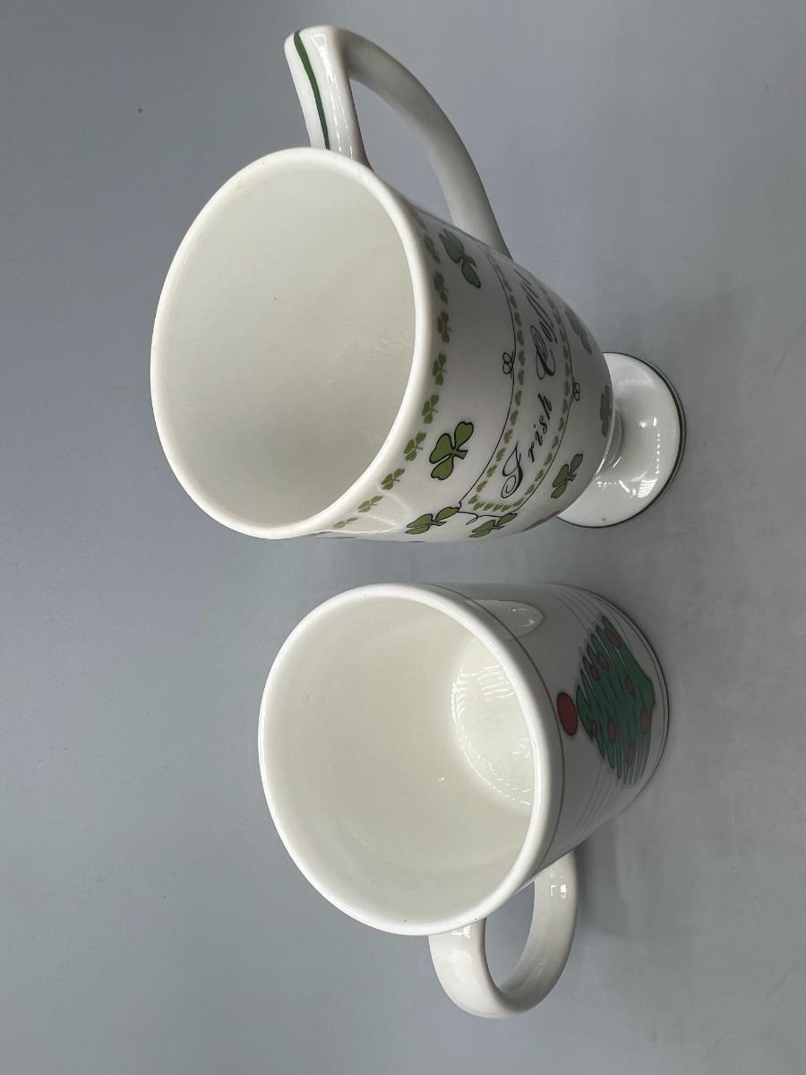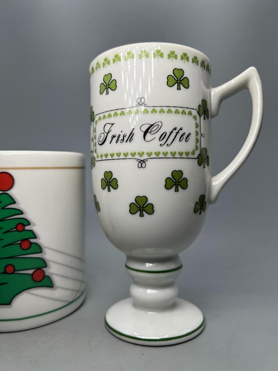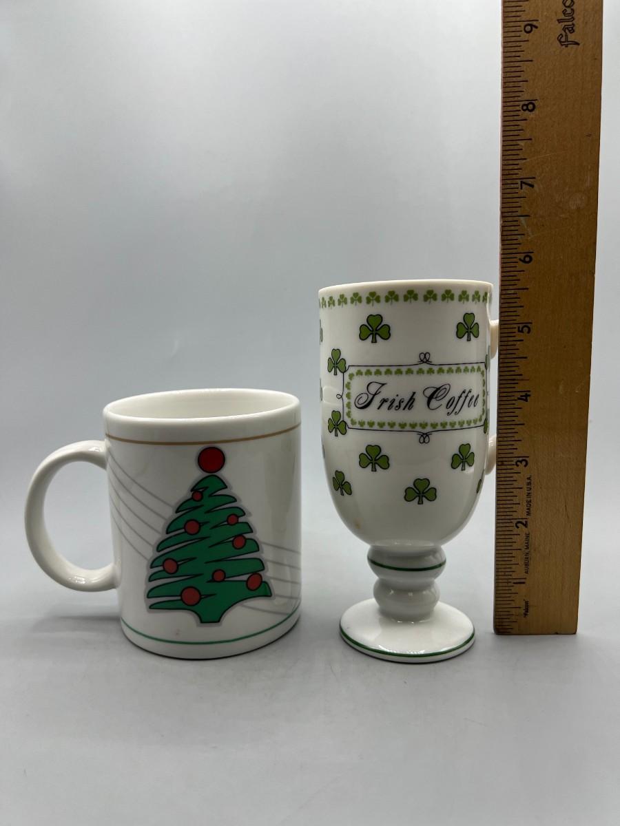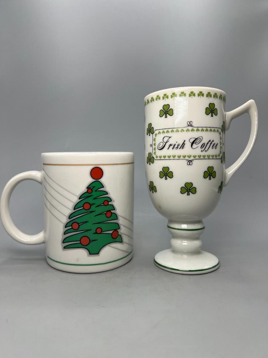 Mixed Pair of Novelty Coffee Cups Christmas Tree Seasonal Irish Coffee. In good used condition.