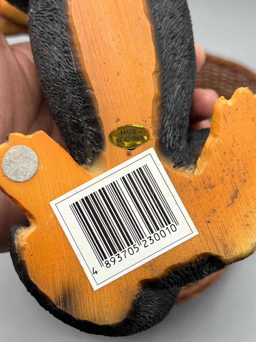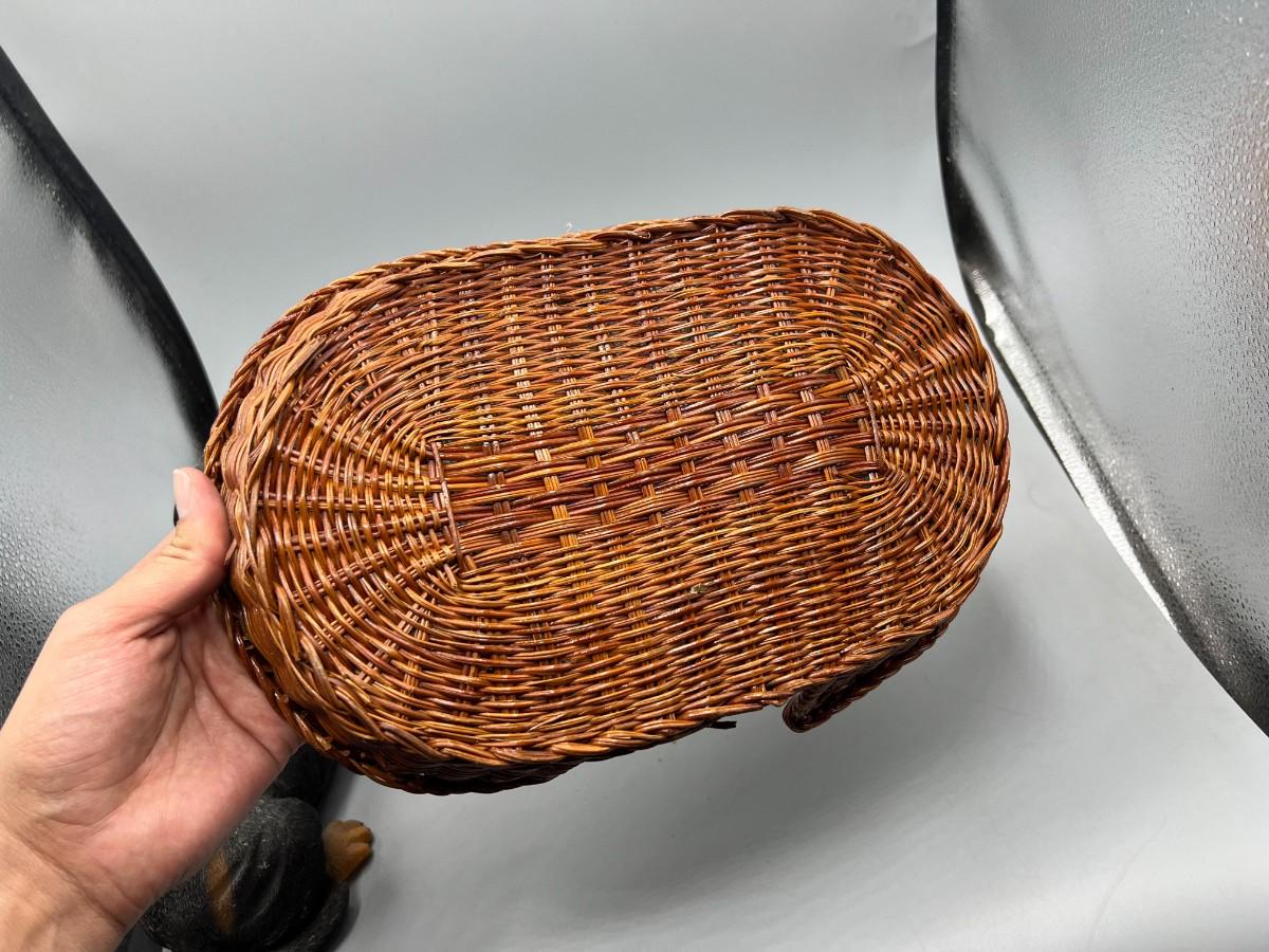Cute Black and Tan Dachshund Dog Figurine with Basket Bed. In good condition, a little dusty.