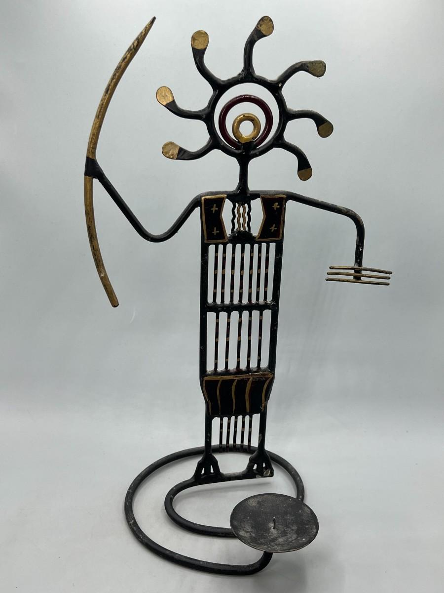 World Menagerie Petroglyph Metal Votive Candle Tribal Figure