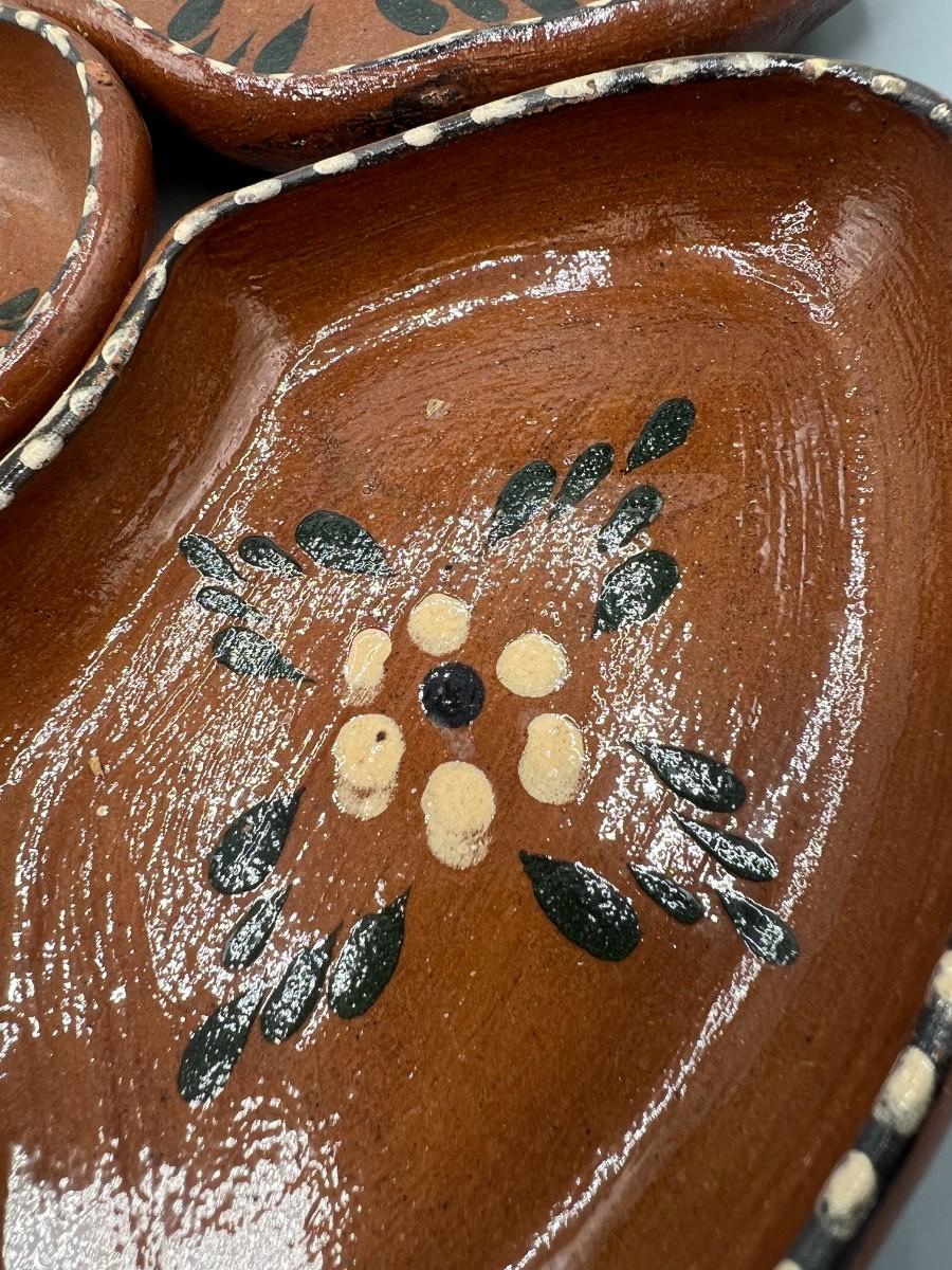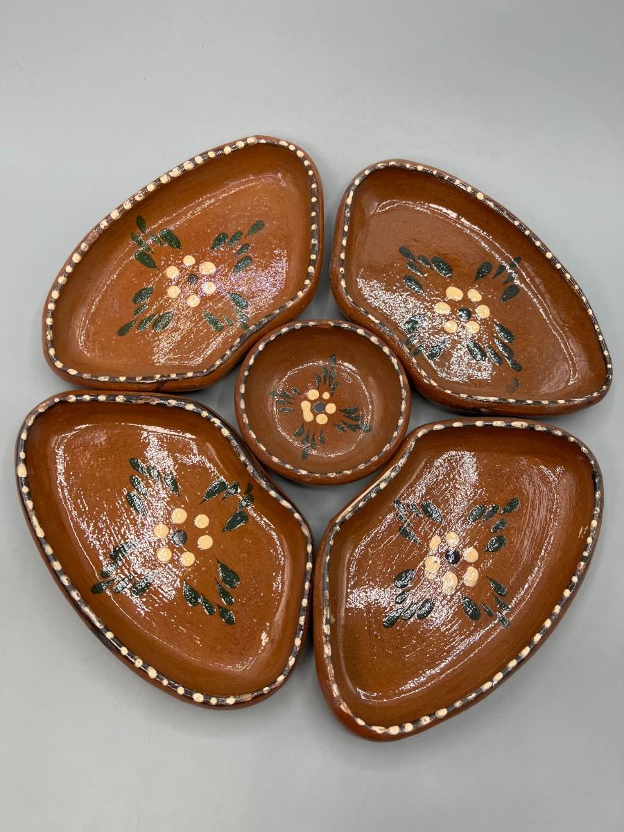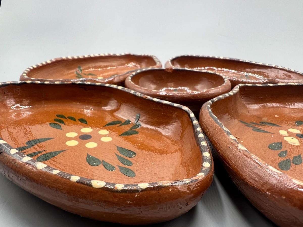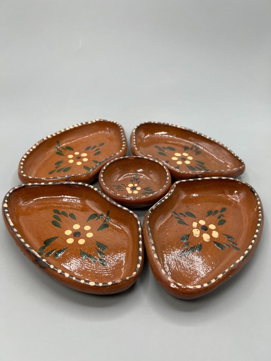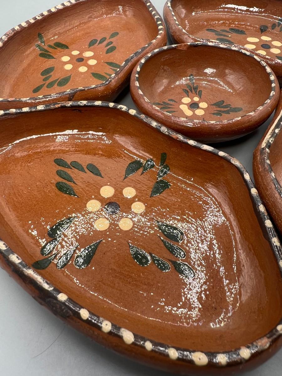 Vintage Botanero De Barro Handmade Mexican Folk Art Divided Serving Plates