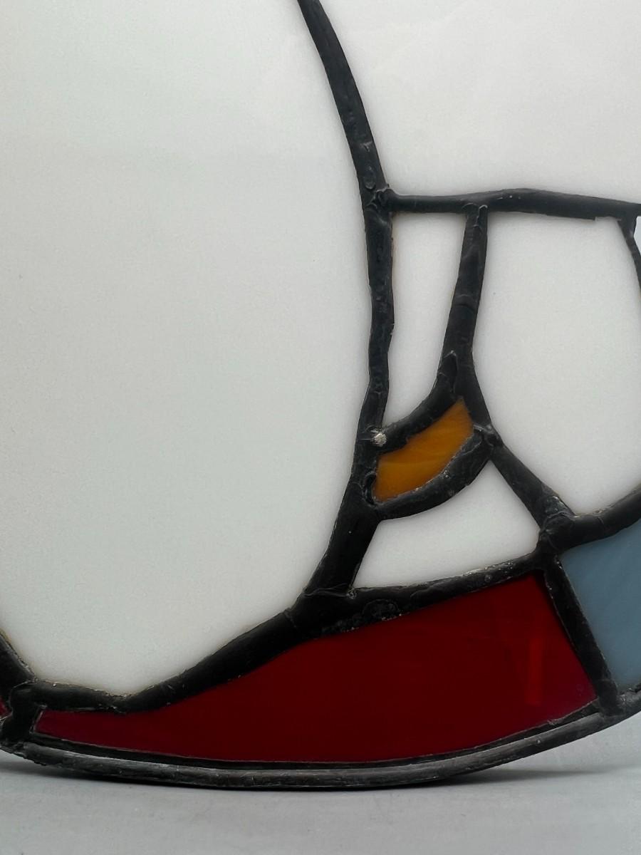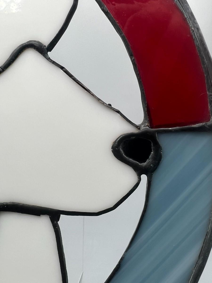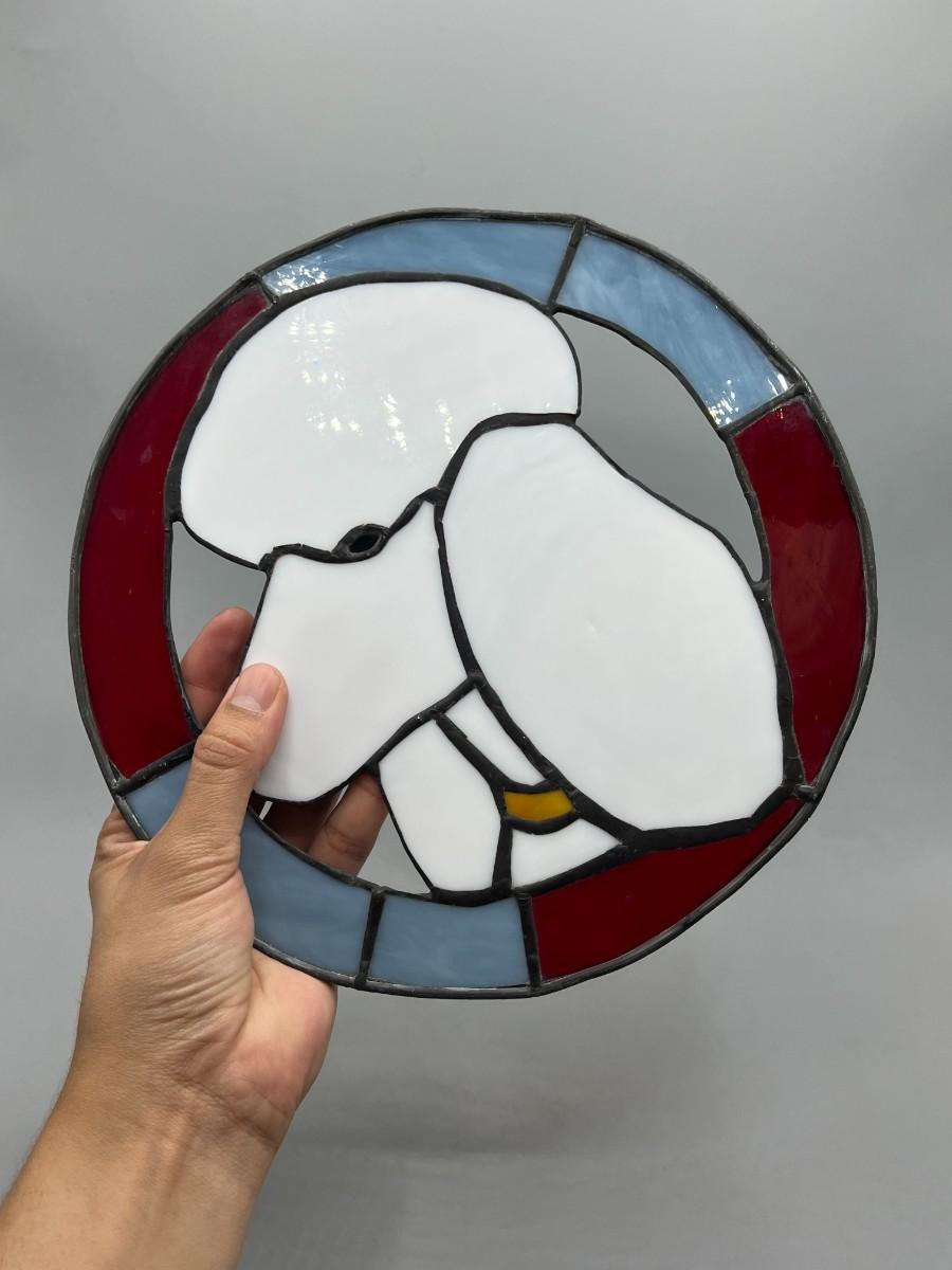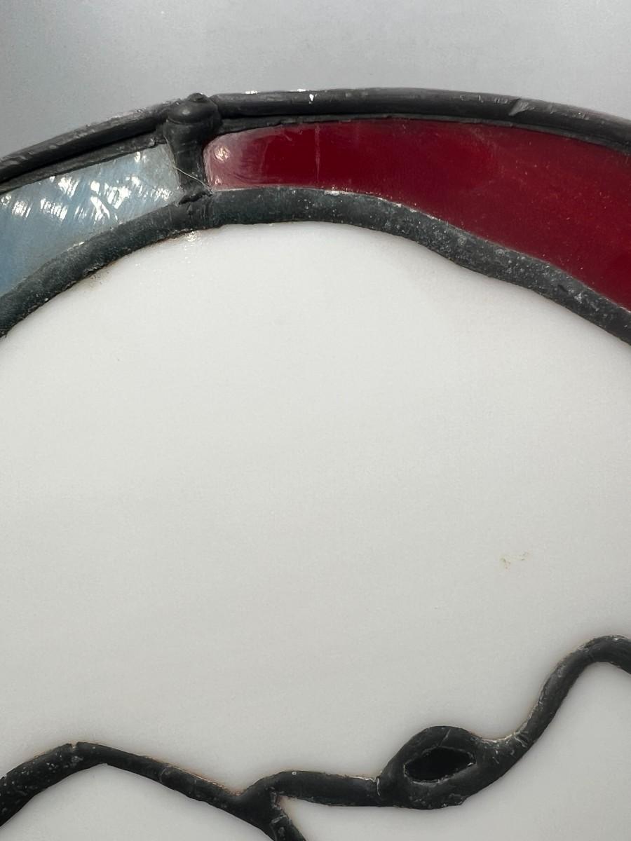 Round Stained Glass Art Suncatcher Red, Blue, White Poodle