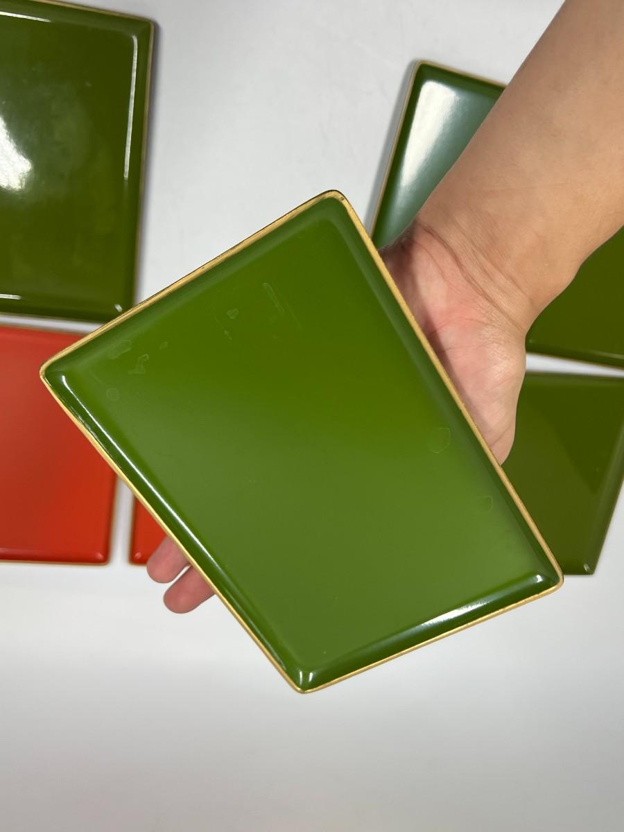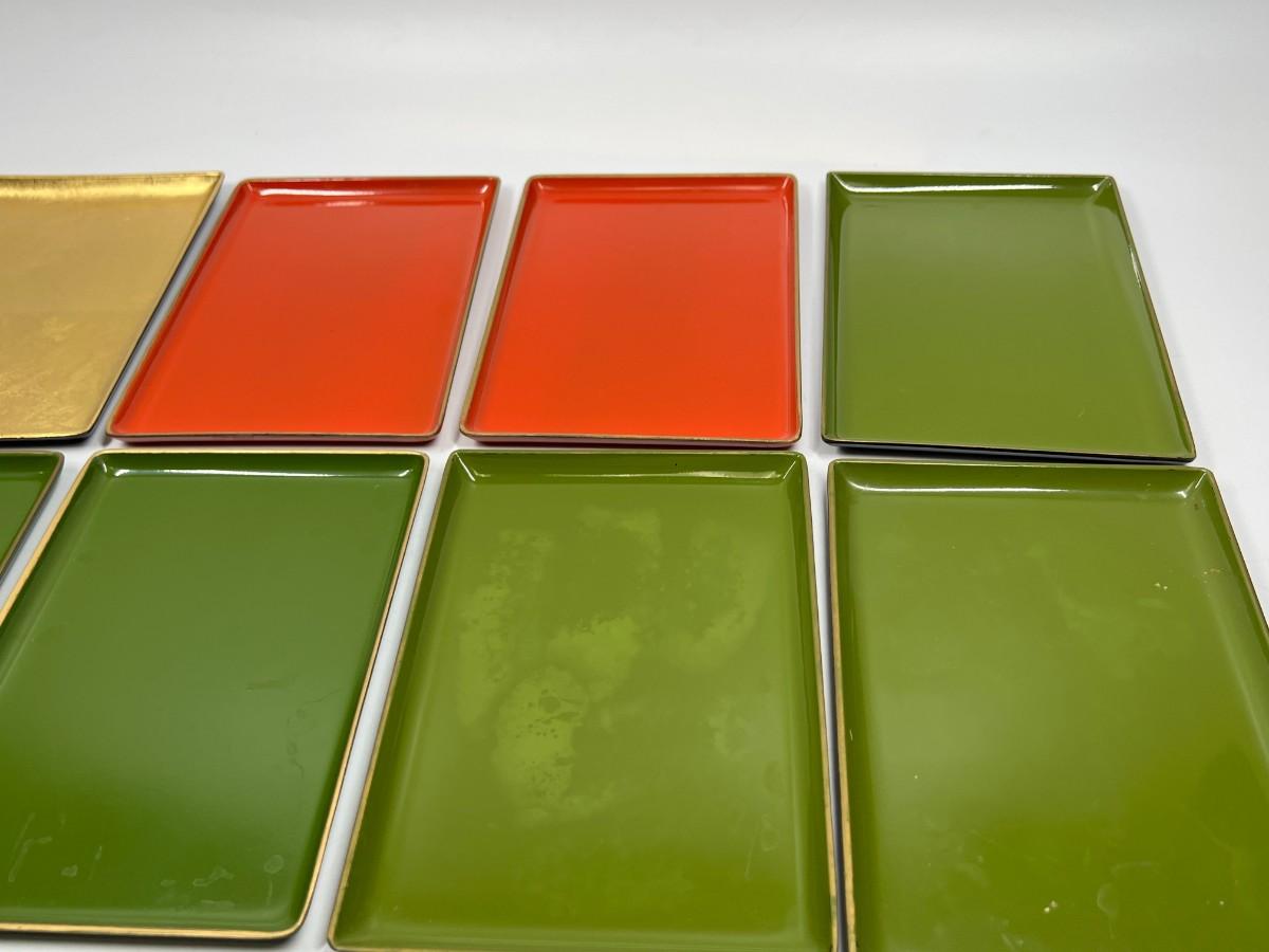 Lot of Vintage Plastic Japanese Made Rectangle Groovy Colors Serving Display Trays