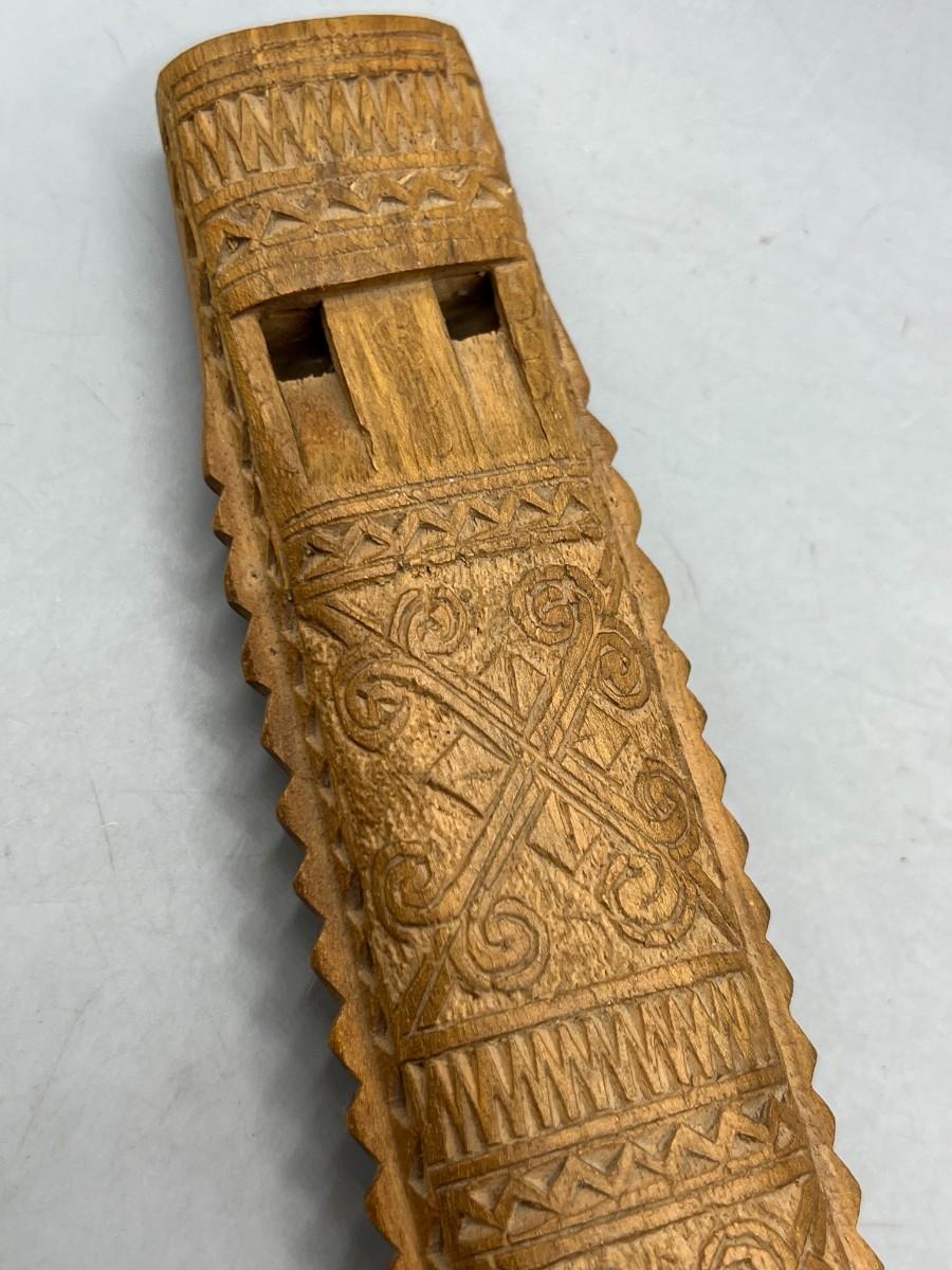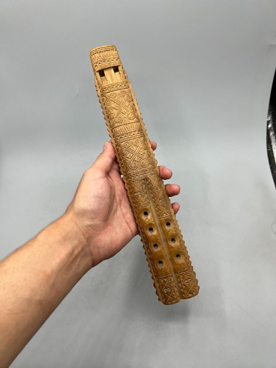 Carved Exotic Pattern Wooden Double Tribal Flute