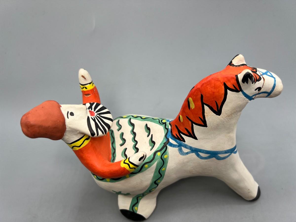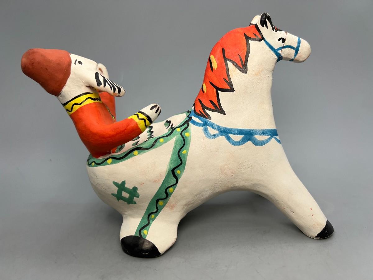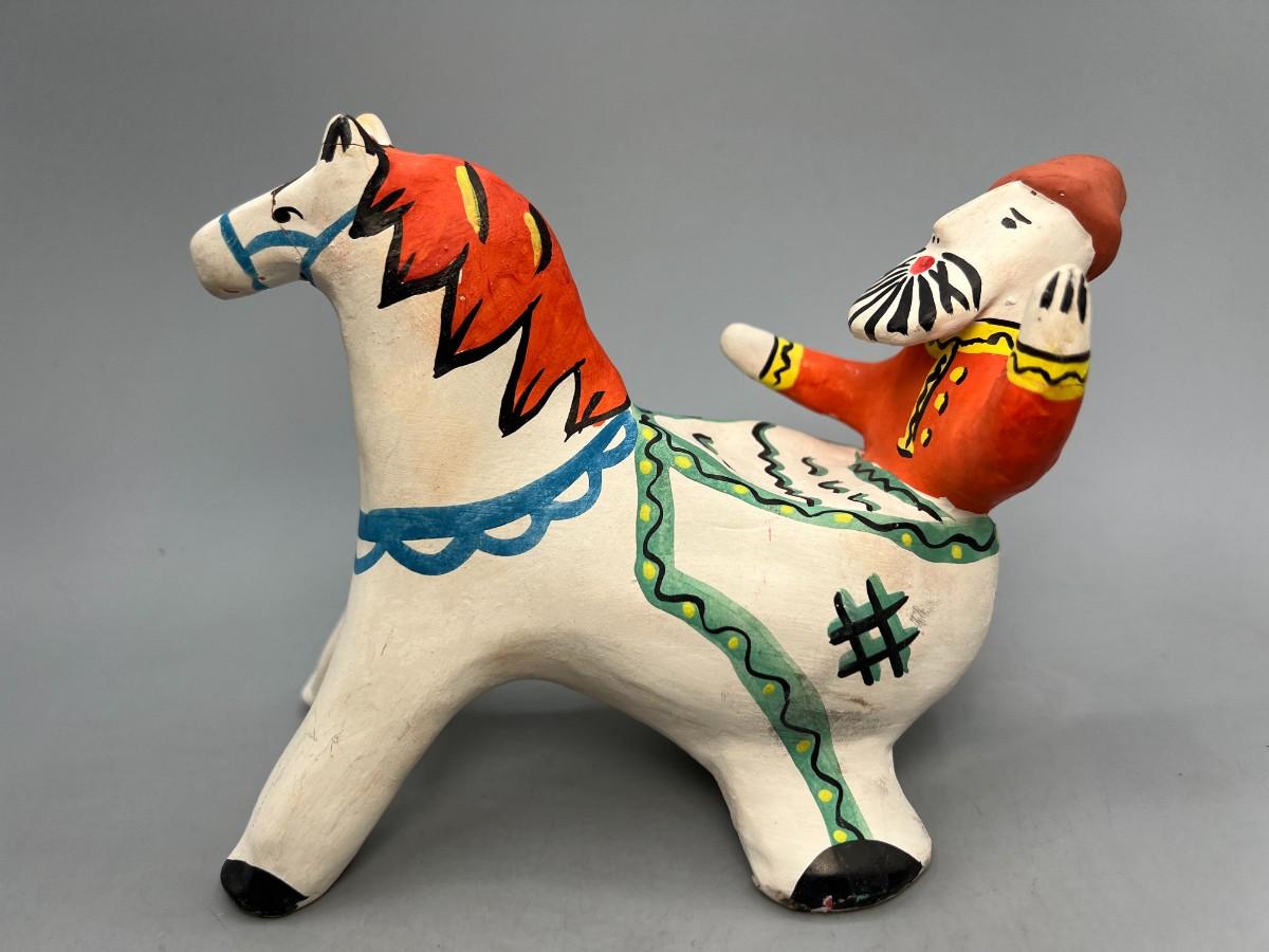 Retro Clay Pottery Russian USSR Moscow Souvenir Folk Art Man Riding Horse Figurine