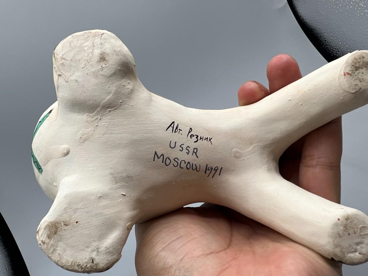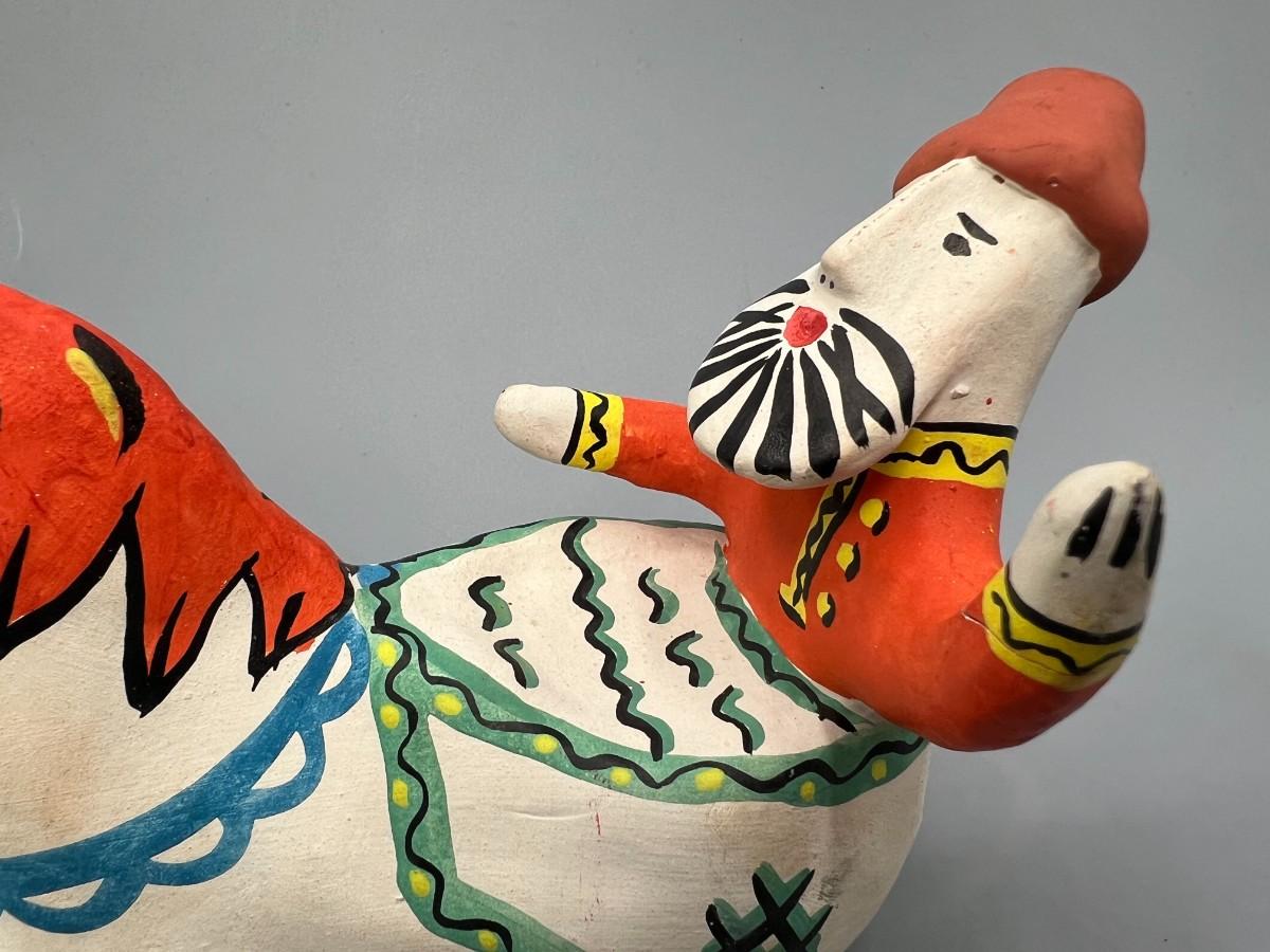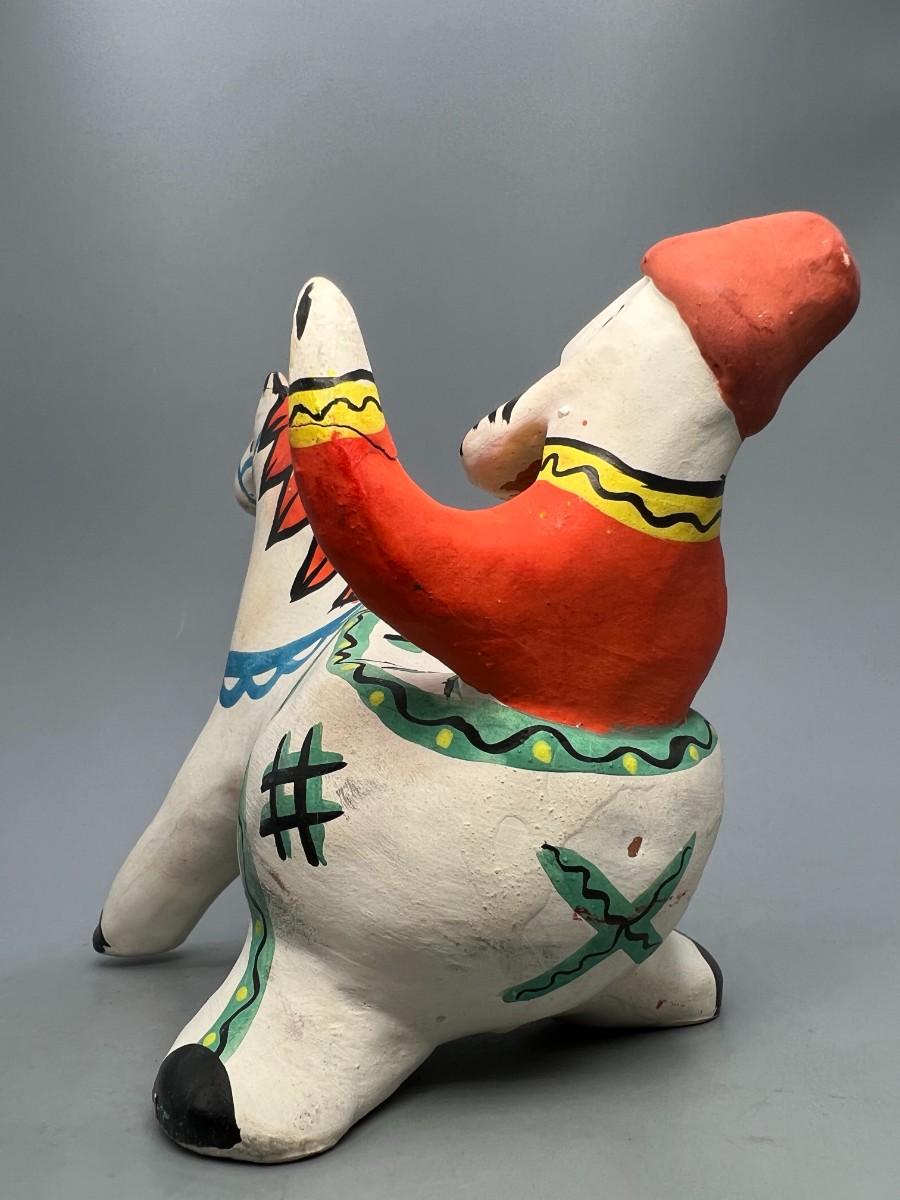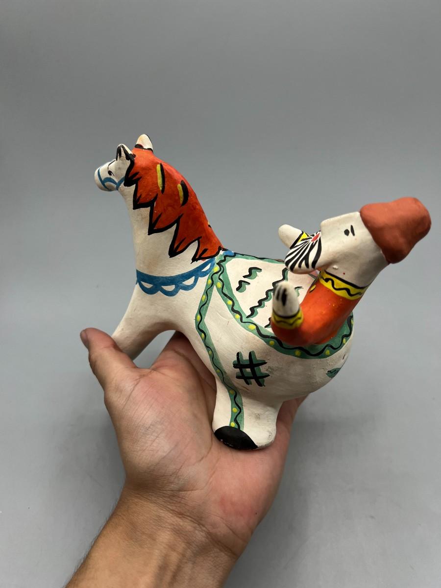 Retro Clay Pottery Russian USSR Moscow Souvenir Folk Art Man Riding Horse Figurine