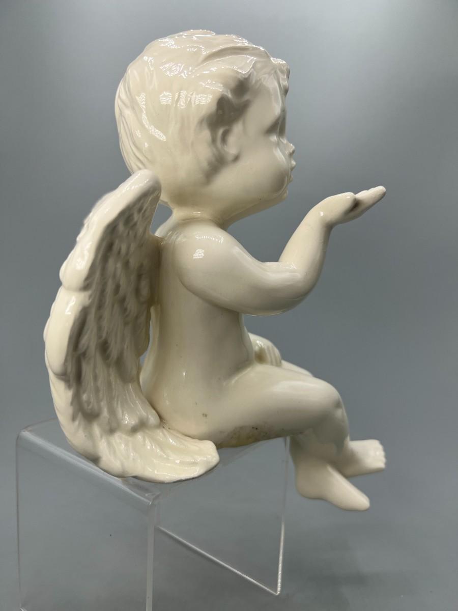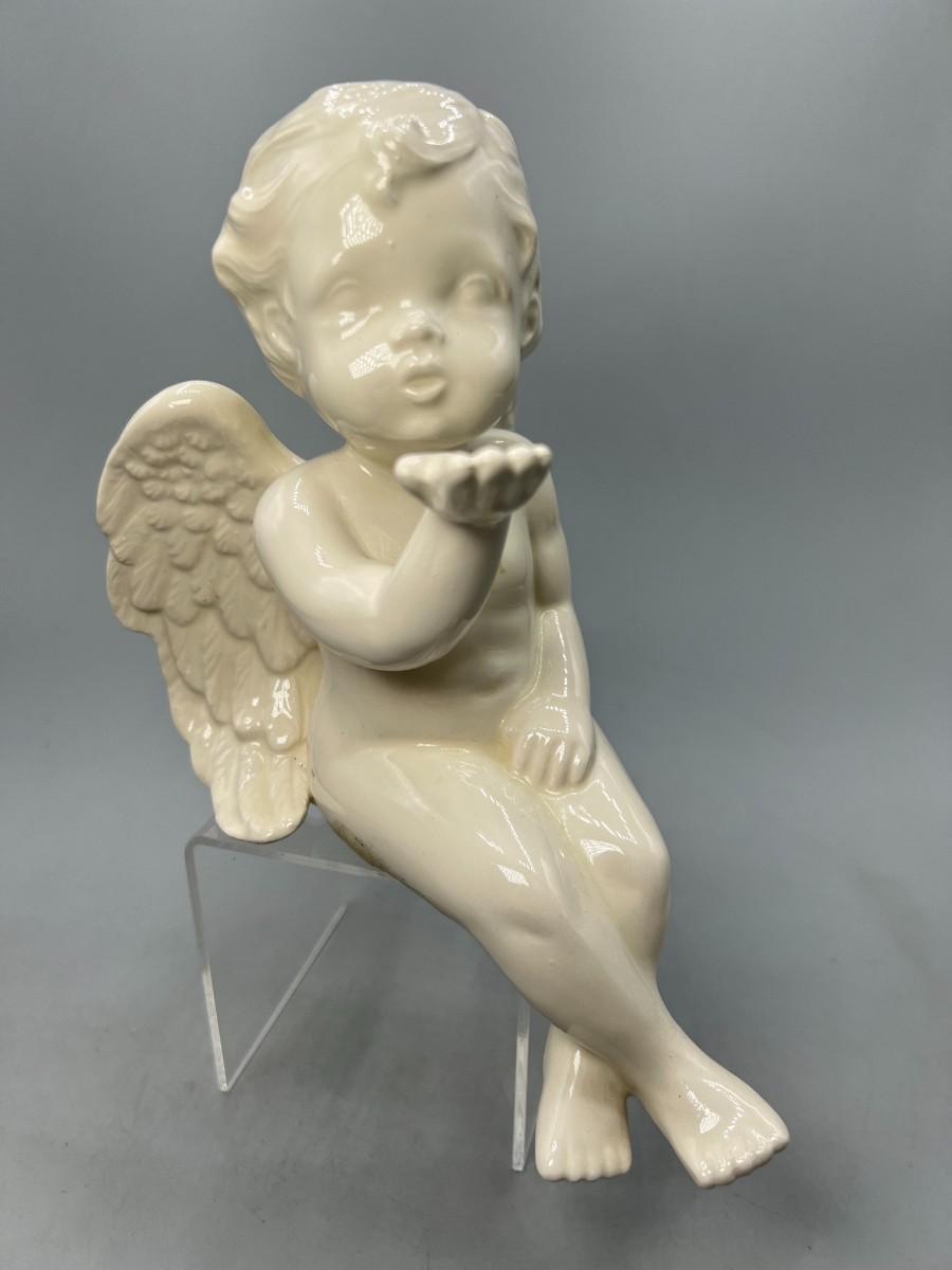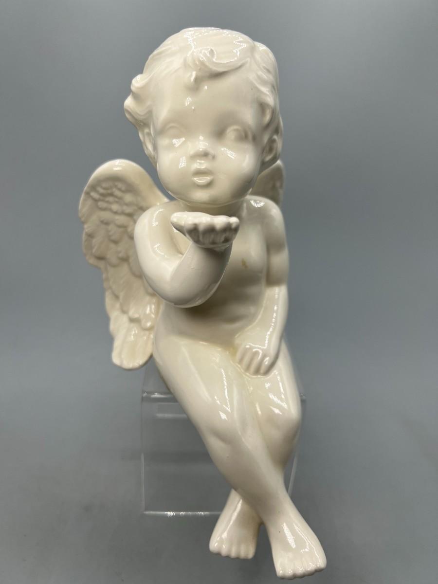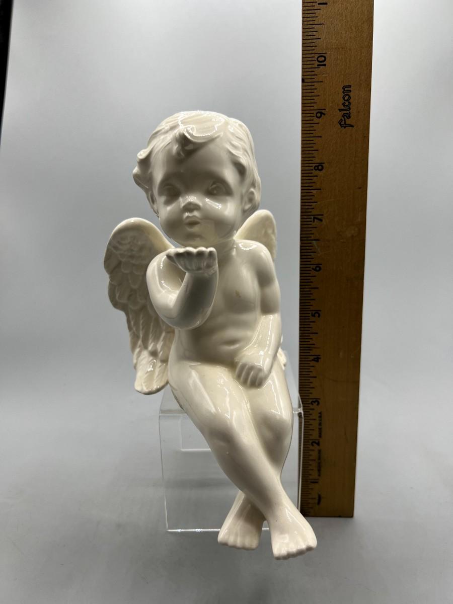 Vintage White Ceramic Cherub Angel Blowing Kiss Sitting Figurine