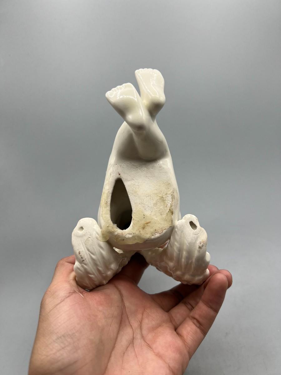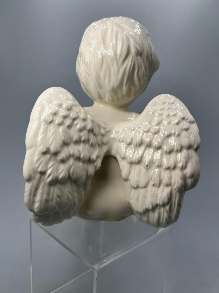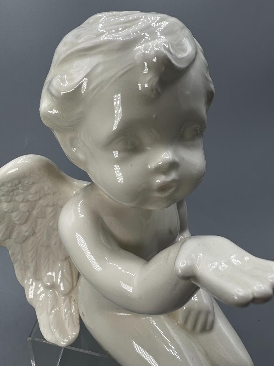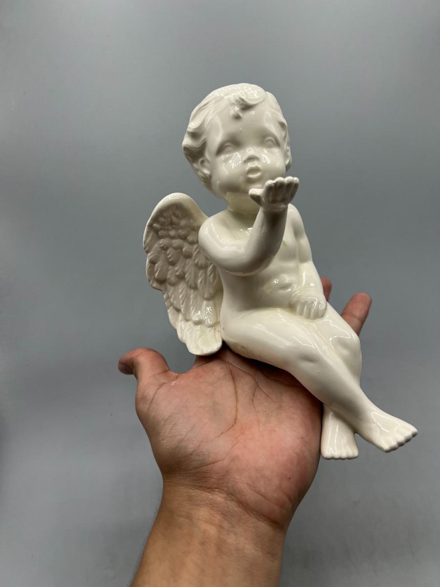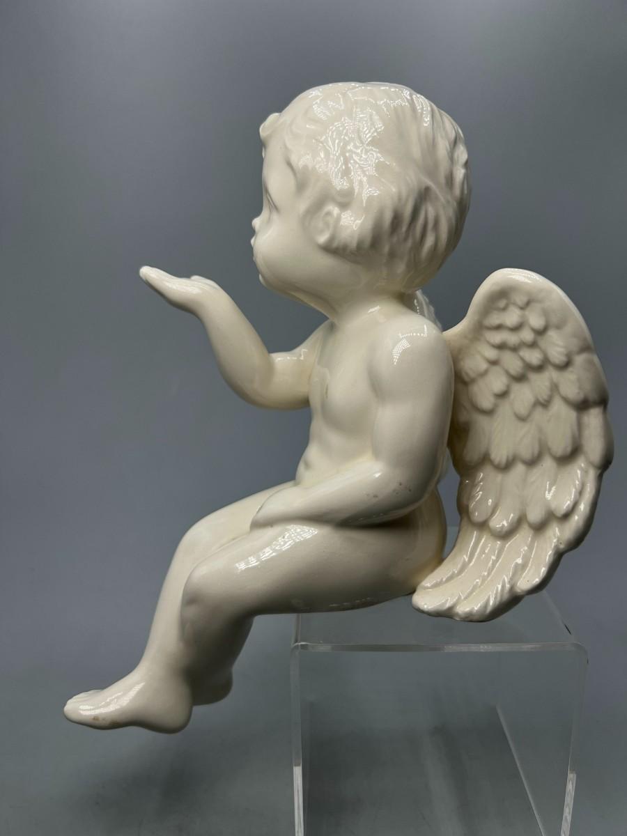 Vintage White Ceramic Cherub Angel Blowing Kiss Sitting Figurine