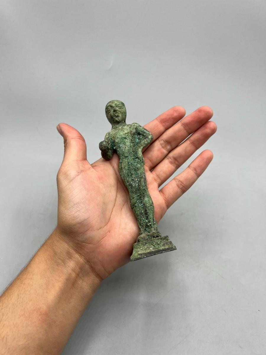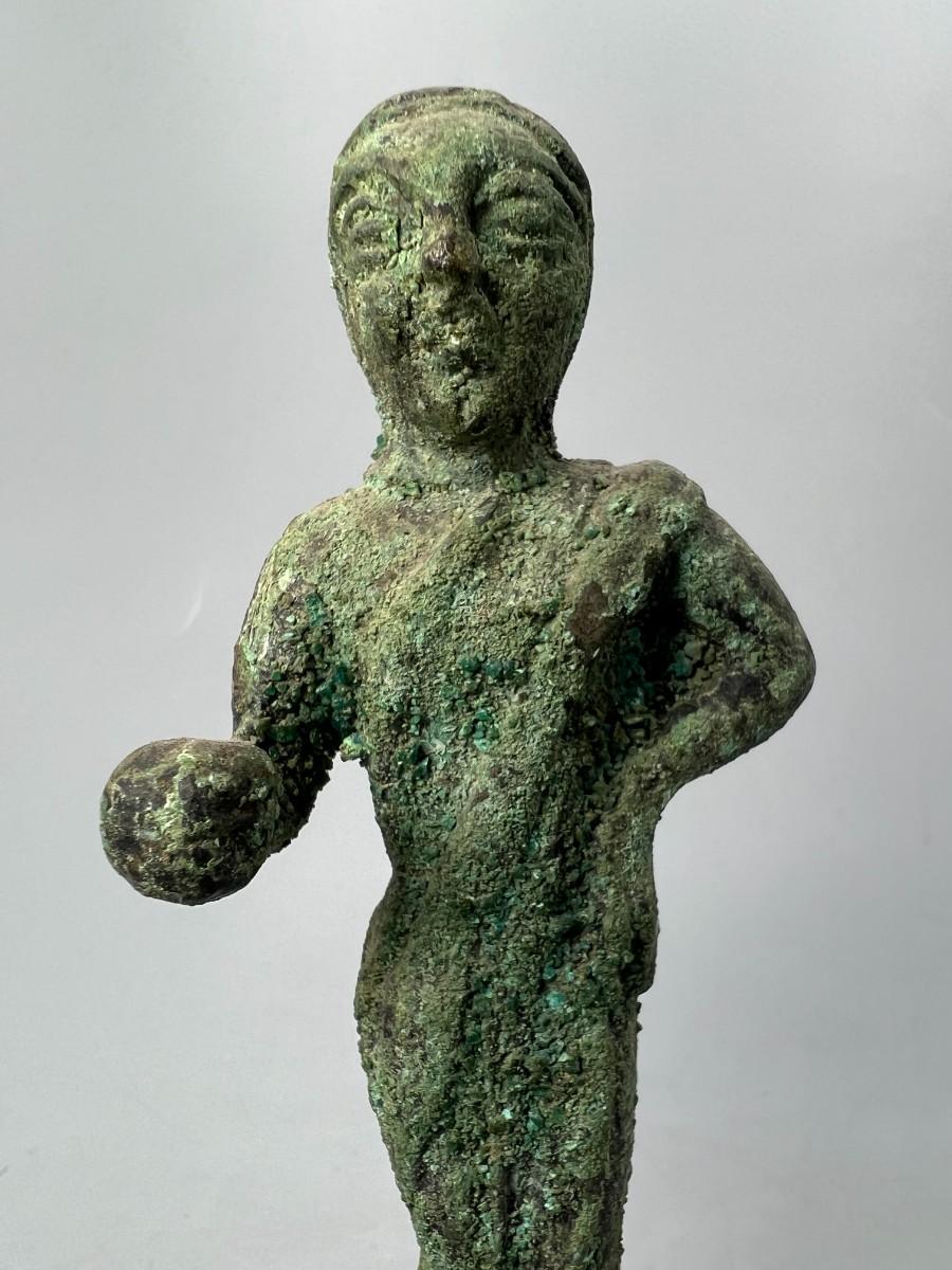 There is noticeable wear and oxidation to the brass sculpture, but it is still in good appealing condition! Interesting wear!