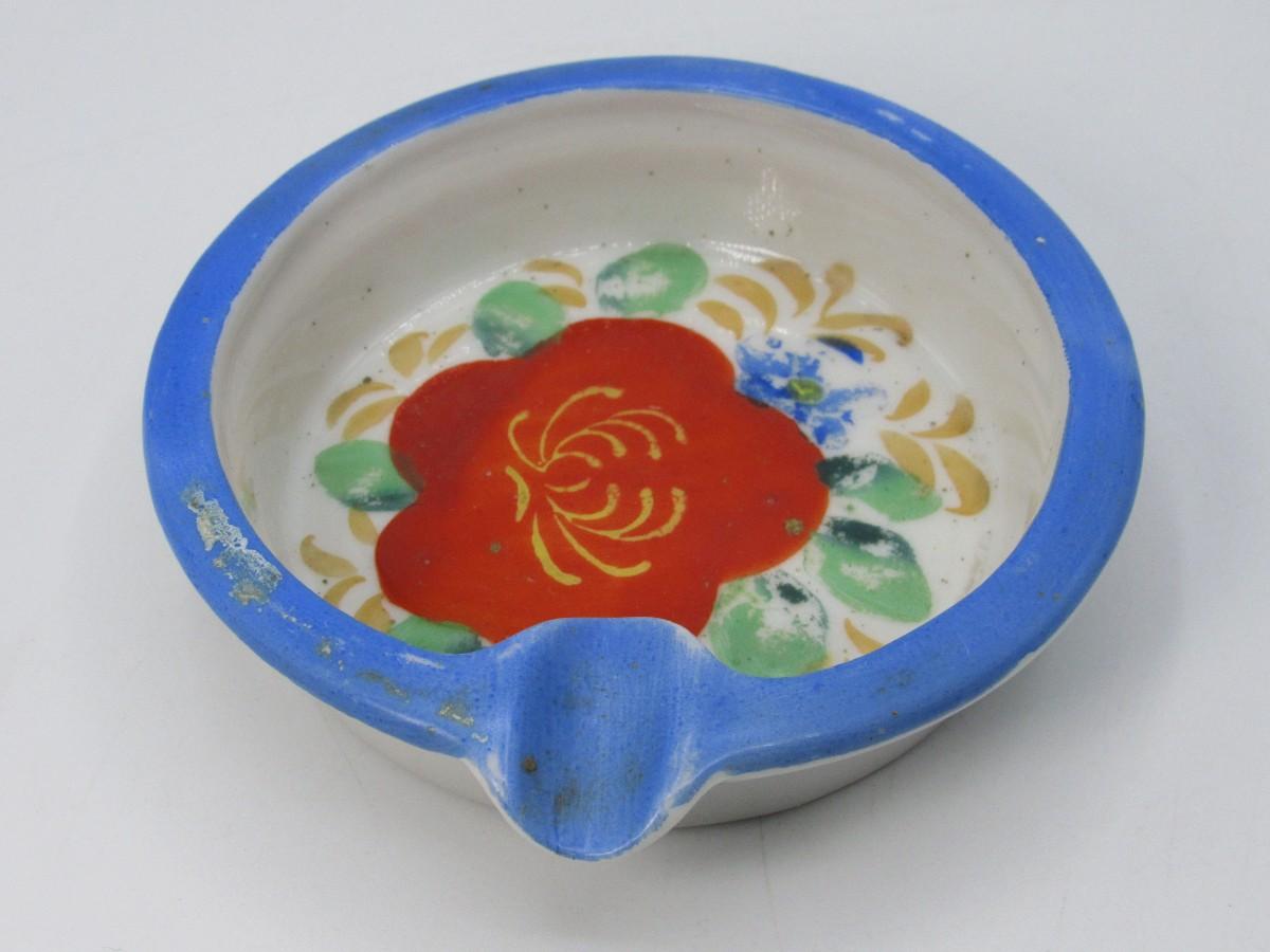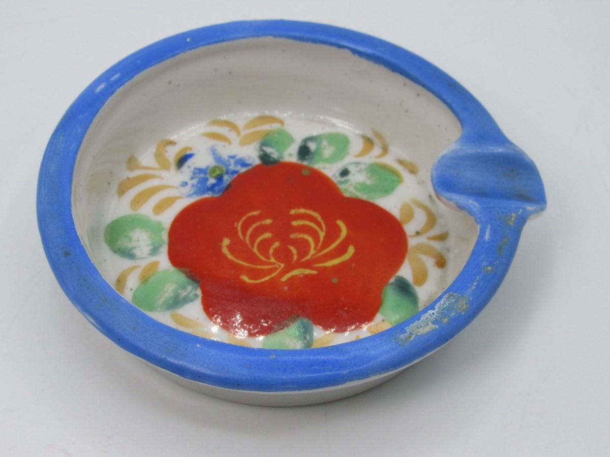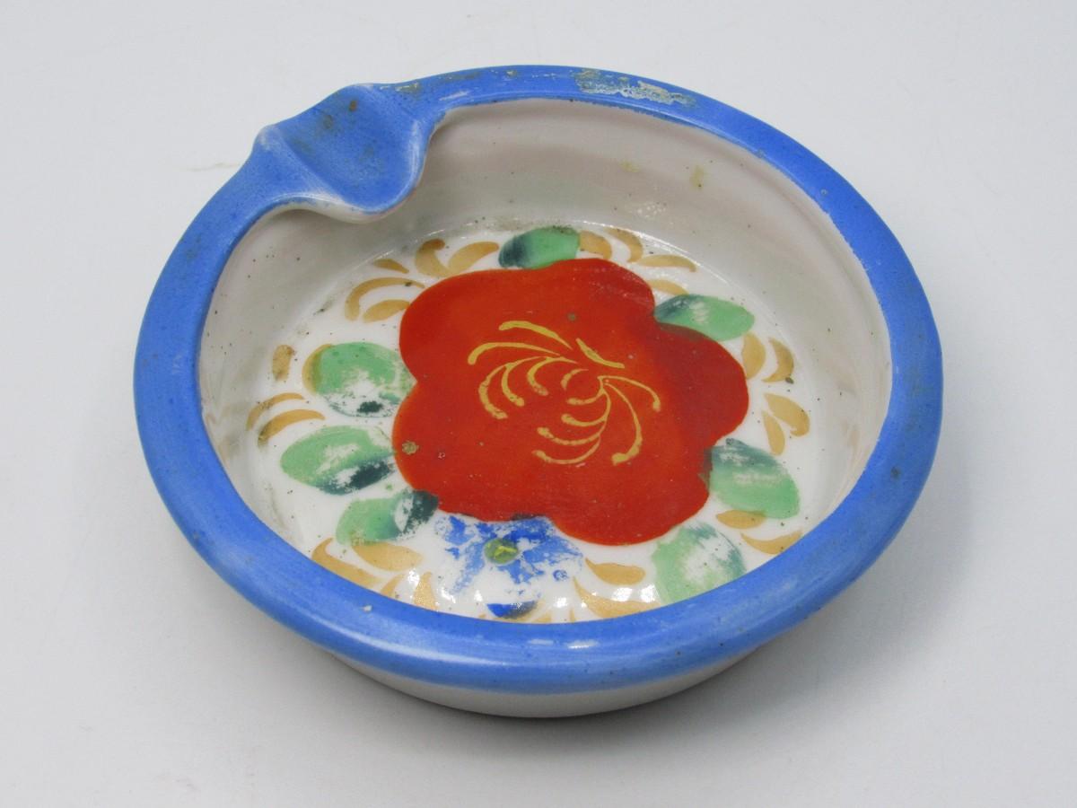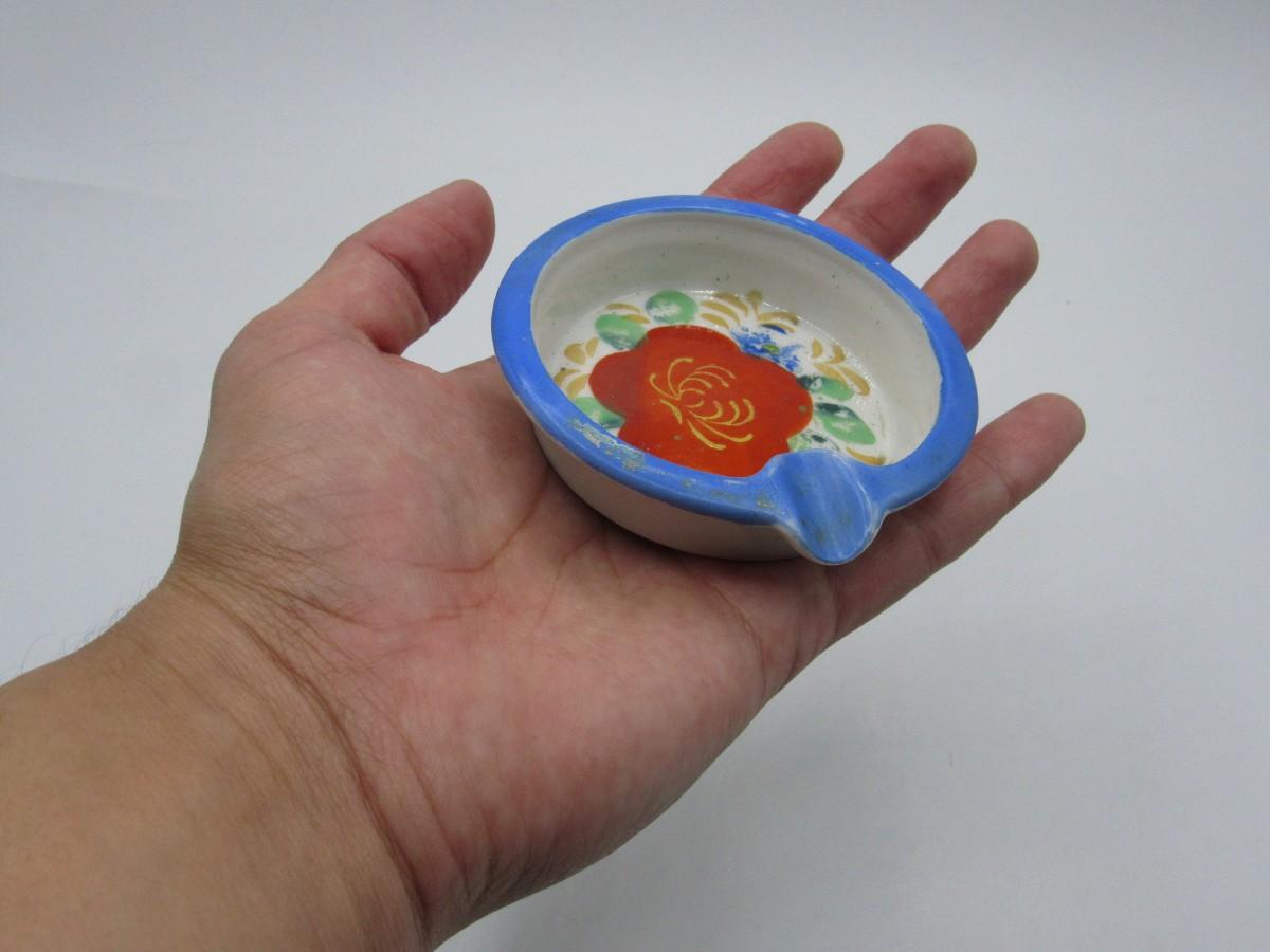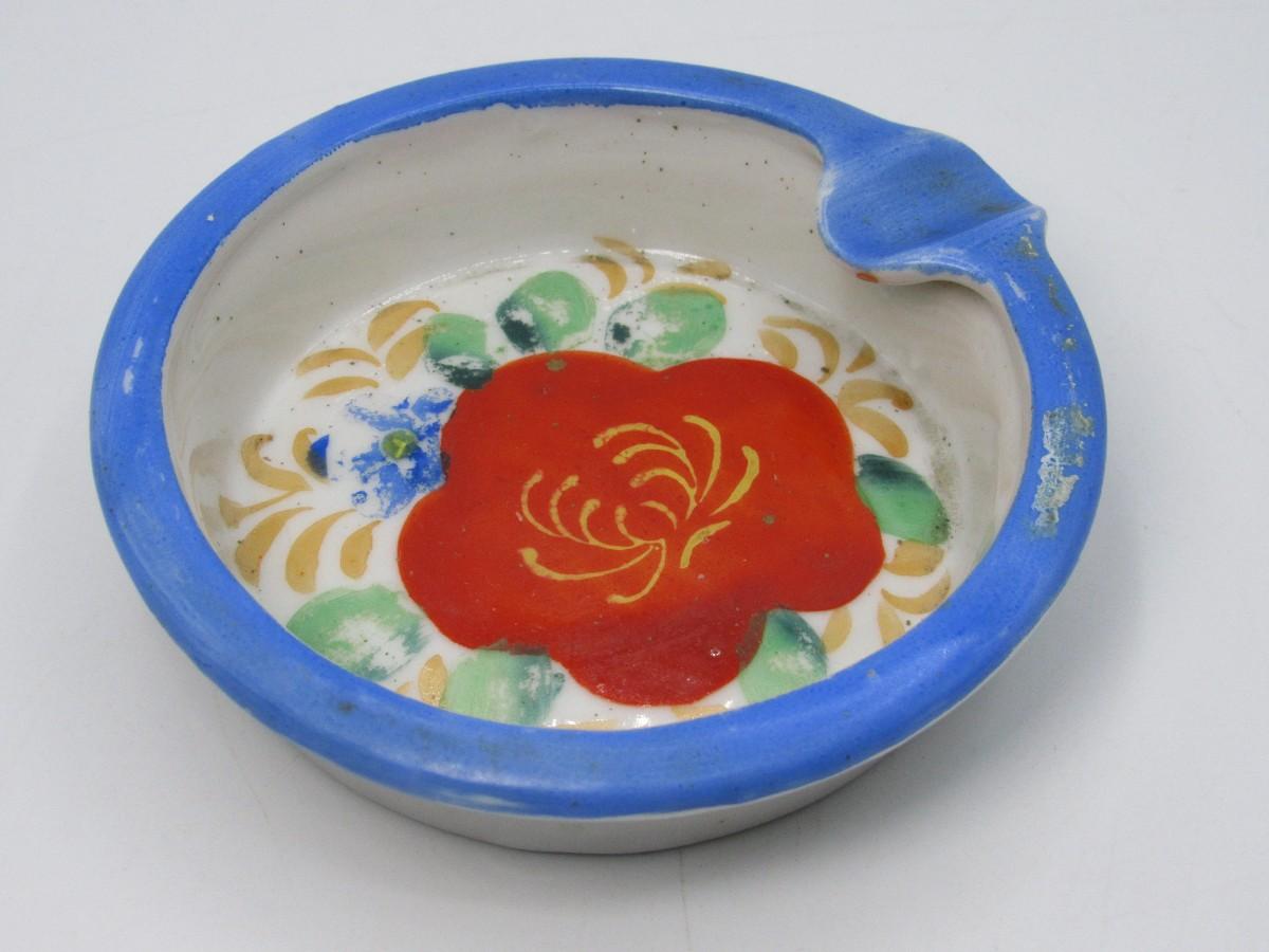 Vintage TA Hand Painted Ceramic Folk Art Style Flower Made in Japan Individual Cigarette Ashtray