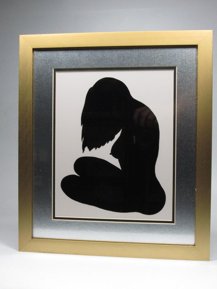 Retro Black Silhouetted Woman Framed Nude Art Body Pose