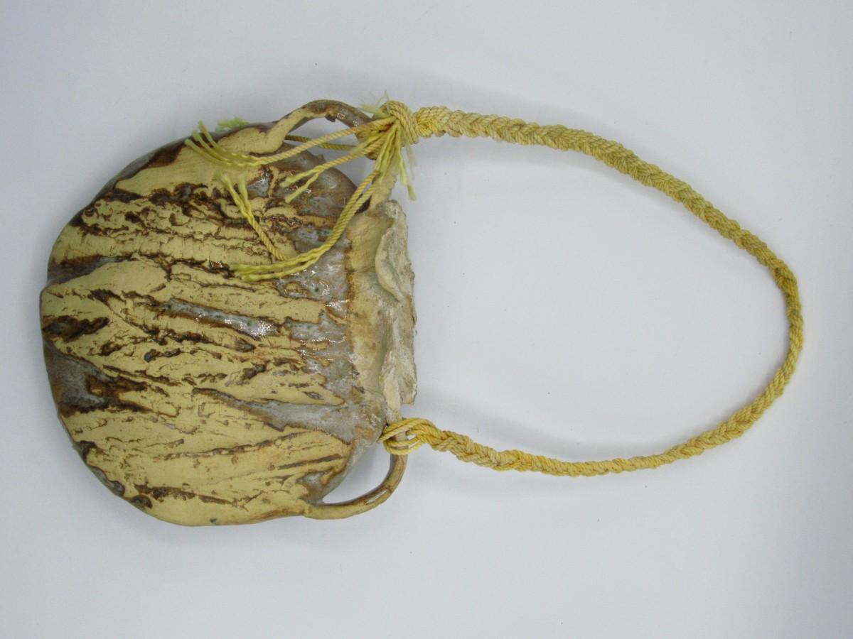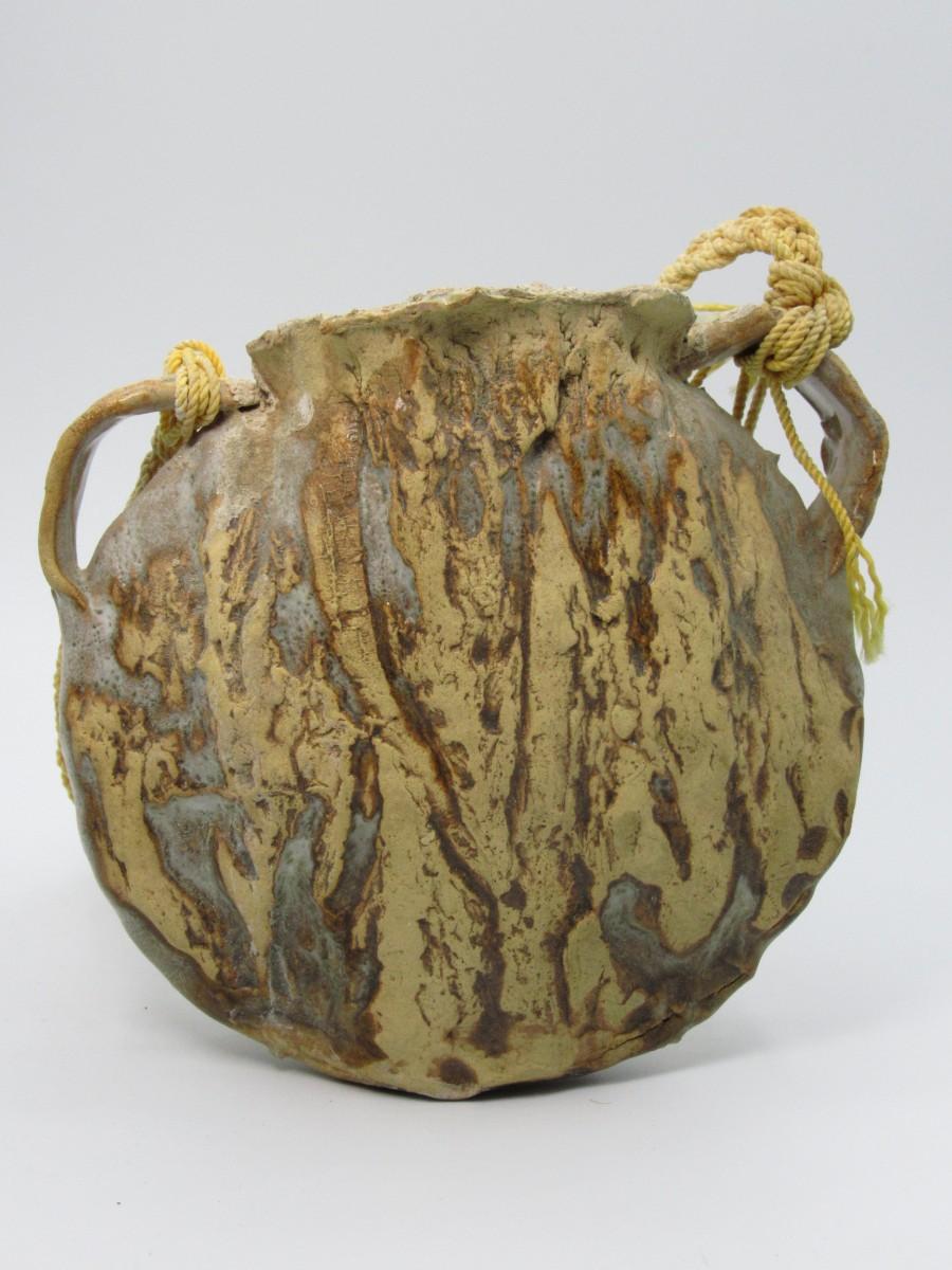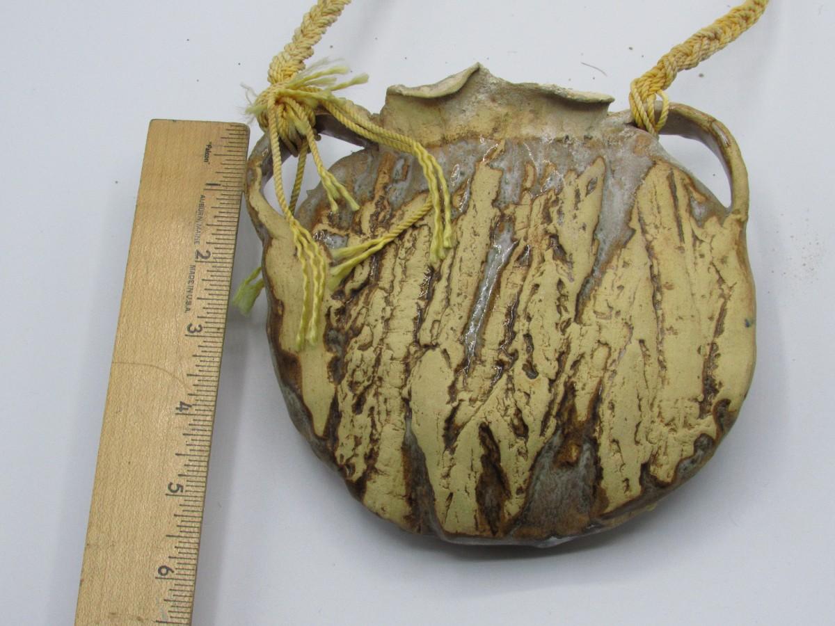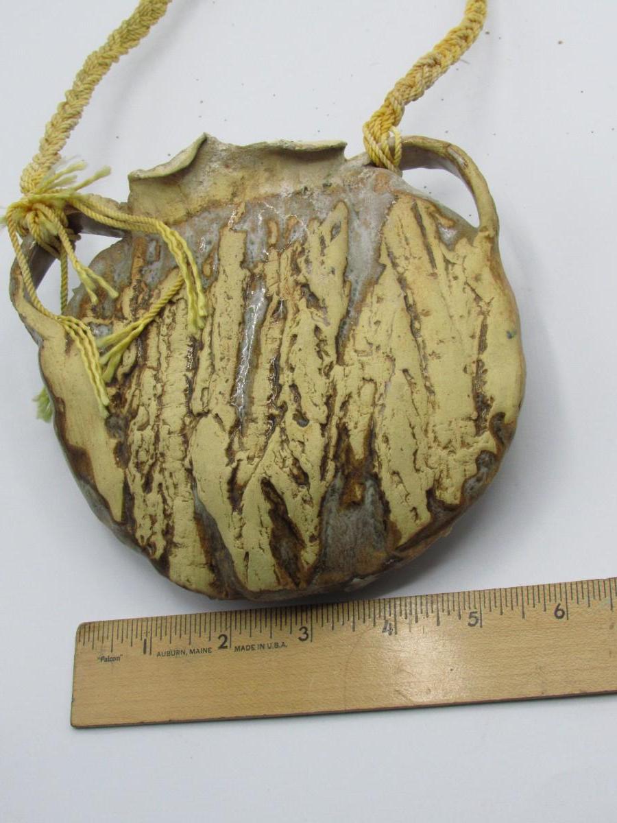 Vintage Handmade Textured Rustic Clay Pottery Art Vessel Canteen with Rope Strap