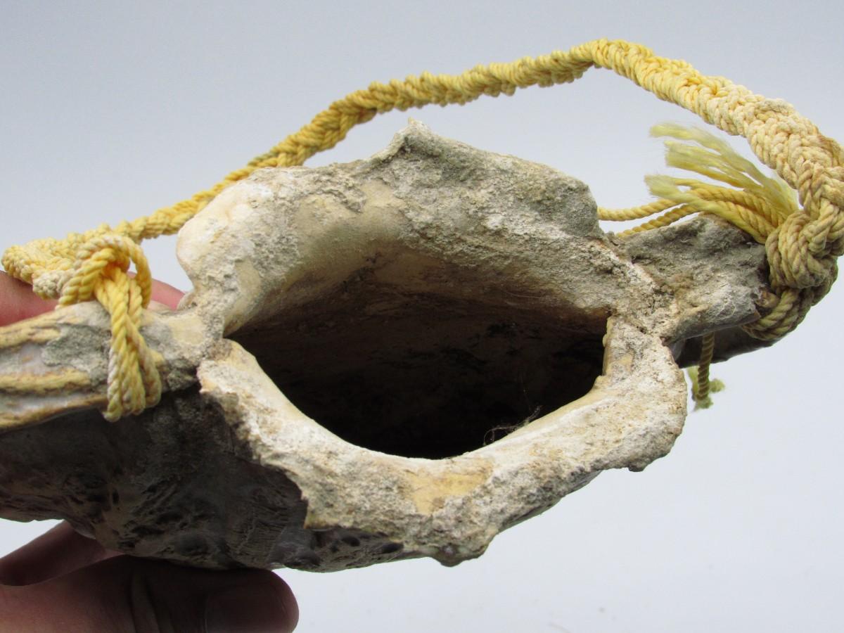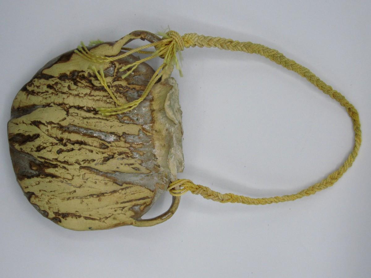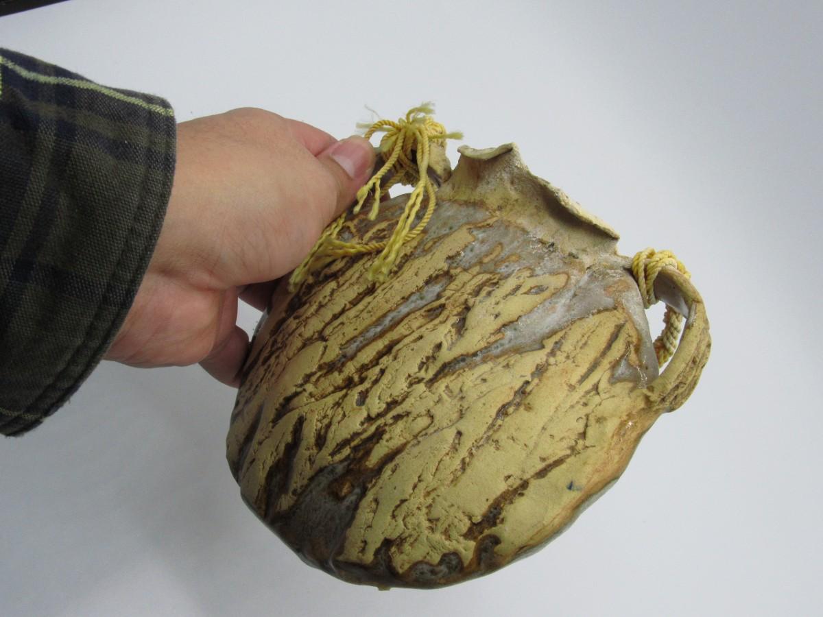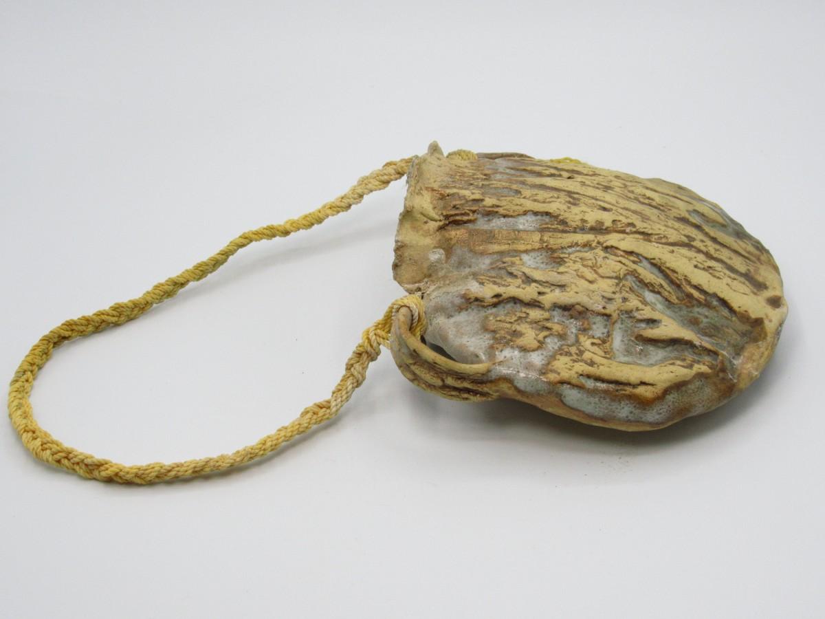 Vintage Handmade Textured Rustic Clay Pottery Art Vessel Canteen with Rope Strap
