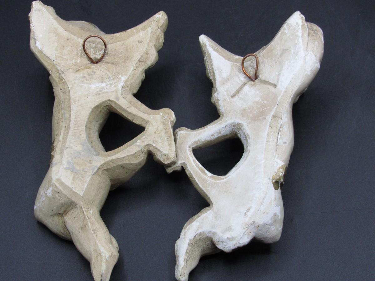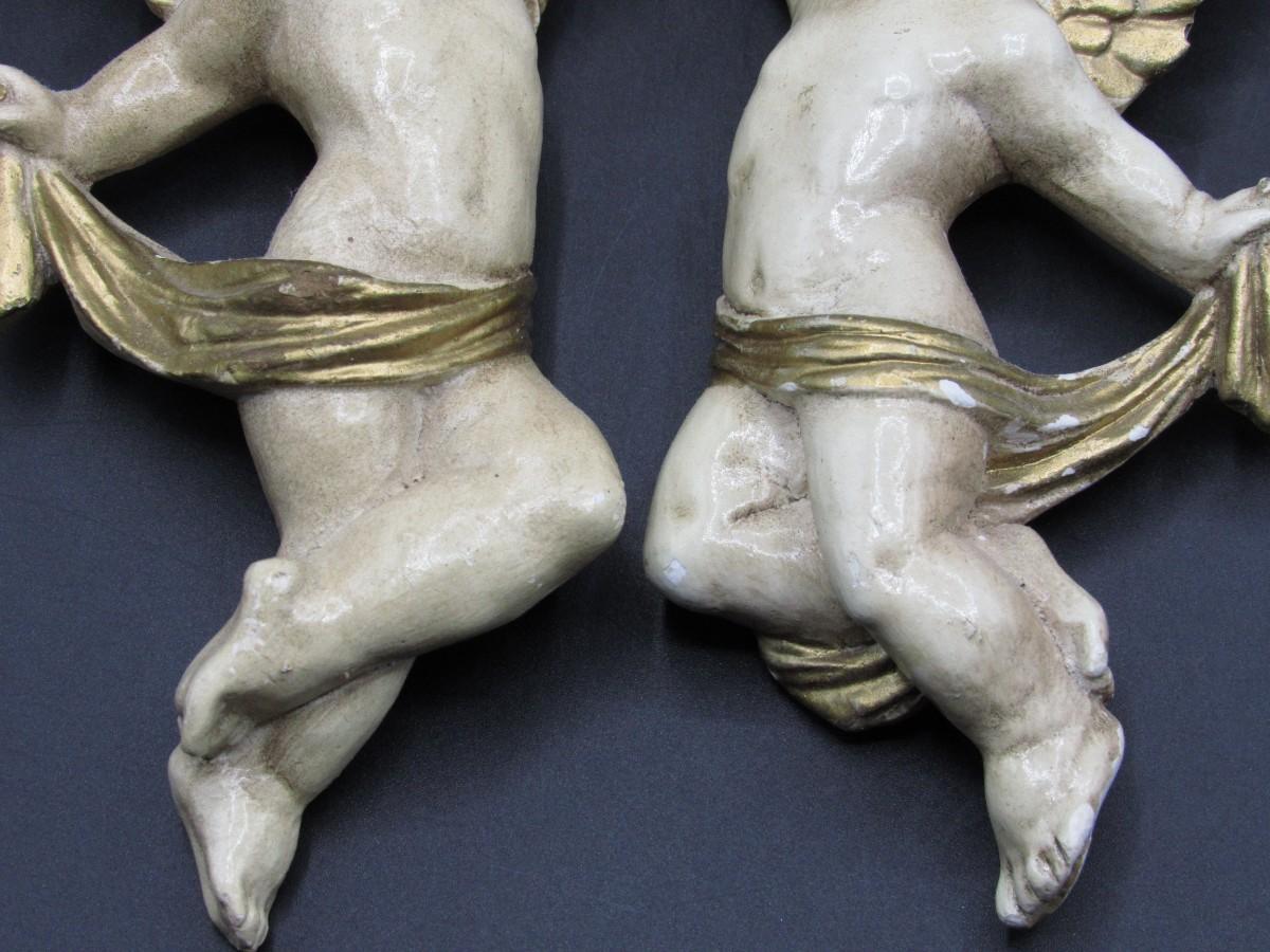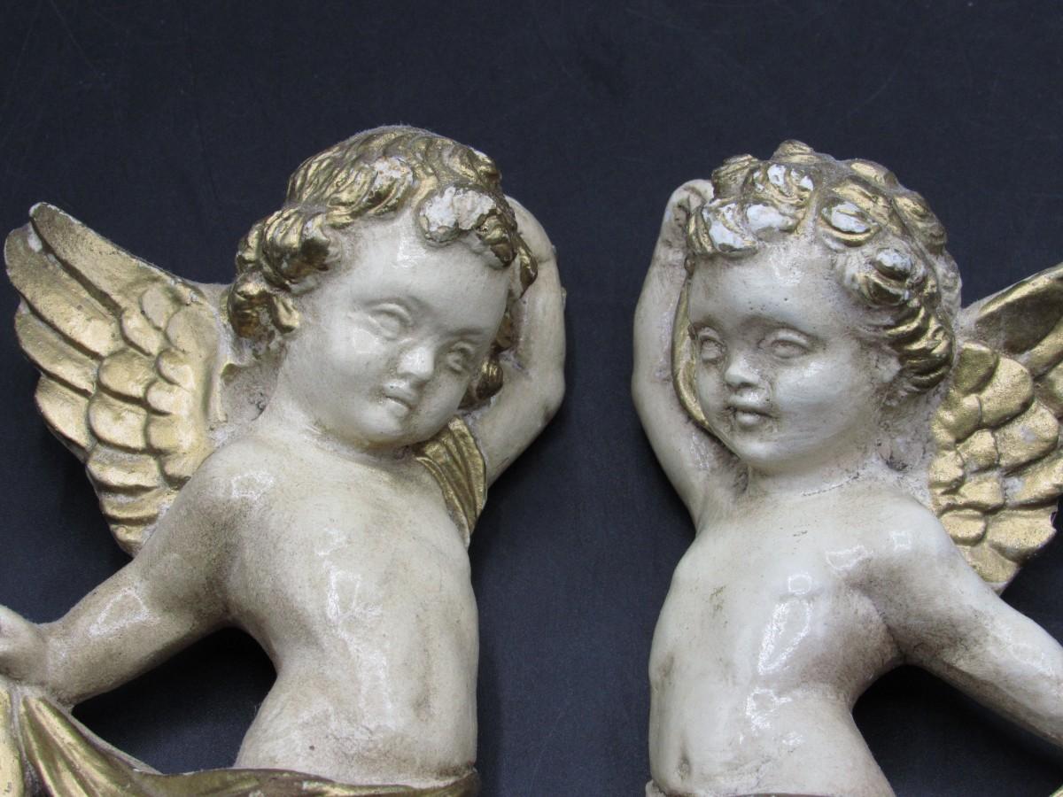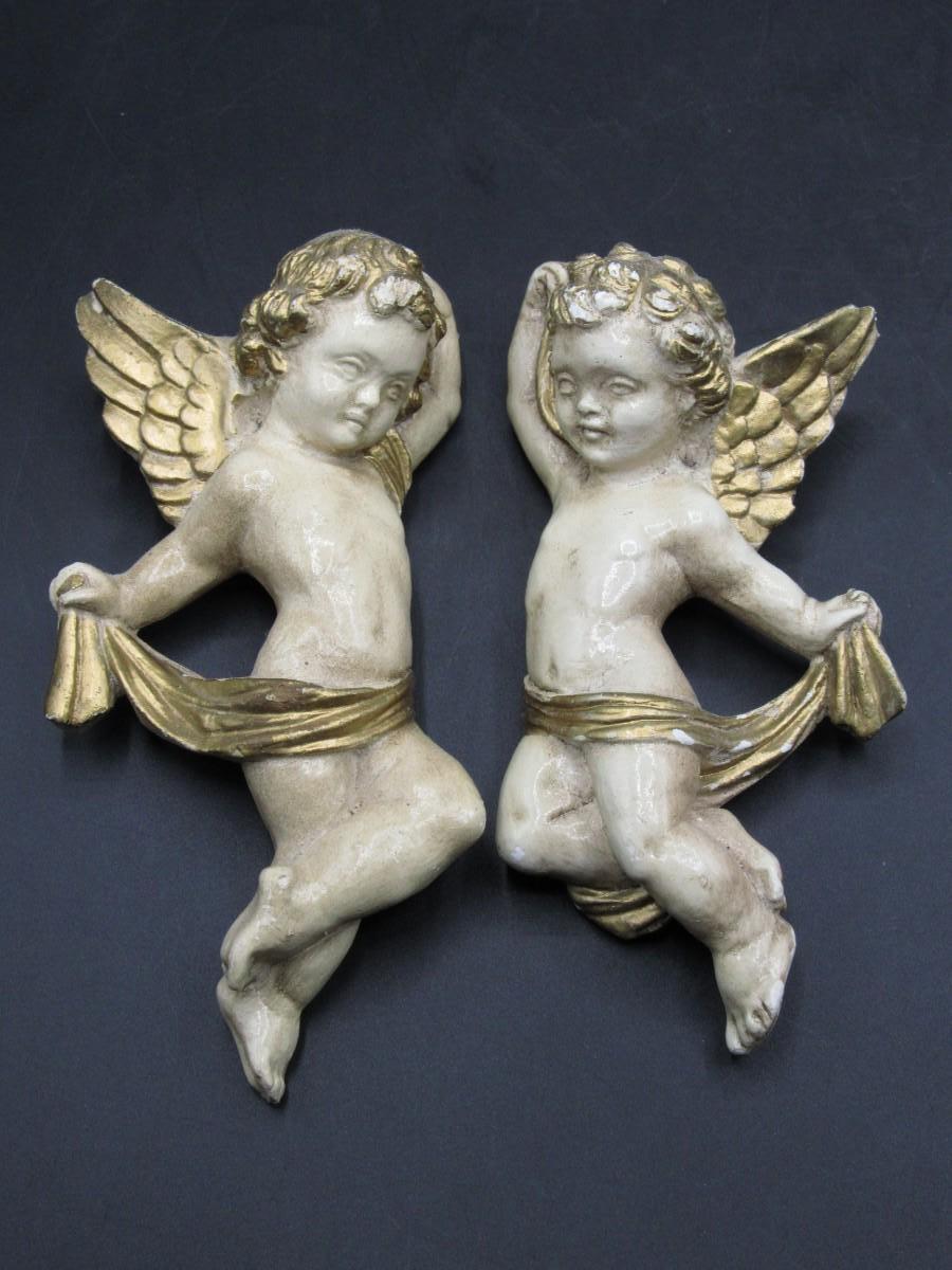 There are signs of light chipping to the surfaces of both angels, but there is no significant damage and in overall good collectible or displayable condition. Check pictures for more details and for sizing!