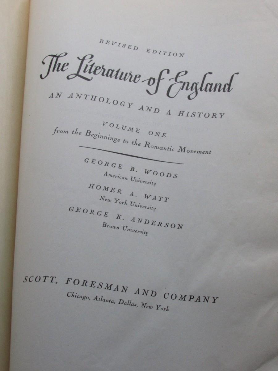 The Literature of England An Anthology and History Volume One Vintage Reference Book